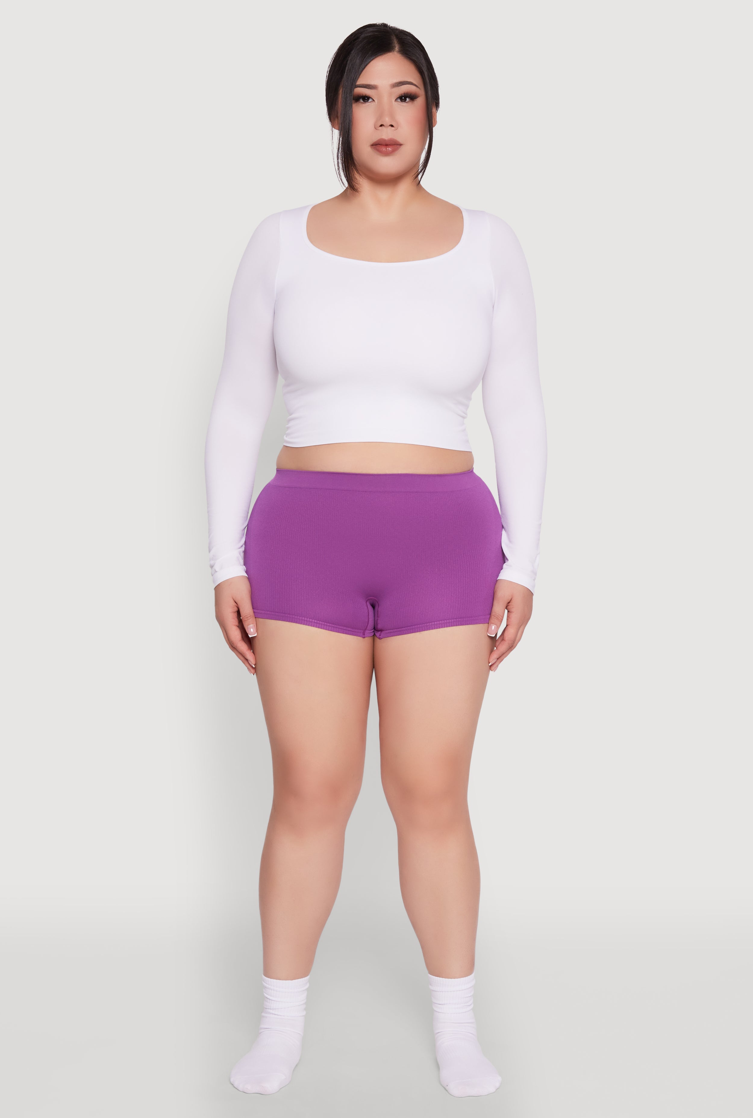 Plus Size High Waisted Seamless Ribbed Knit Boyshort Panty