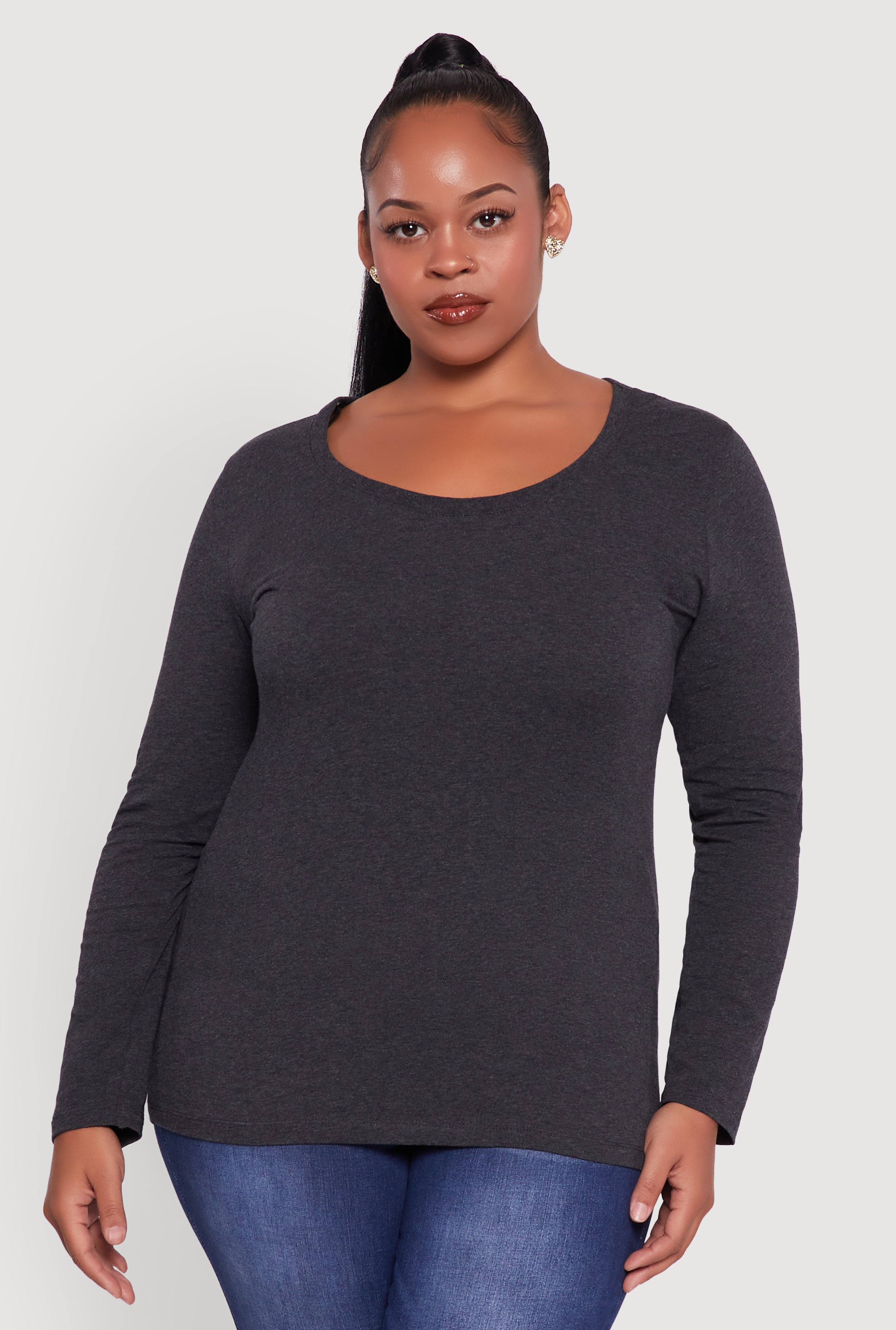 Plus Size Rhinestone Detail Long Sleeve Bodysuit
