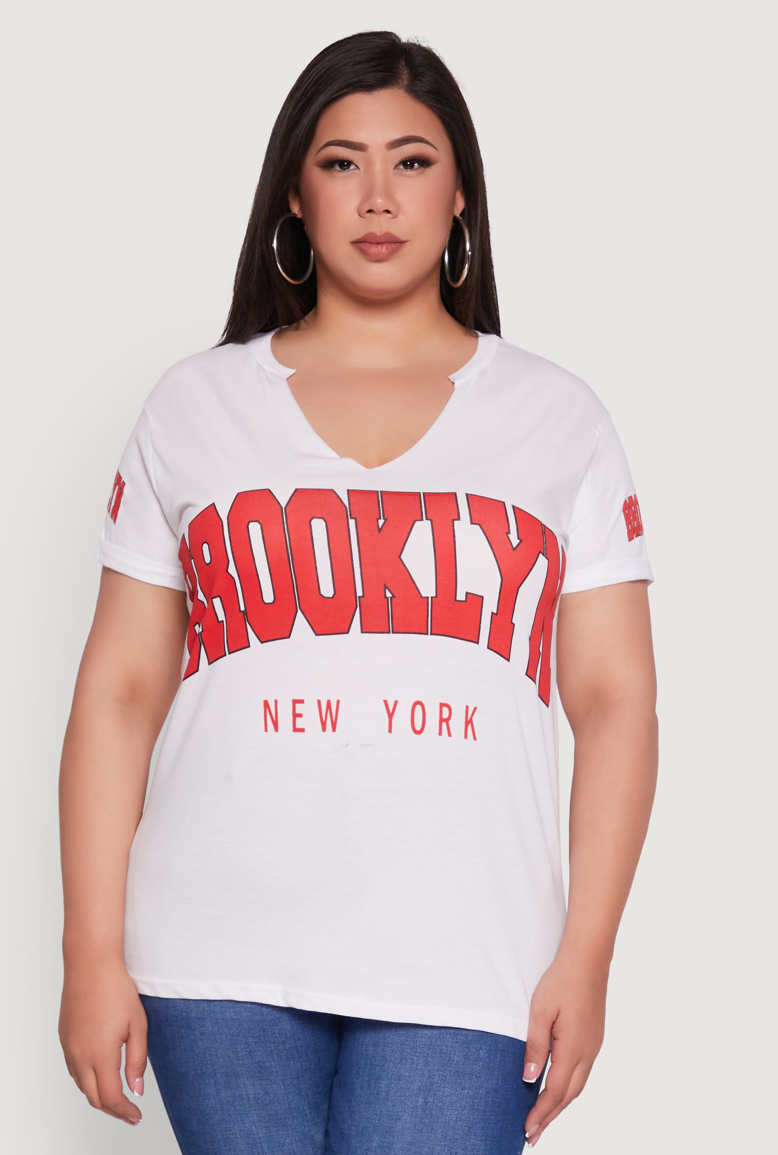 Plus Size Tie Dye Brooklyn Graphic Fringe Hem Tee