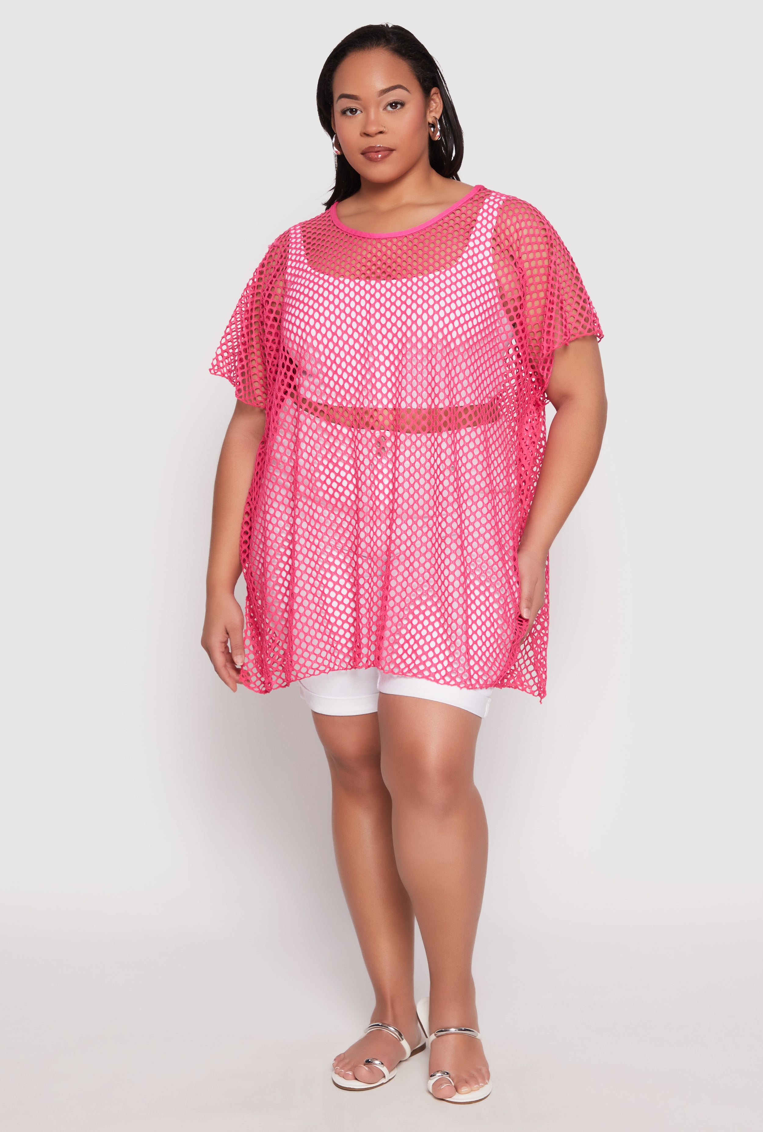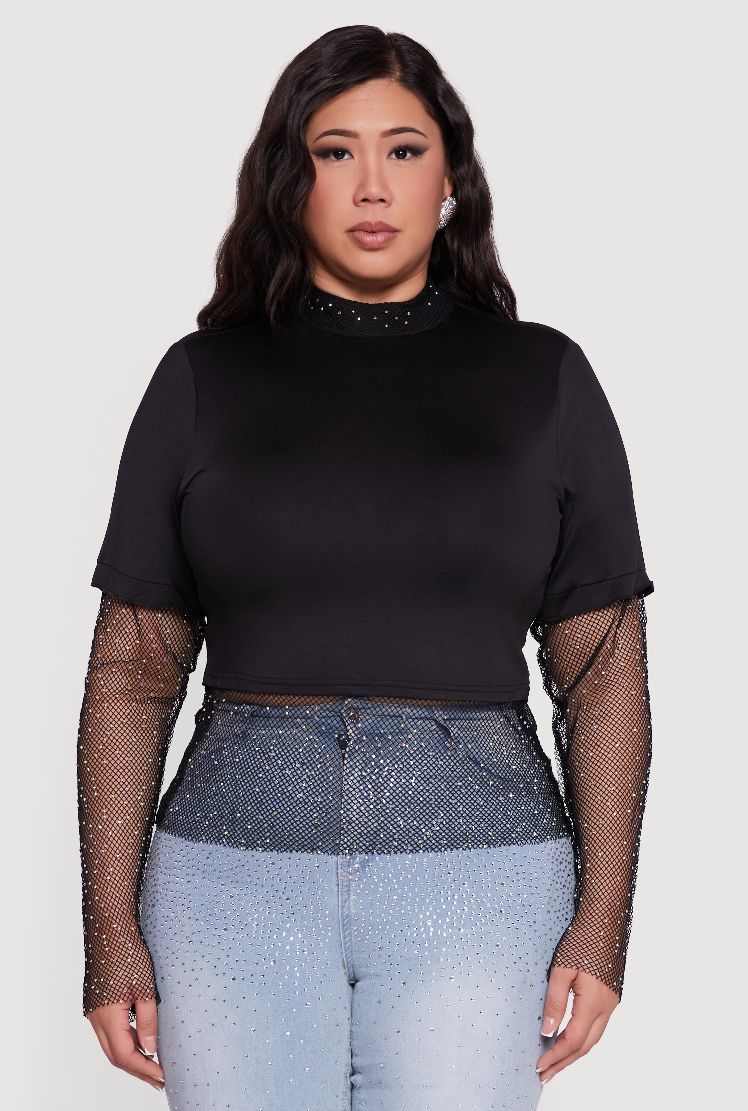 Plus Size Rhinestone Fishnet Keyhole Back Layered Look Top
