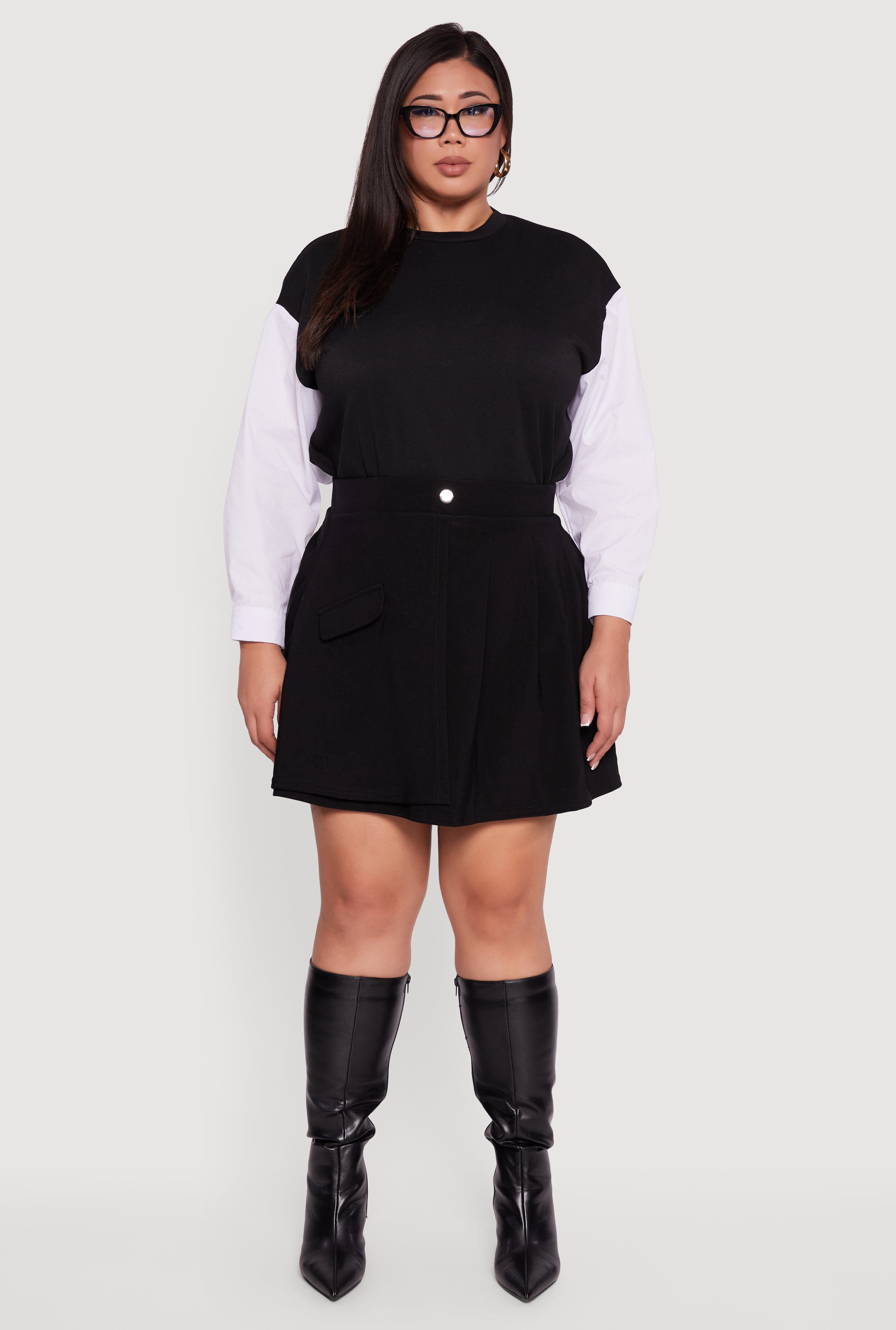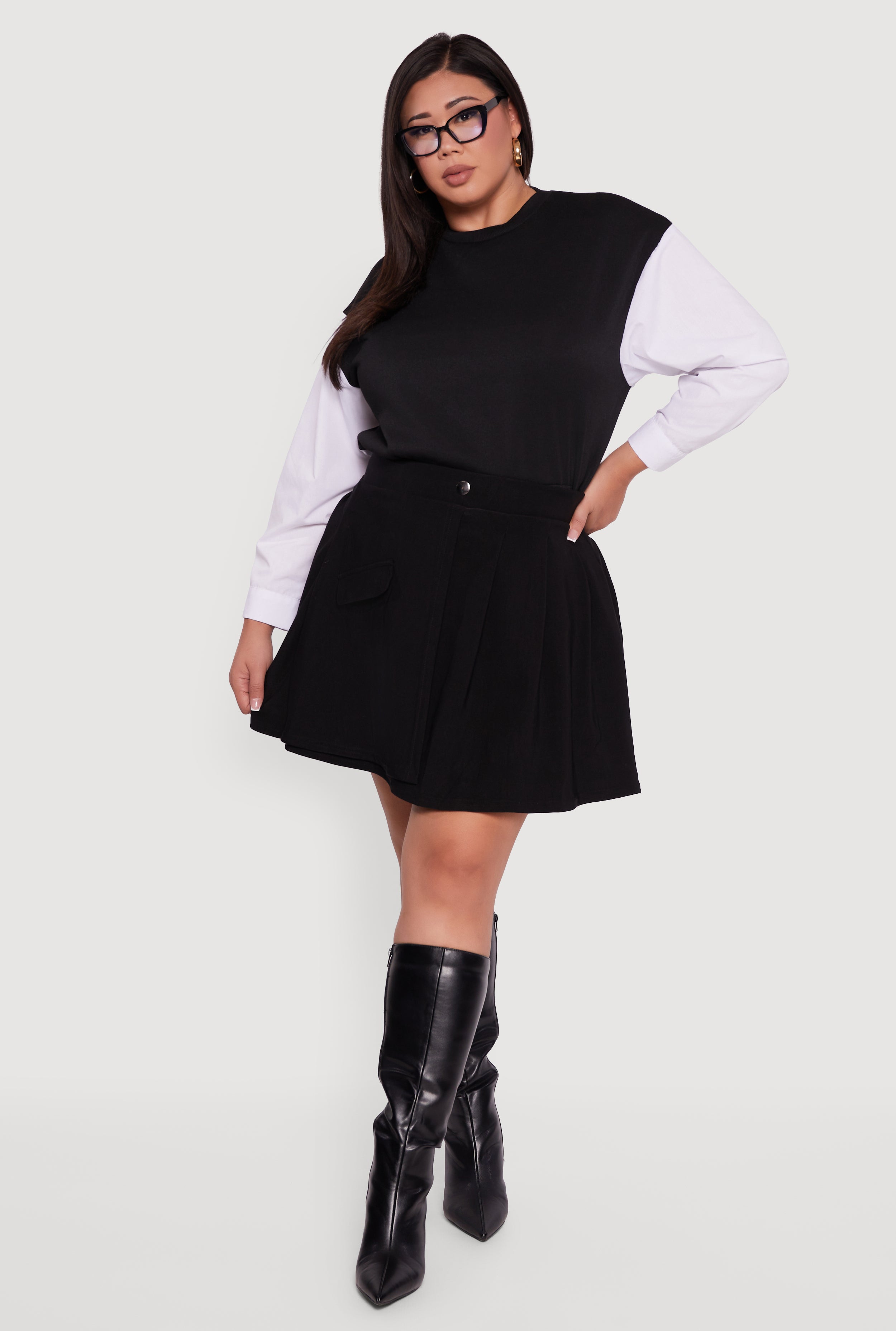 Plus Size Pleated Mini Skirt with Faux Pocket