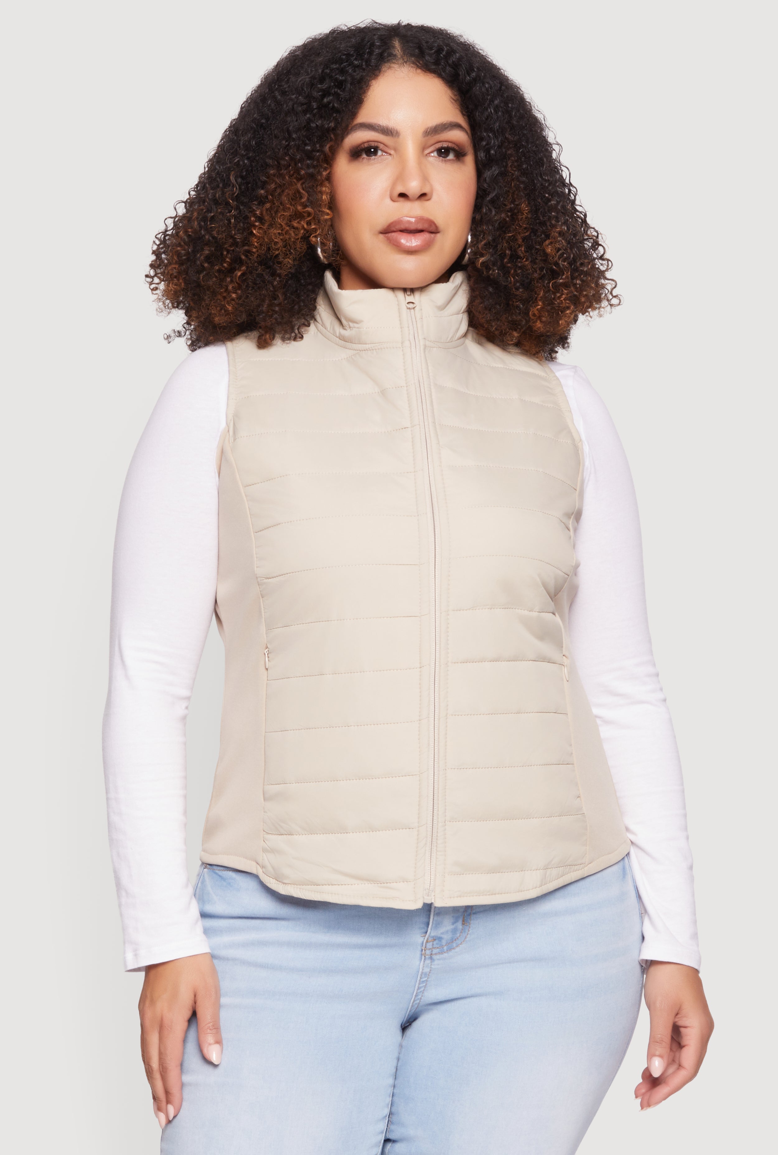Plus Size Fleece Lined Side Detail Nylon Puffer Vest