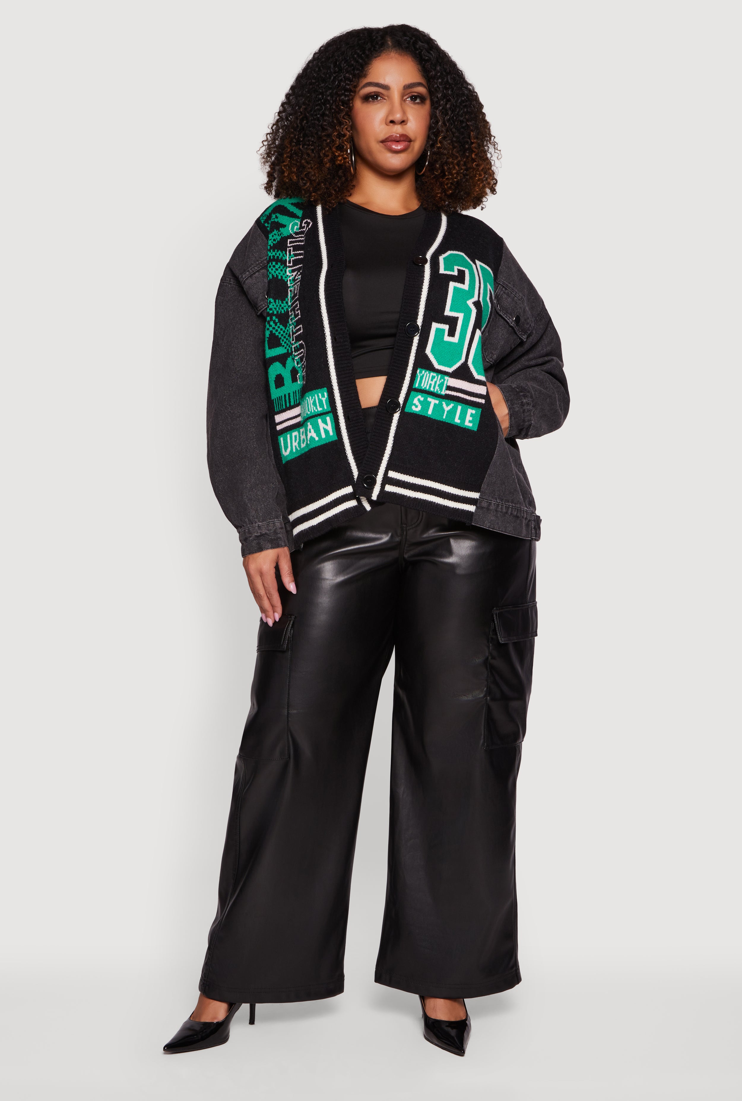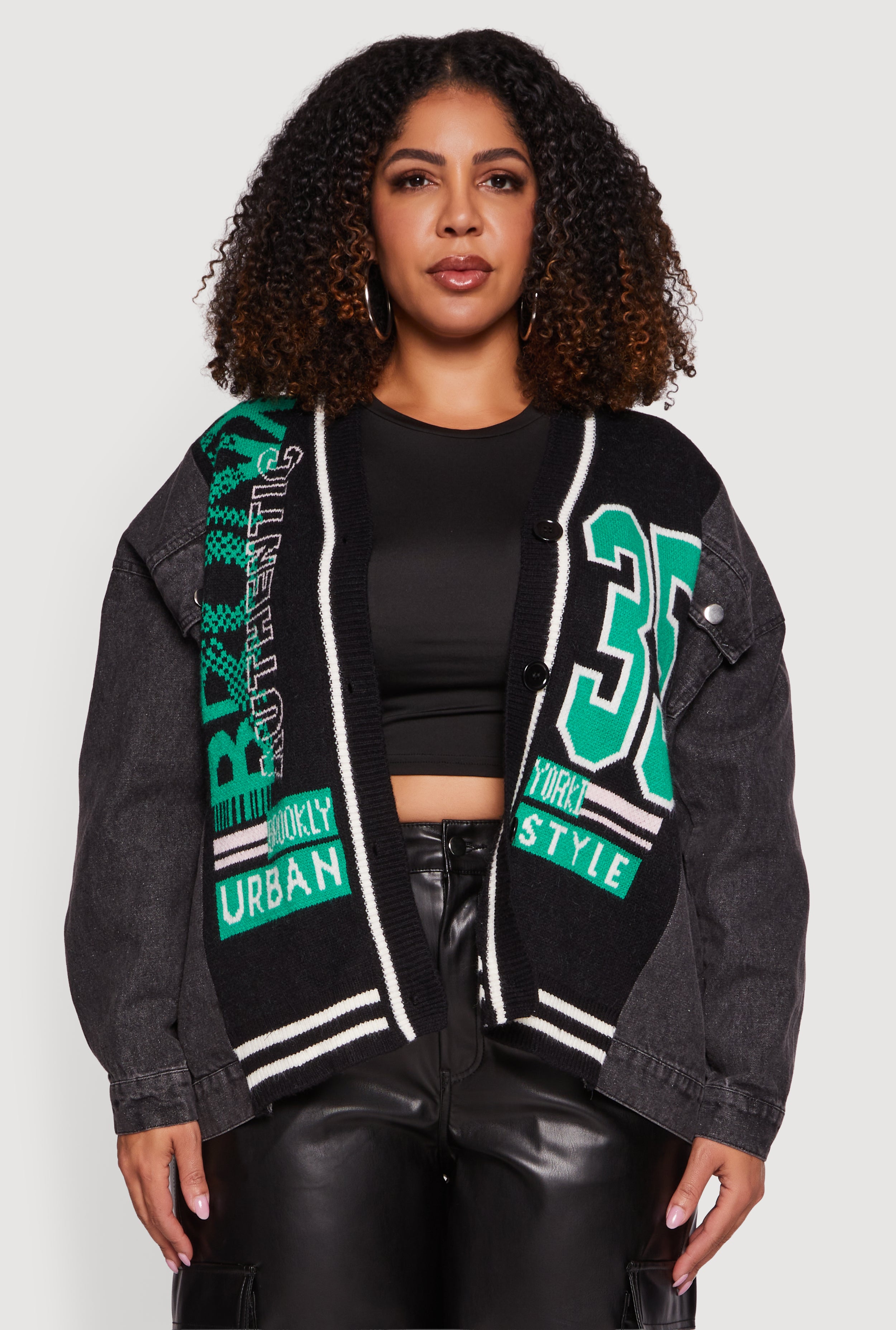 Plus Size Bronx Authentic Graphic Knit Denim Jacket