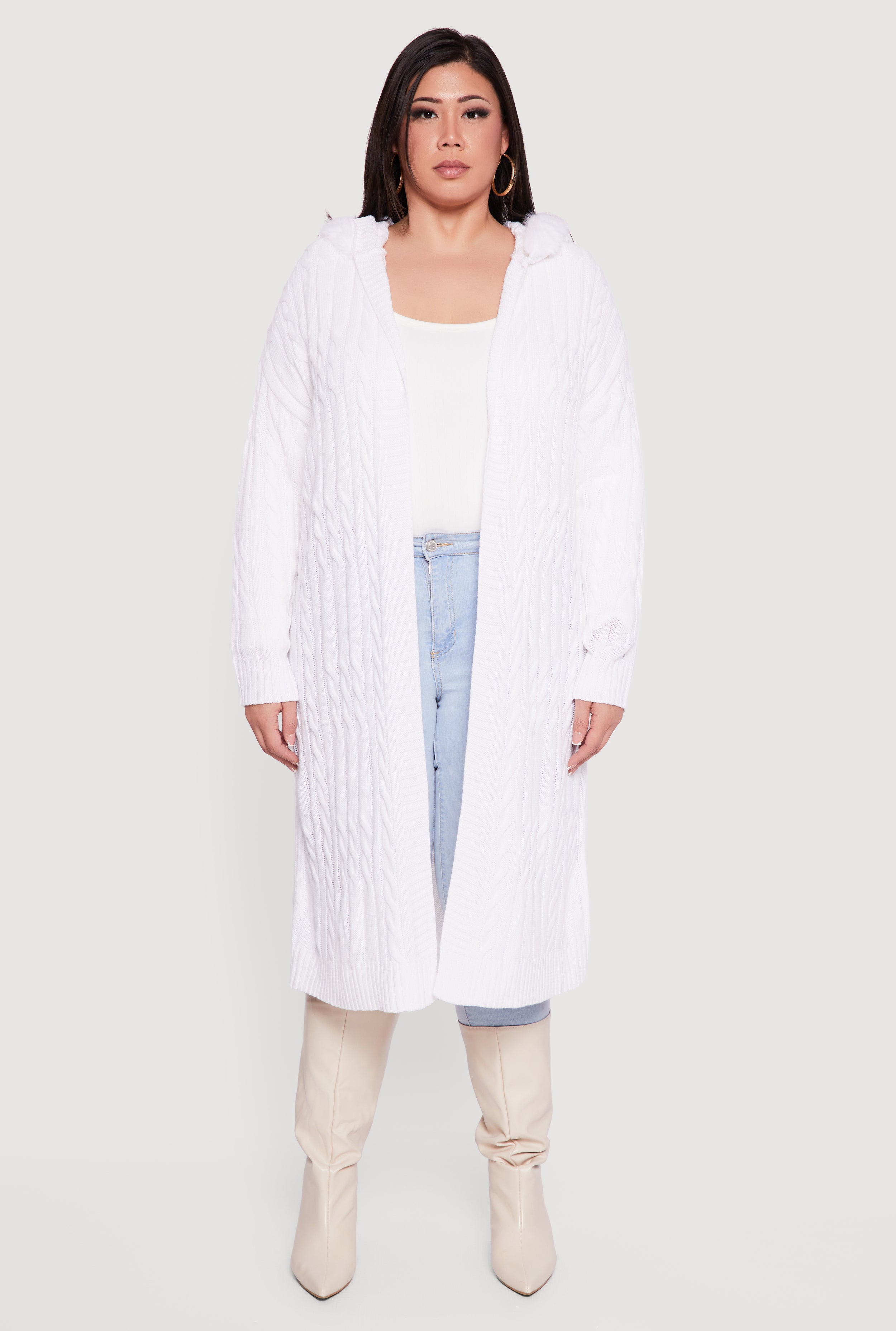 Plus Size Almost Famous Faux Fur Trim Hooded Long Cardigan