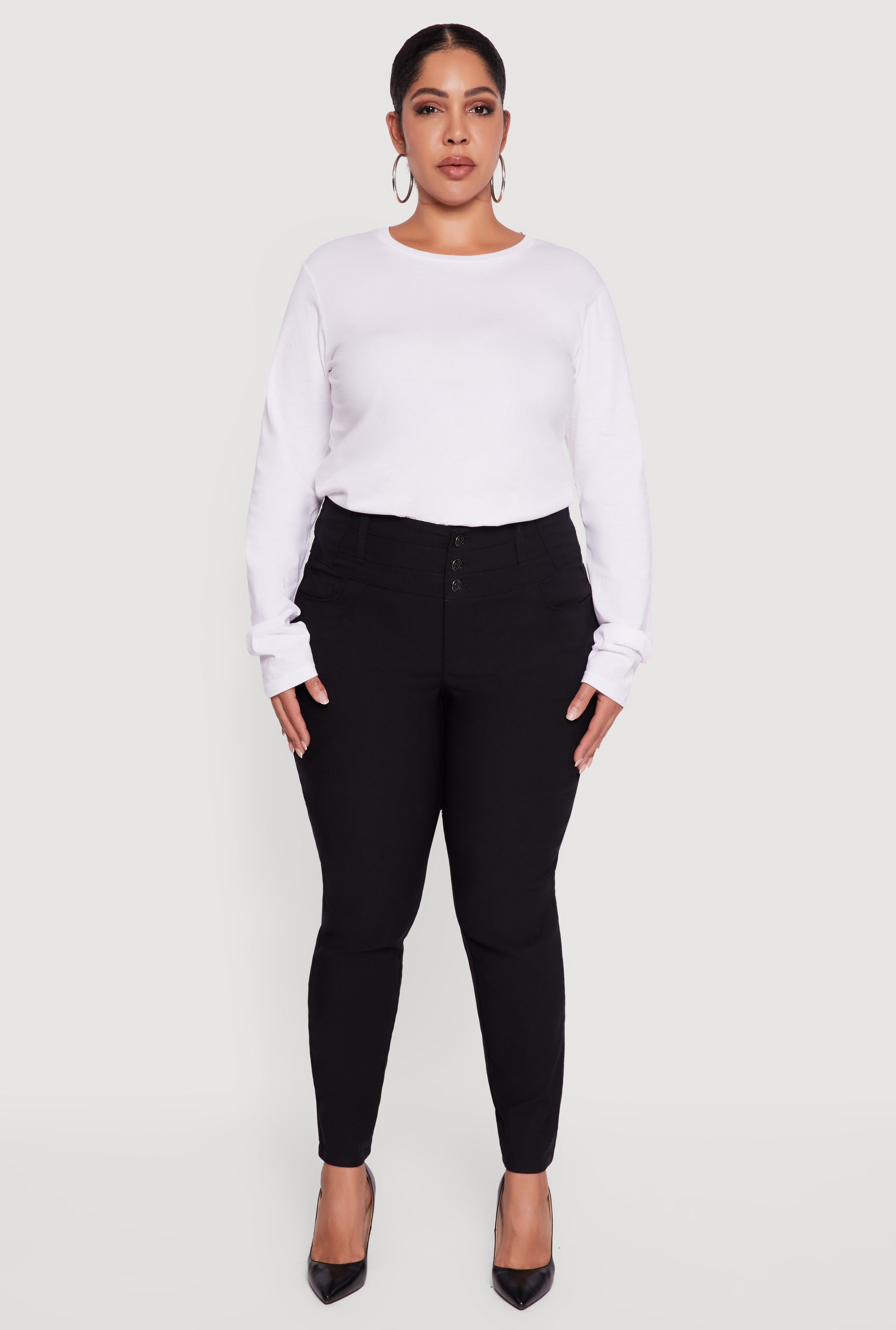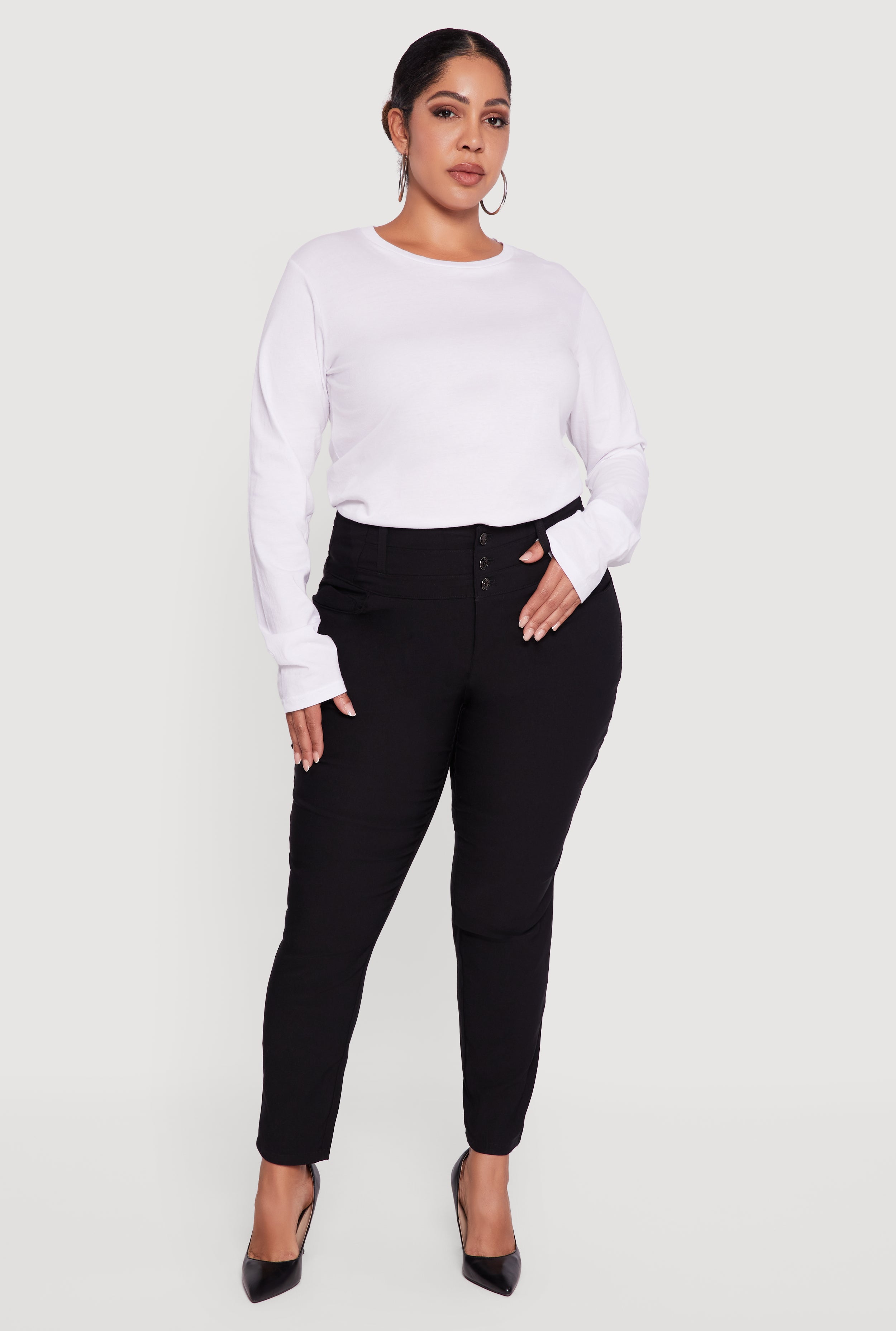 Plus Size Almost Famous Three Button High Waisted Pants