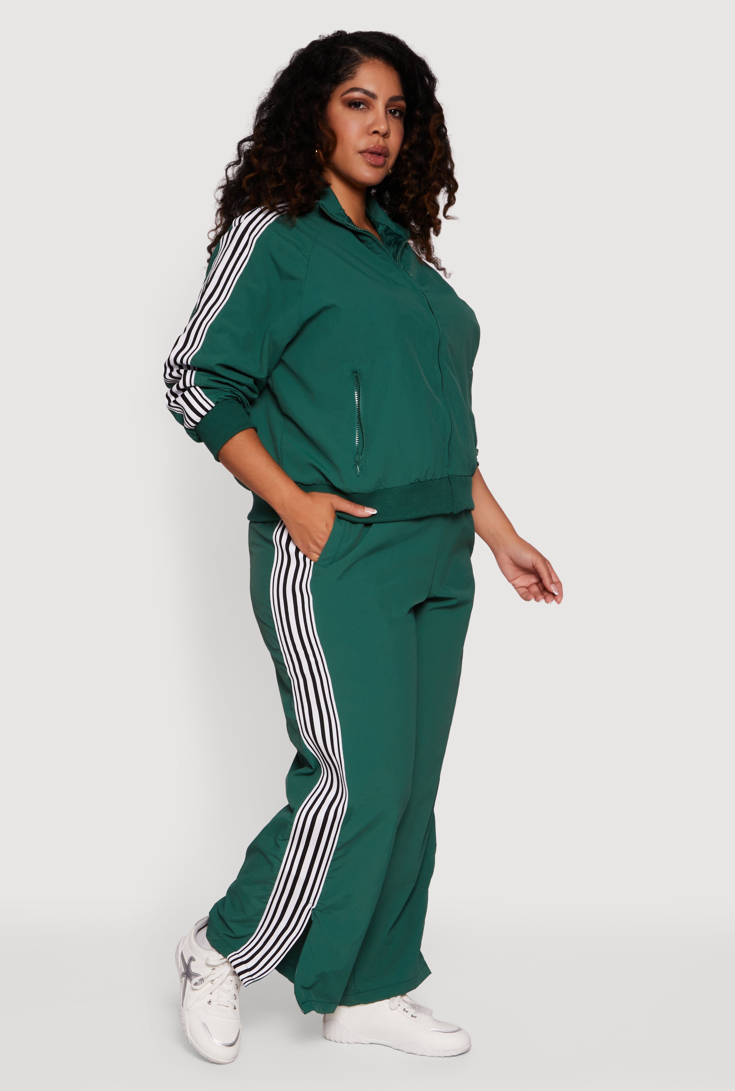 Plus Size Side Striped Nylon Track Pants