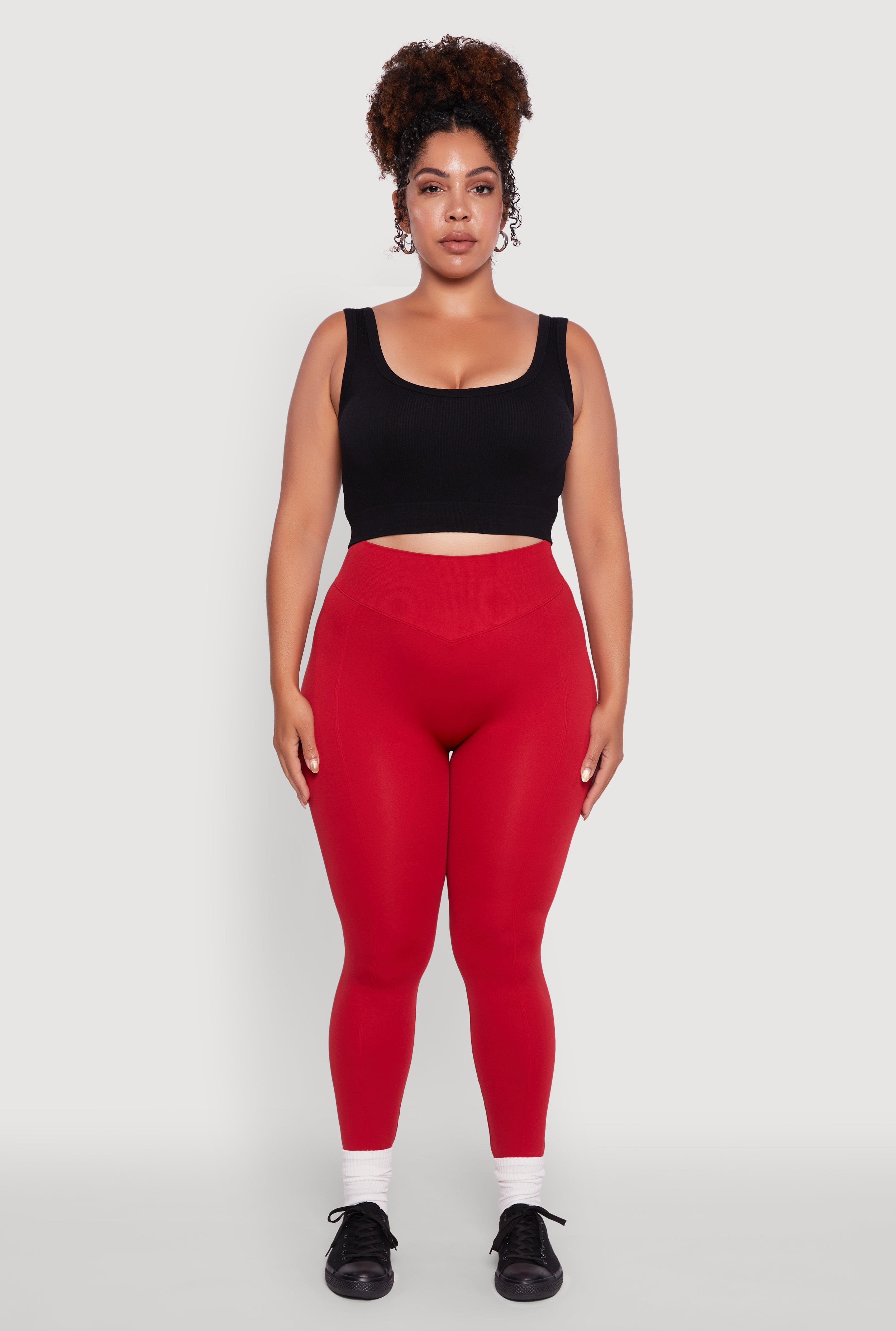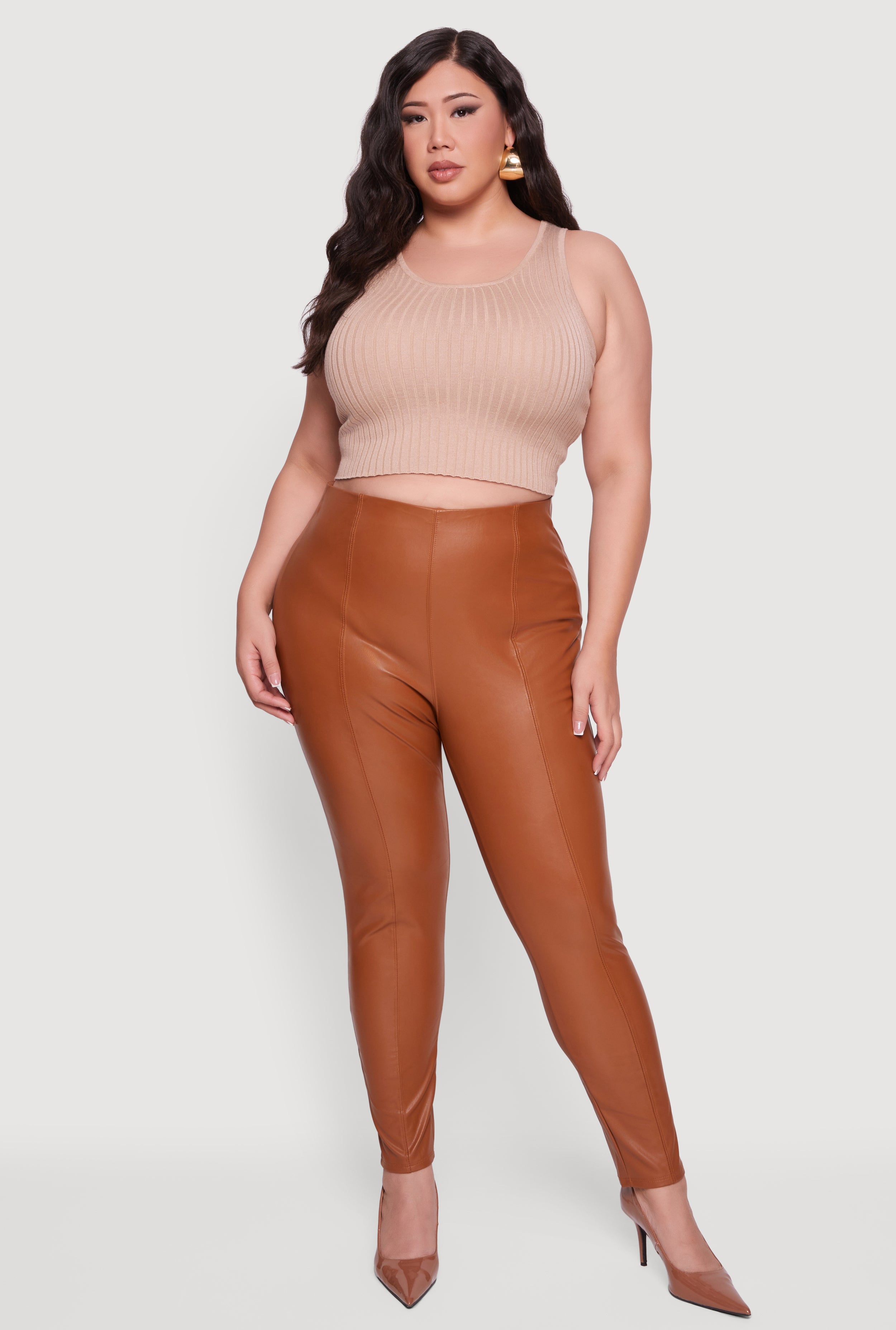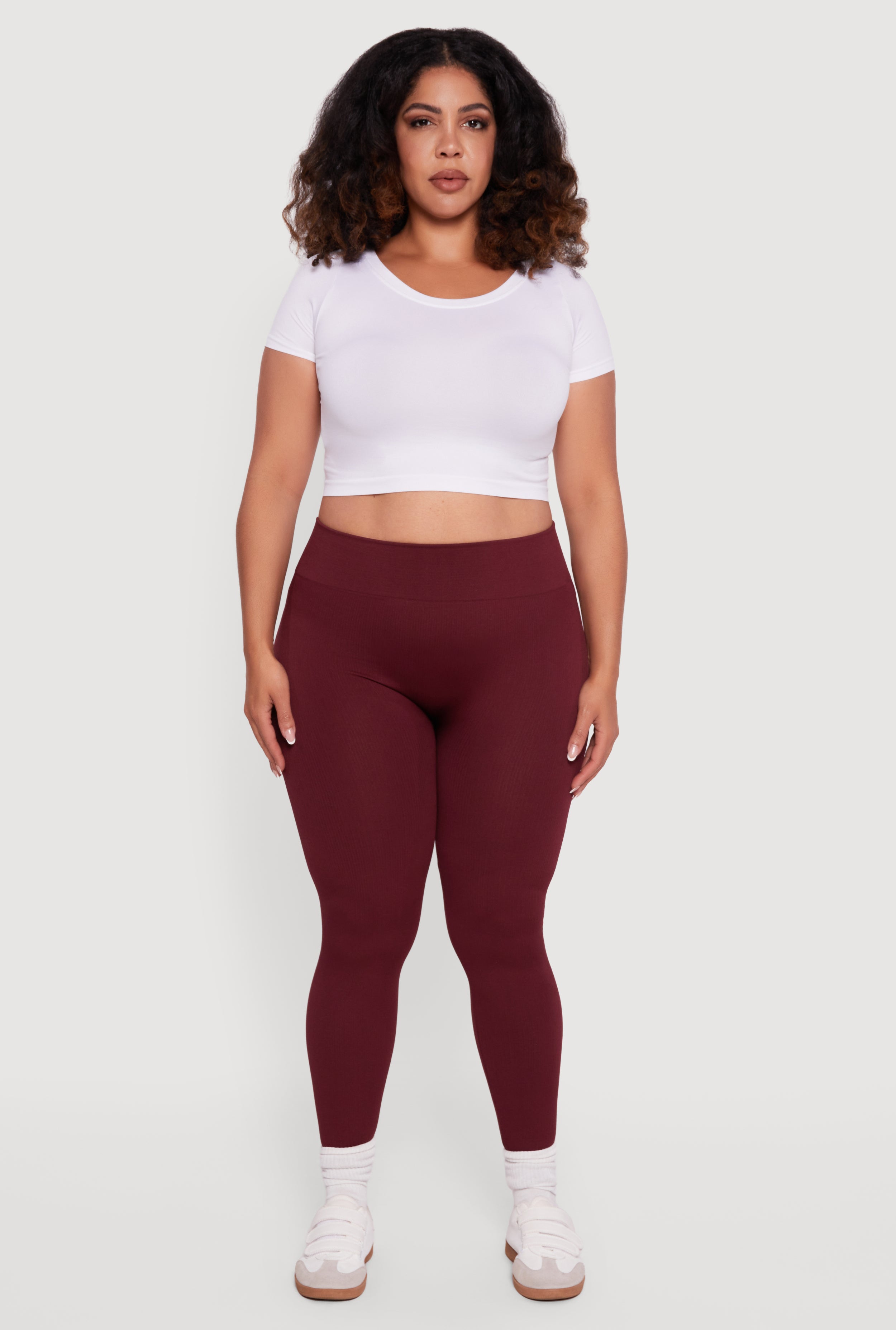 Plus Size High Waisted Brushed Ribbed Knit Leggings