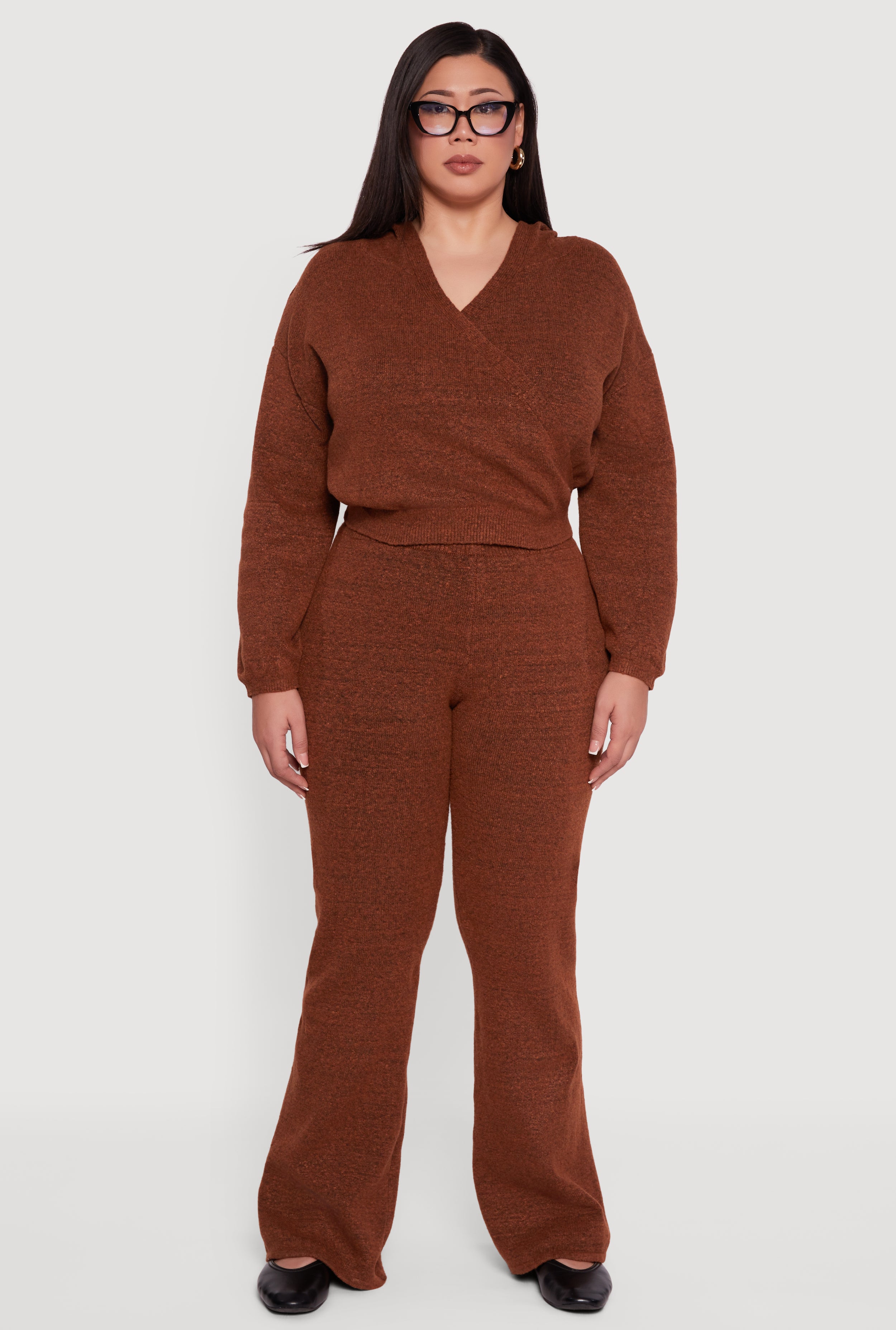 Plus Size Almost Famous Brushed Knit Flare Leg Pants
