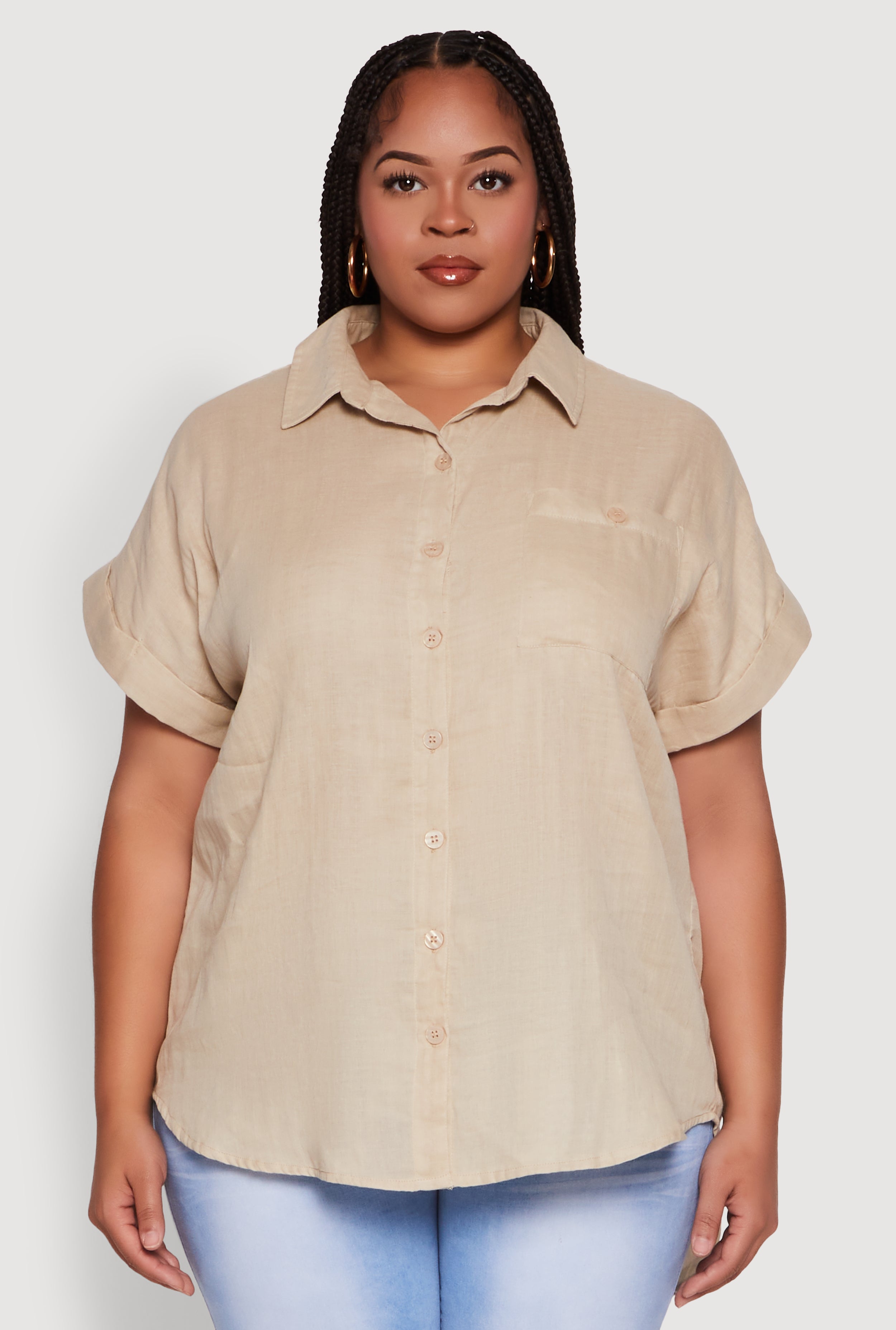Plus Size Short Sleeve Rolled Cuff Shirt