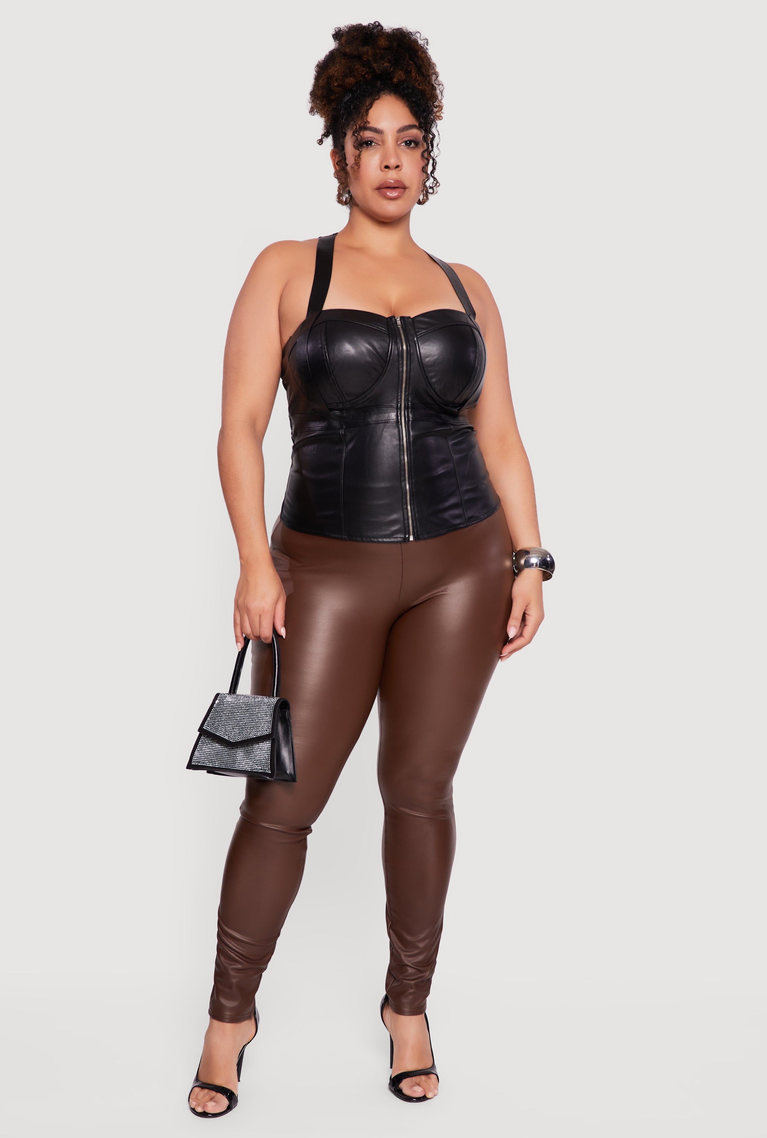 Plus Size Faux Leather Zip Back Bustier Top
