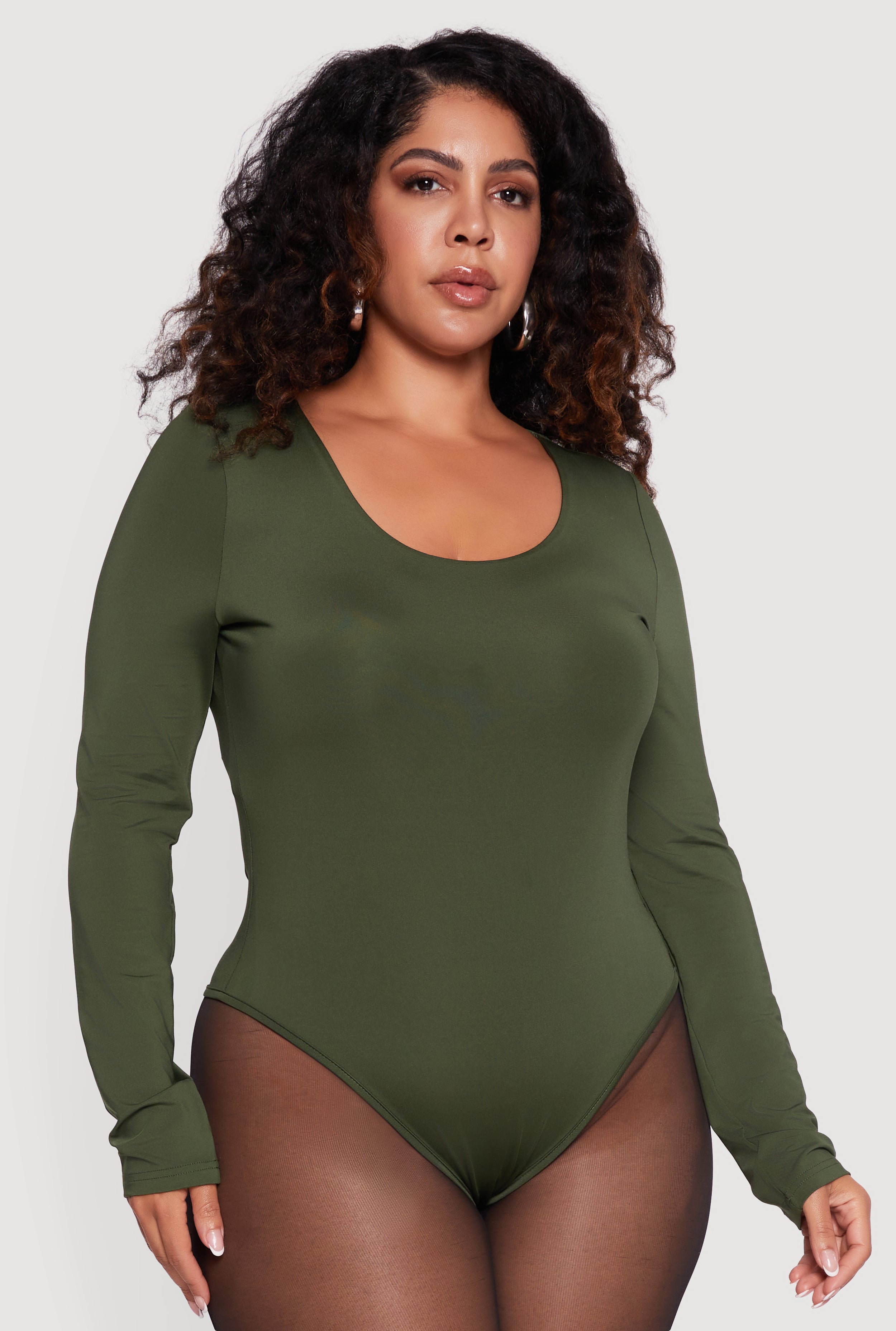 Plus Size Long Sleeve Scoop Neck Bodysuit