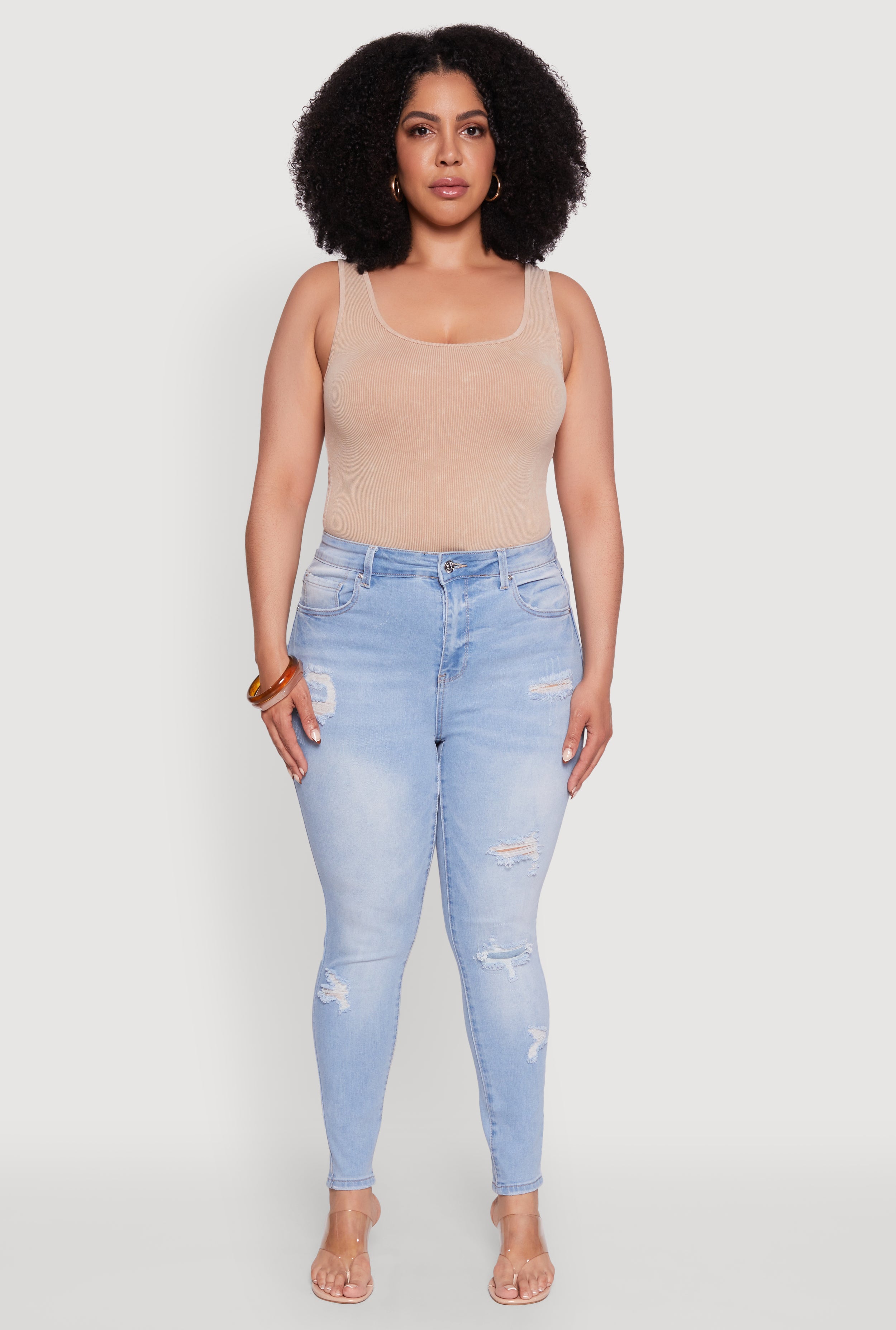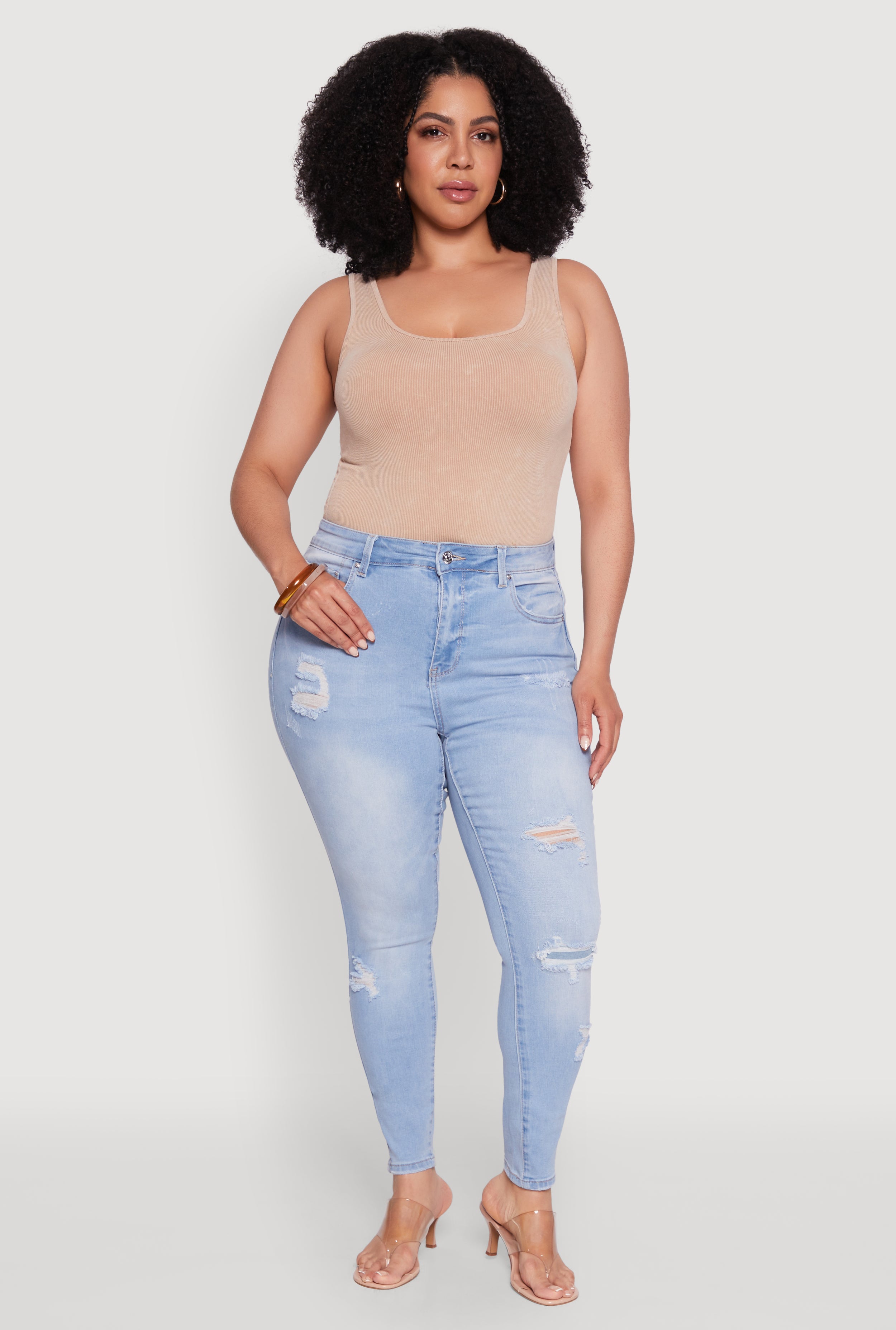 Plus Size WAX Distressed High Waisted Skinny Jeans