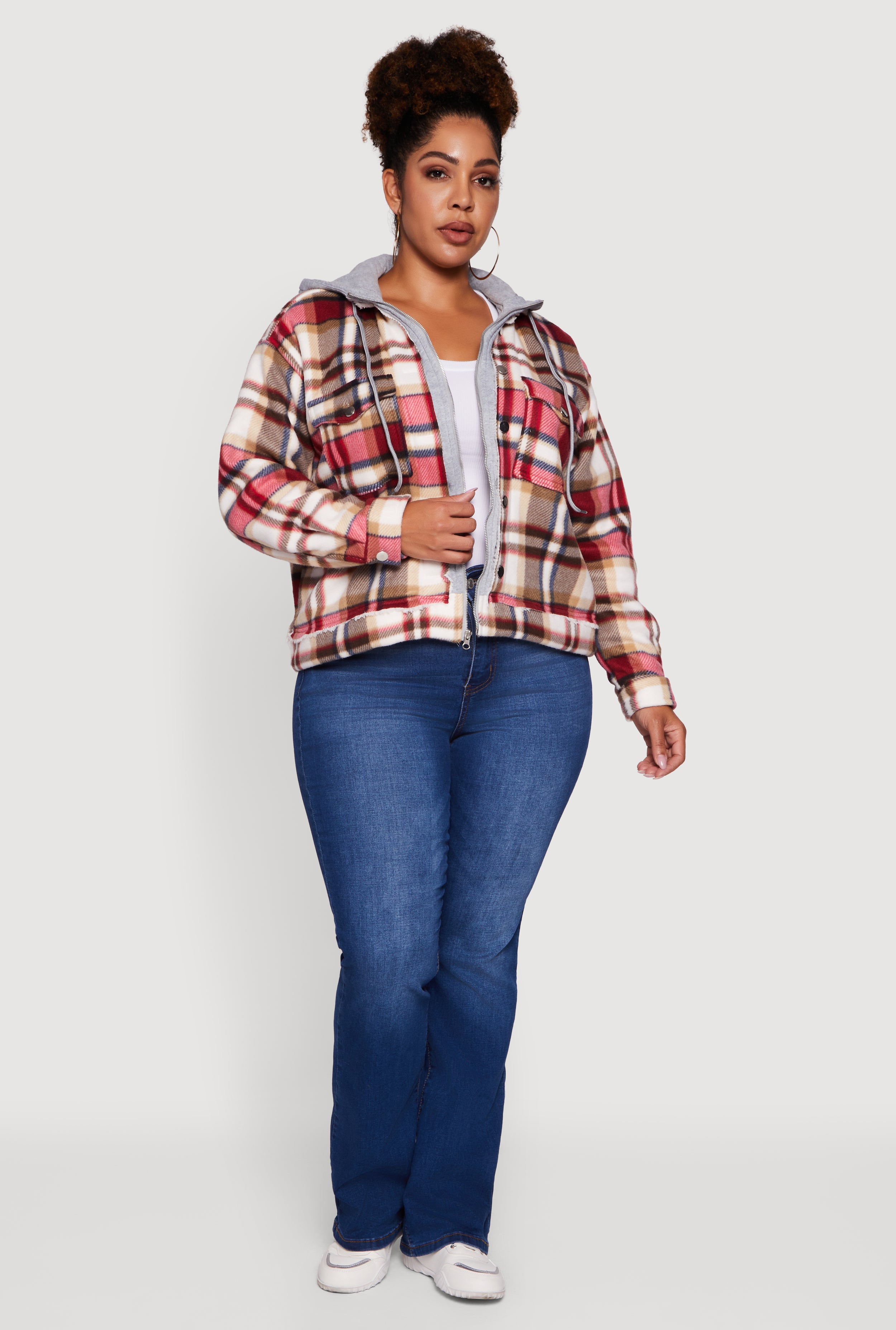 Plus Size Plaid Sherpa Lined Hooded Shacket