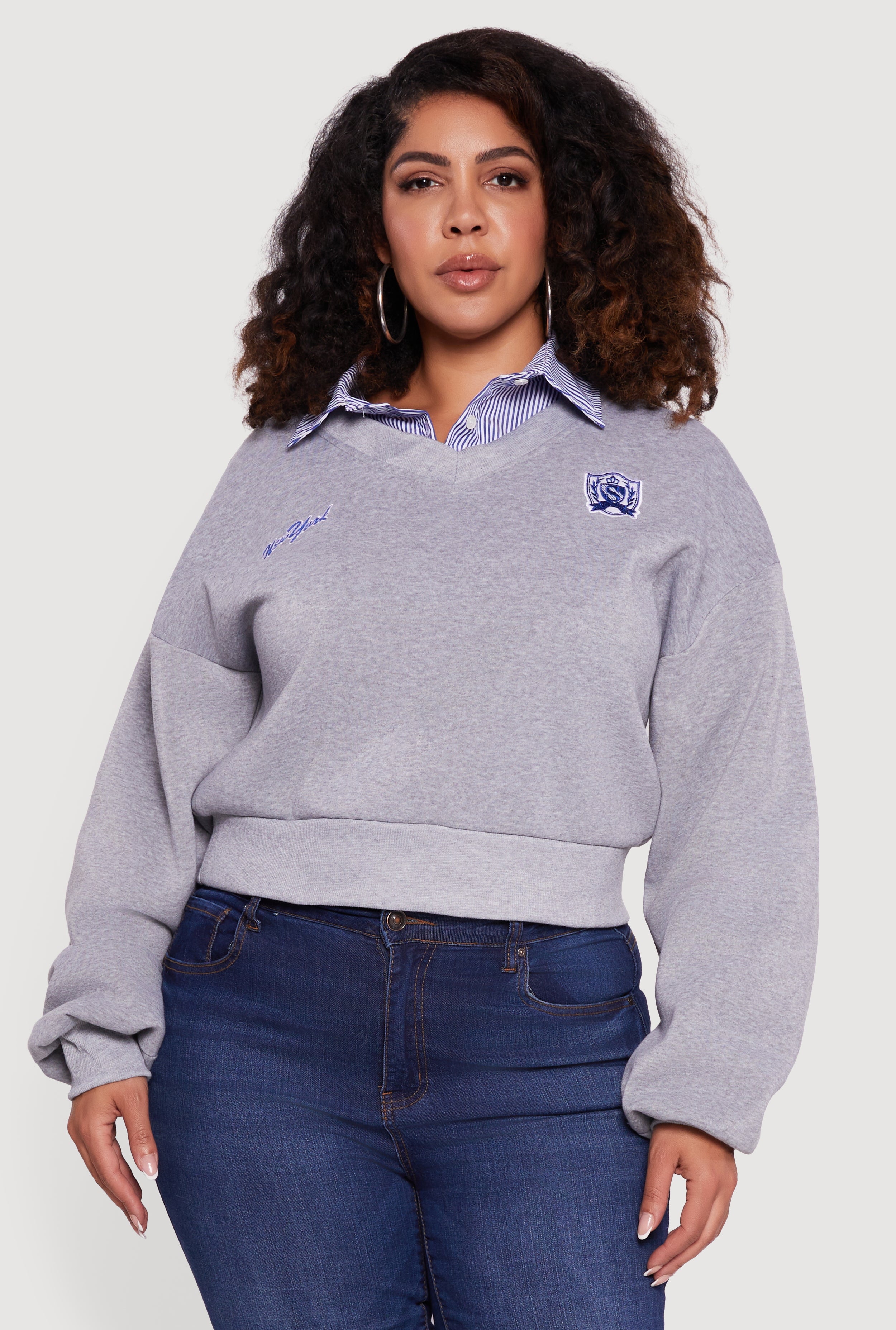 Plus Size New York Long Sleeve Shirt Collar Sweatshirt