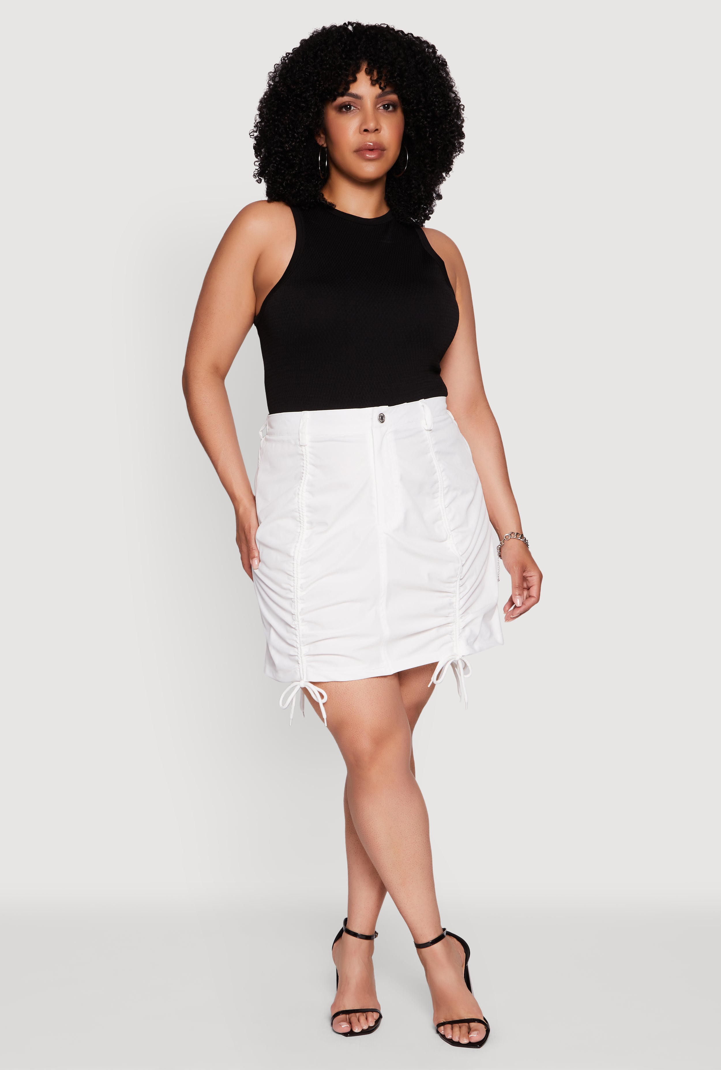 Plus Size Poplin Drawstring Ruched Mini Skirt