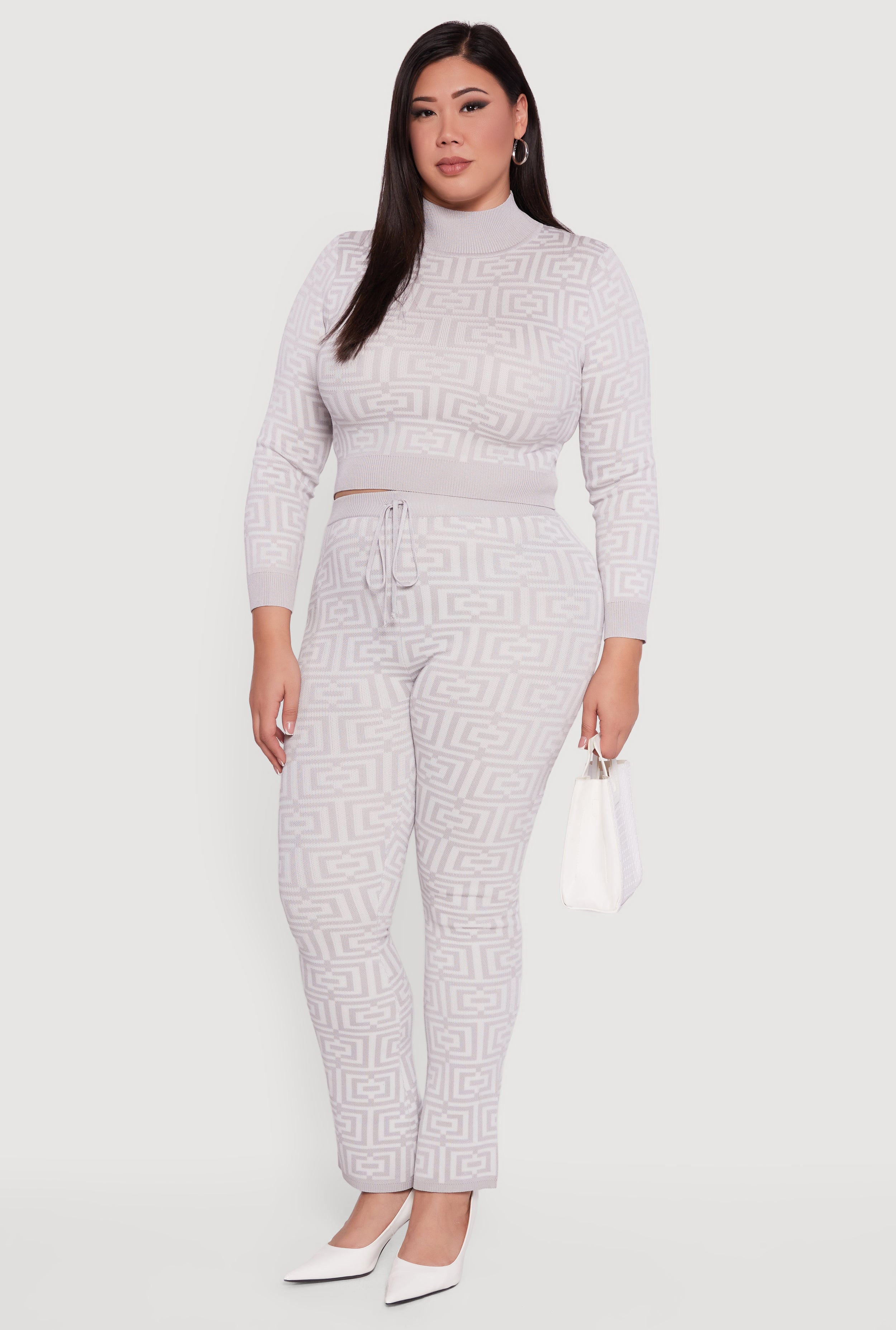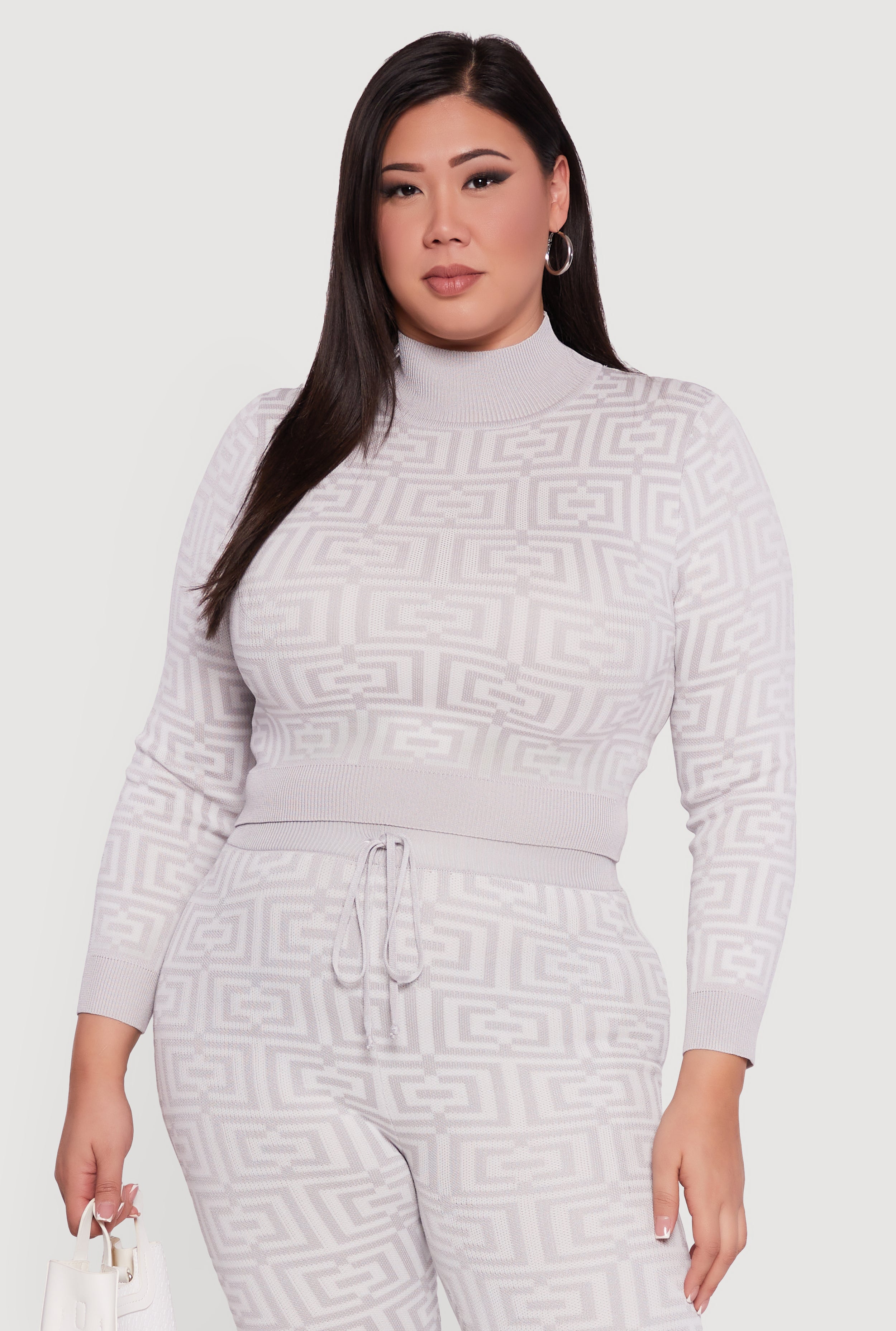 Plus Size Geometric Cropped Sweater