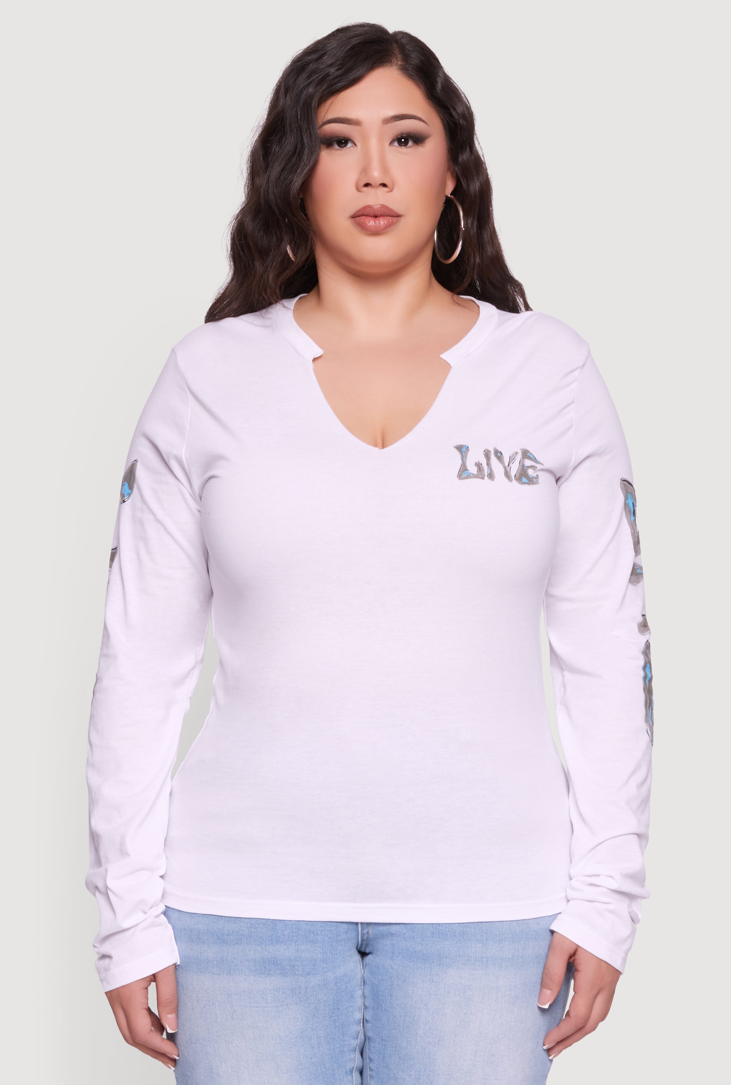Plus Size Long Sleeve Live In The Moment Graphic Tee