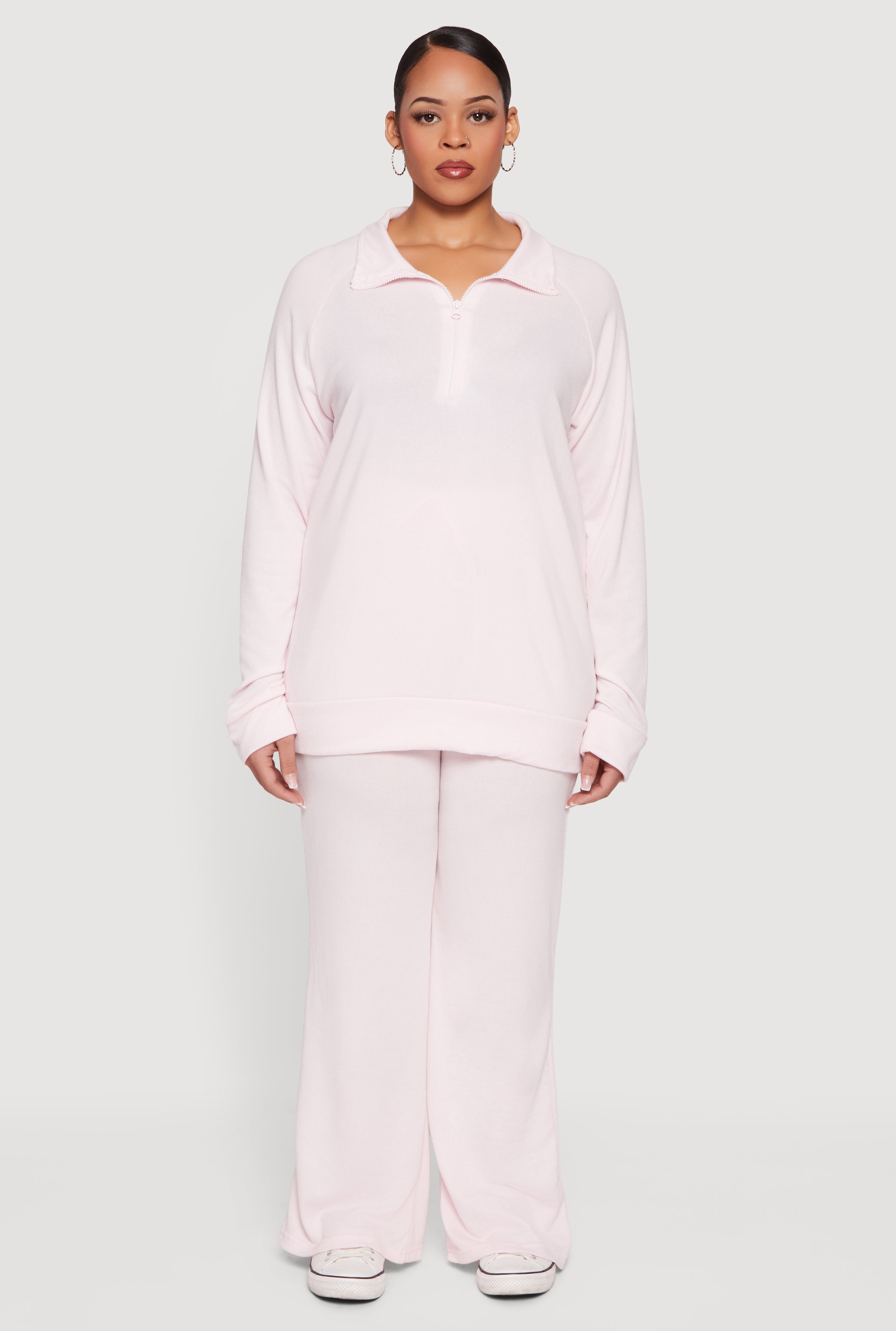 Plus Size Long Sleeve Quarter Zip Polo Top