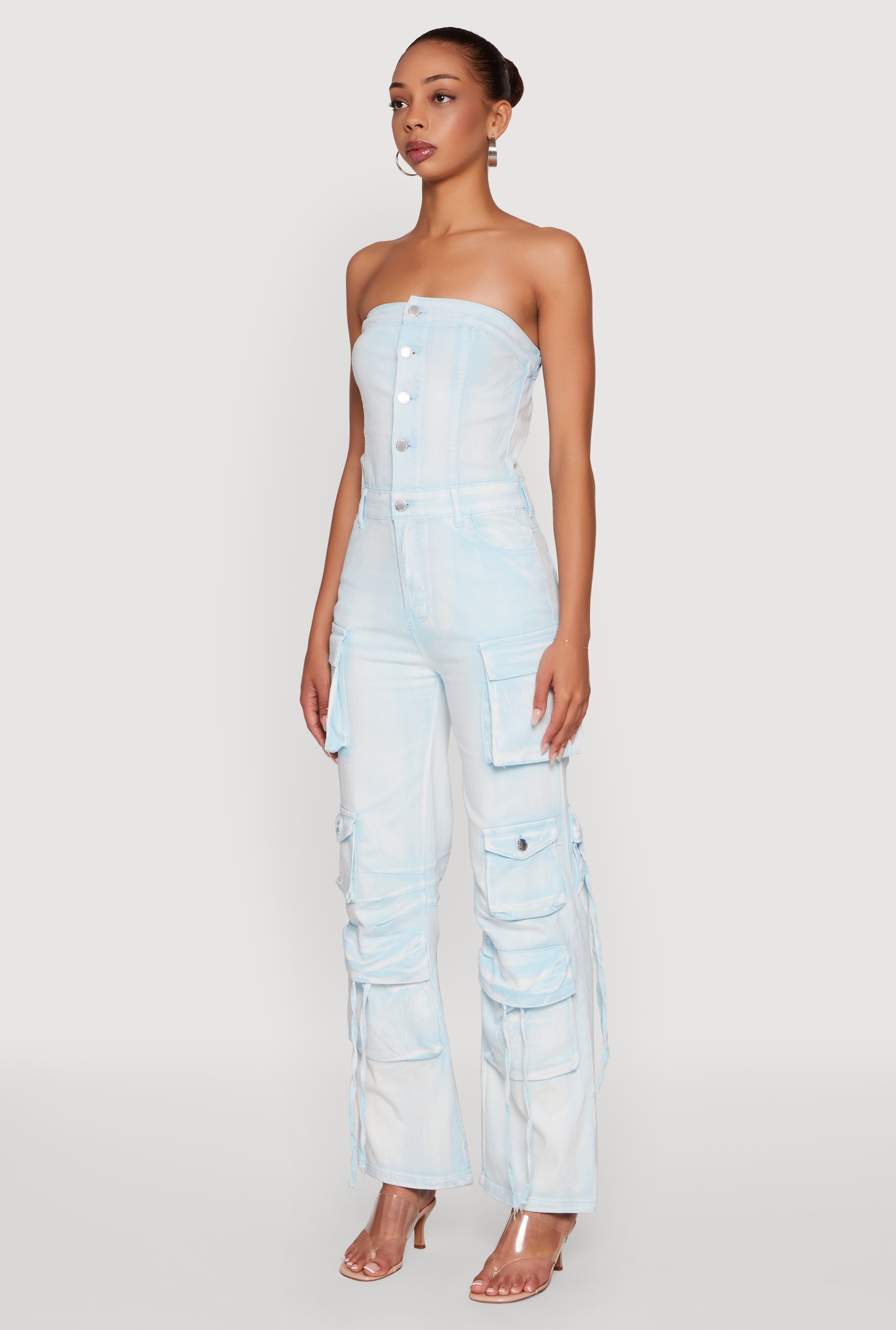 Get ready to turn heads with the Daisy Denim Strapless Flare Jumpsuit. Perfect for those who want to look effortlessly chic and stay comfy all day long, this jumpsuit is a must-have in your wardrobe. Its trendy flare leg and strapless design make it ideal for sunny days and nights out. Plus, the cargo pockets add a fun, practical touch that keeps your essentials close without sacrificing style. Whether you're dressing up or down, this denim jumpsuit is your new go-to for a cool, casual vibe that feels as good as it looks.