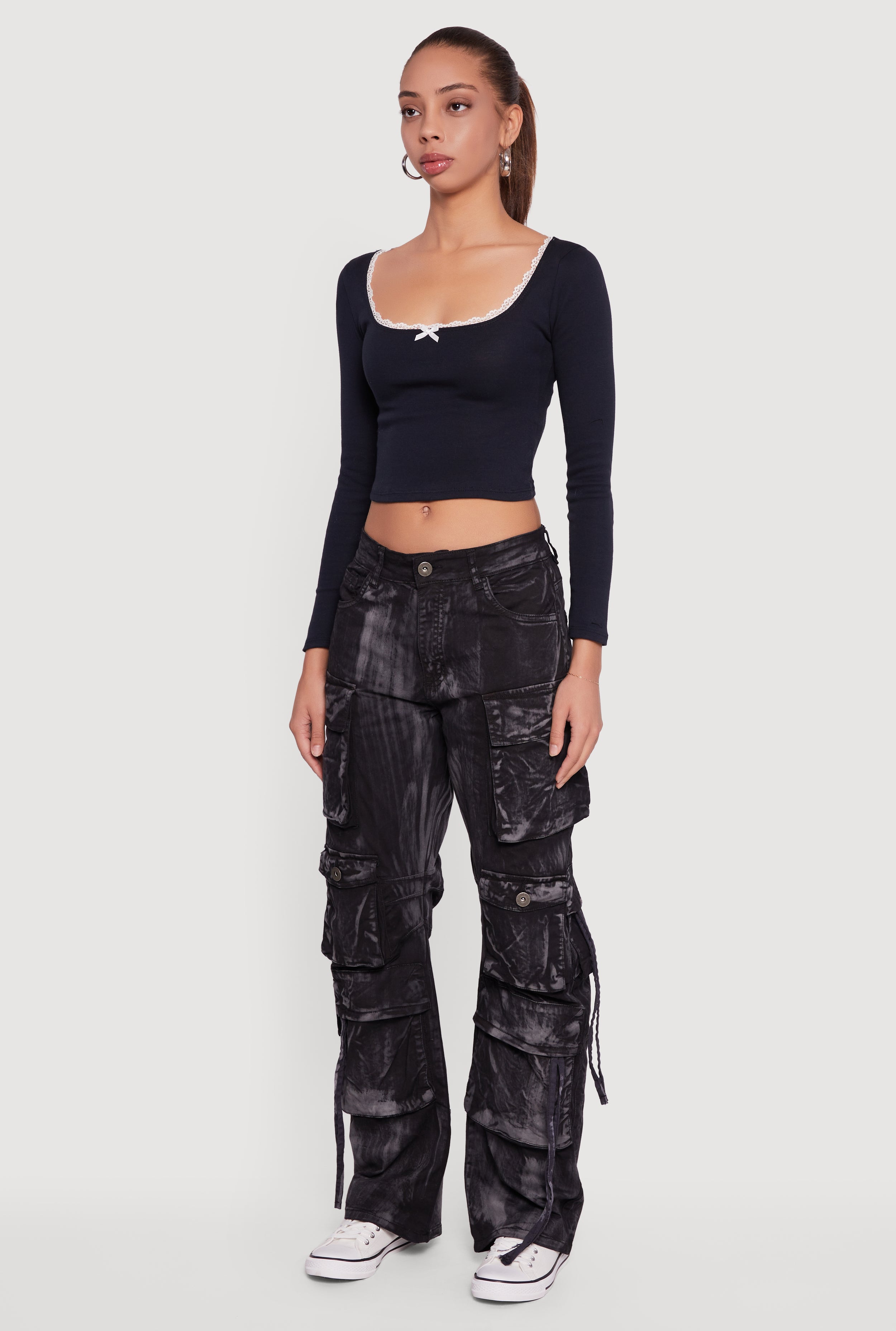 • Trendy acid wash denim for a vintage-inspired look