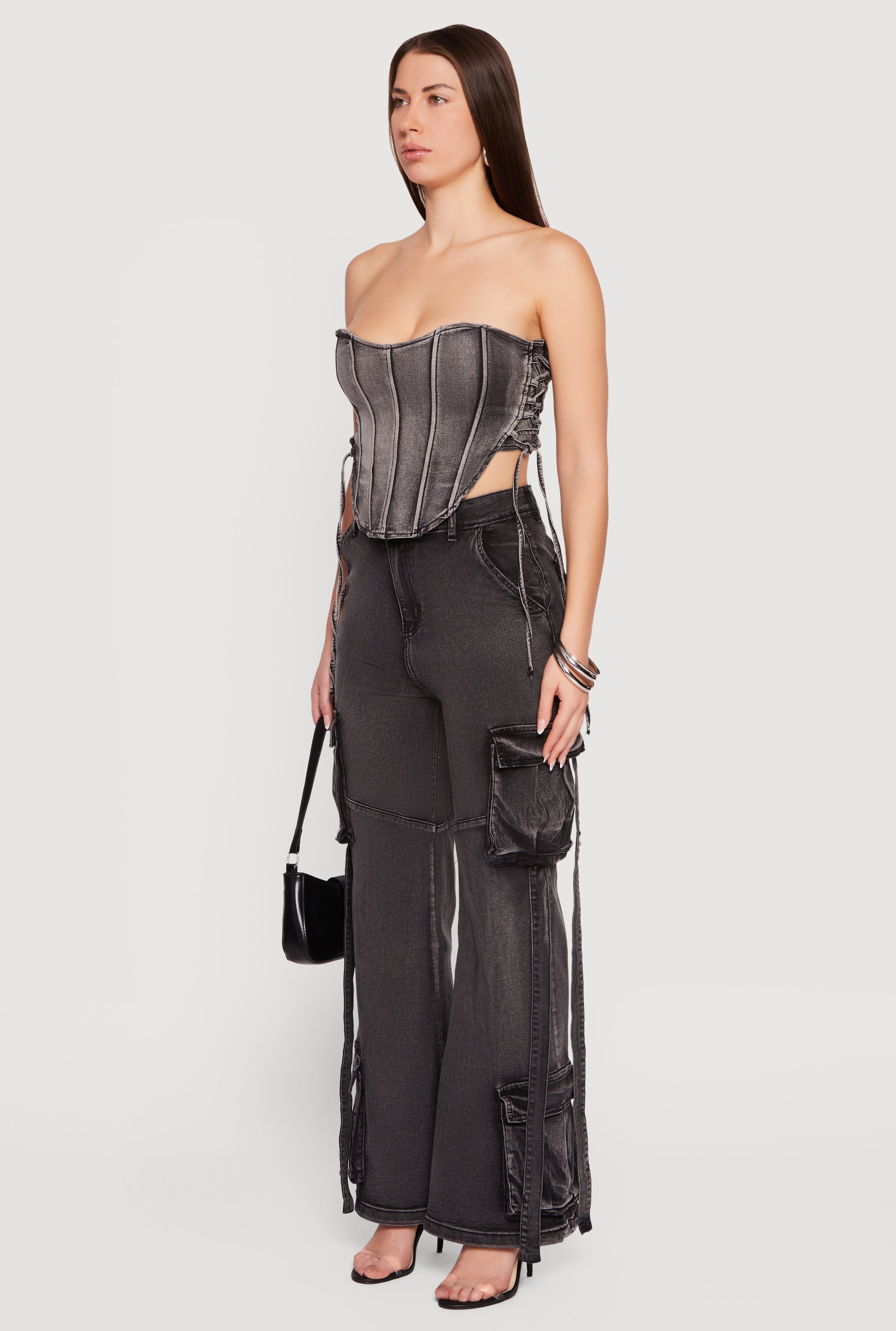 - Full-length acid wash denim for a vintage vibe