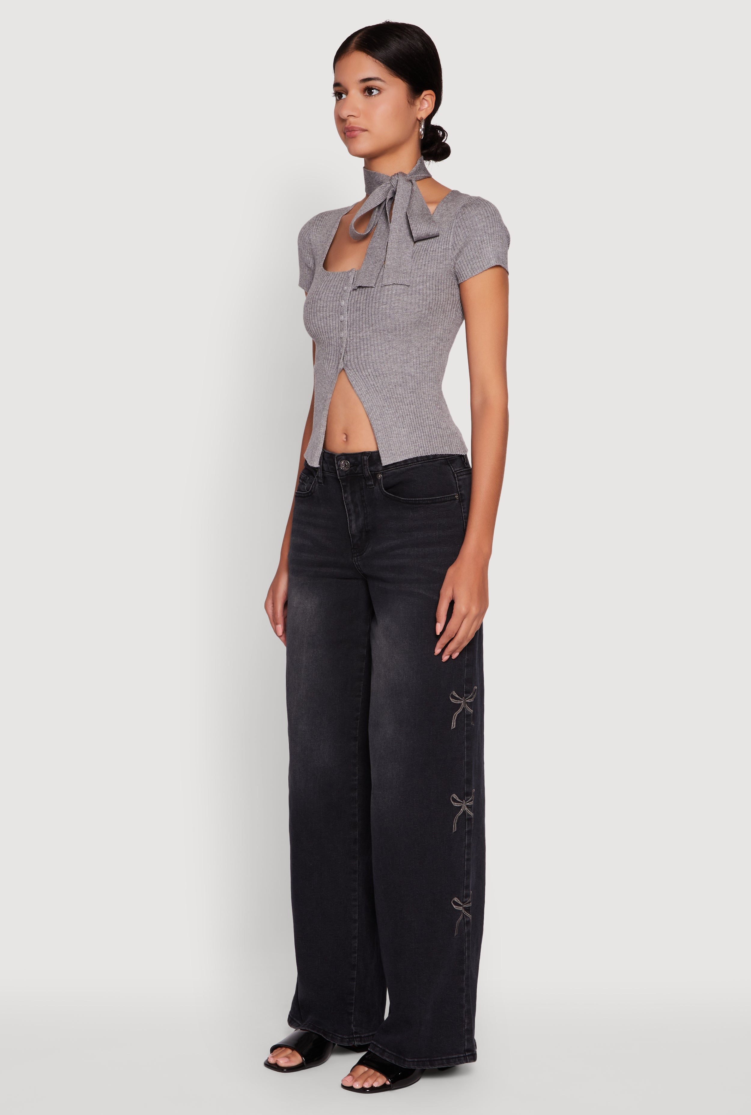 - Eye-catching embroidered bow accents along the sides for a playful, feminine touch