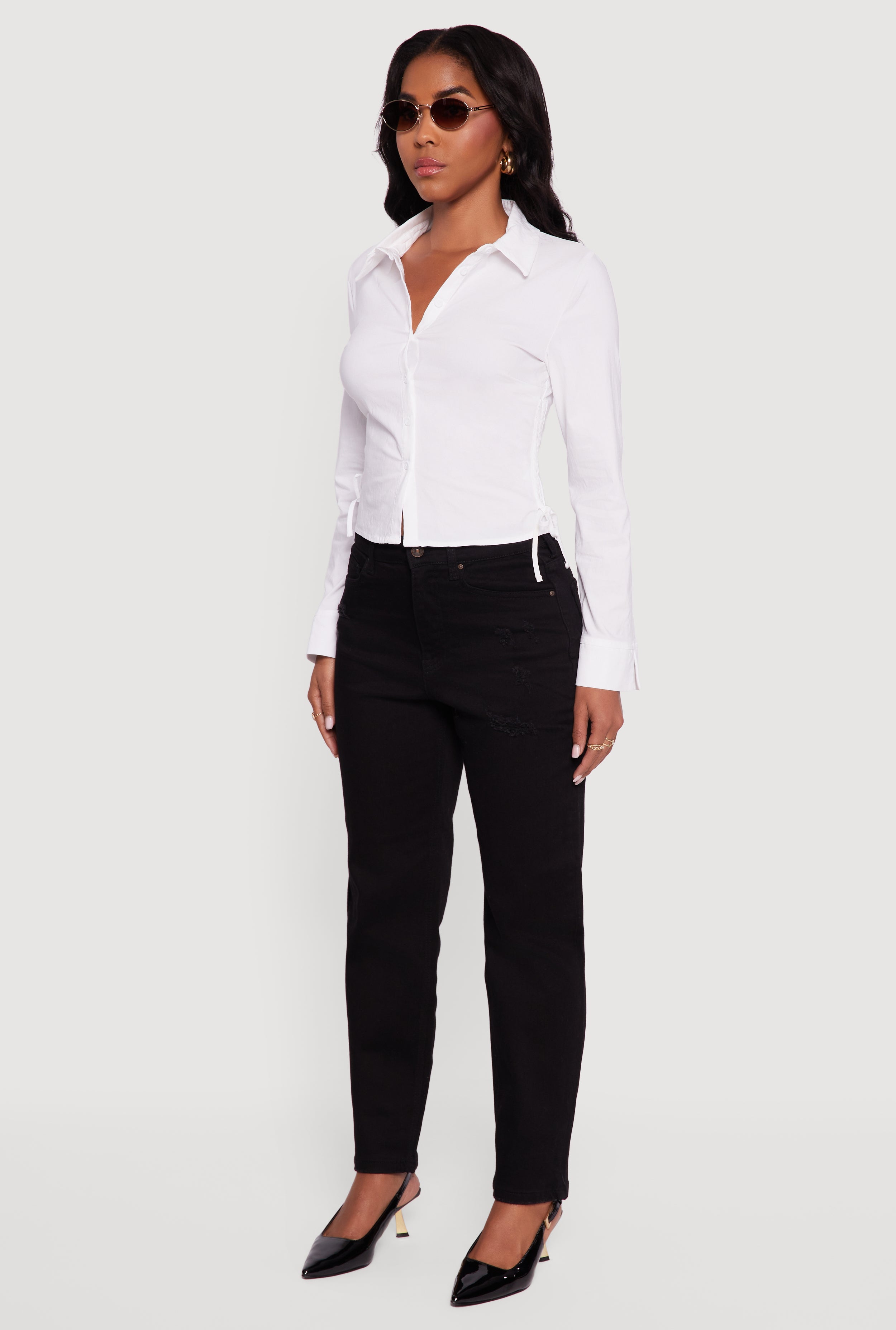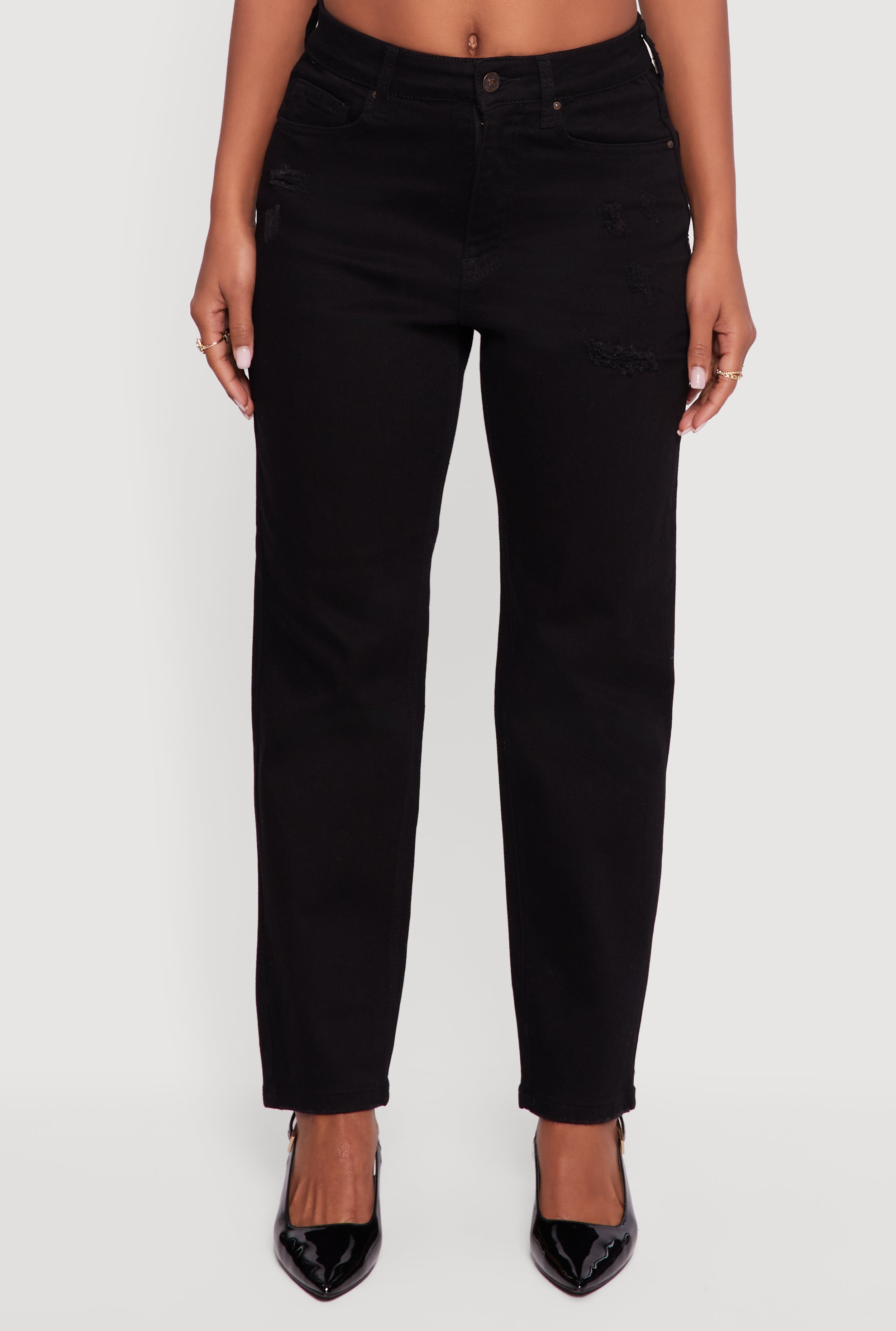 - Trendy distressed and frayed details add instant edge