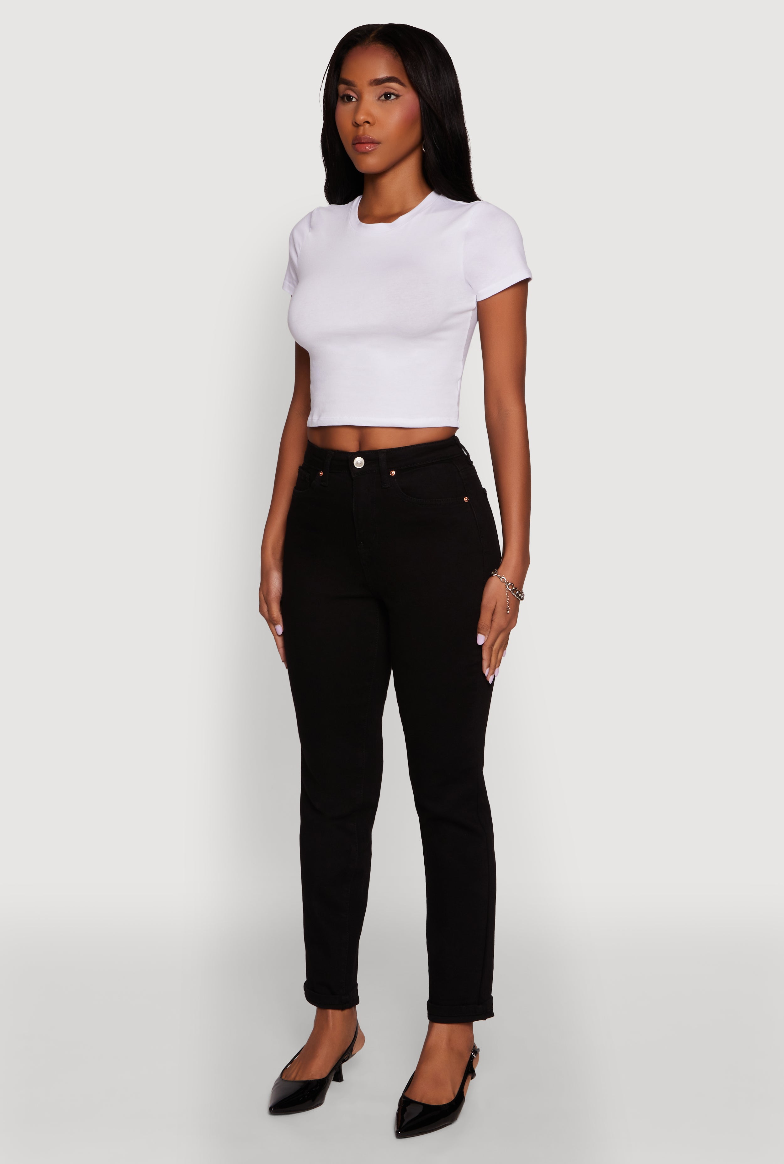 Step up your casual game with the WAX Stretch Cuffed Slim Leg Mom Jeans. These mid-rise jeans blend the classic mom fit with a modern slim leg silhouette, giving you that effortlessly cool streetwear vibe. The stretchy denim moves with you, while the rolled cuffs add a playful touch that’s perfect for day-to-night looks. Whether you’re out with friends or just chilling, these jeans are your new go-to for laid-back style that doesn’t compromise on comfort.