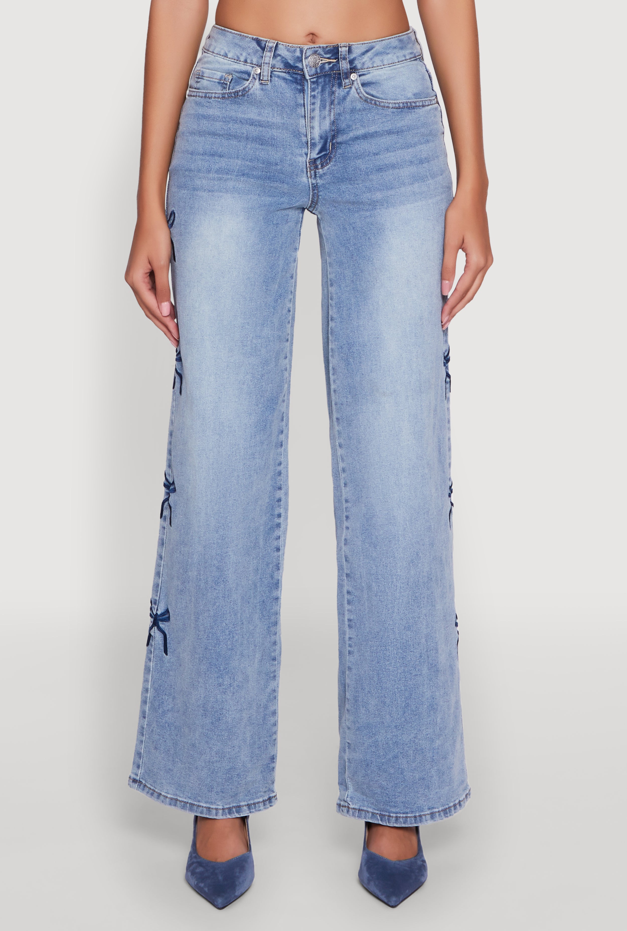 Mineral Wash Embroidered Bow Side Jeans