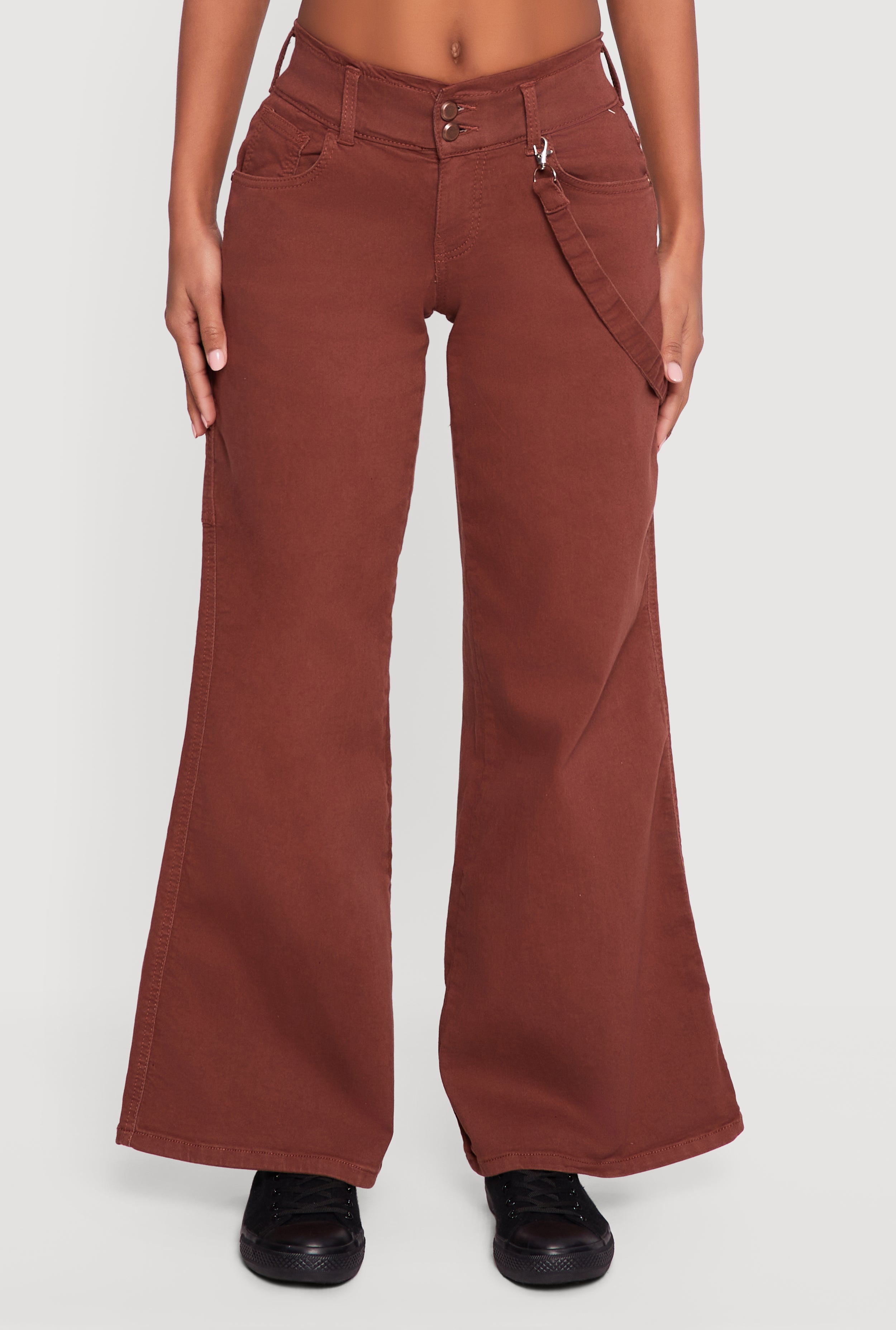 Step out in style with these Strap Detail Flare Leg Jeans designed to elevate your casual wardrobe. Crafted from classic denim, they feature a trendy flare leg silhouette that adds a cool, retro vibe to any outfit. The mid-rise fit offers comfort and a flattering shape, while the unique strap detail brings an edgy twist that sets these jeans apart. Plus, a handy cell phone pocket keeps your essentials close without sacrificing style.