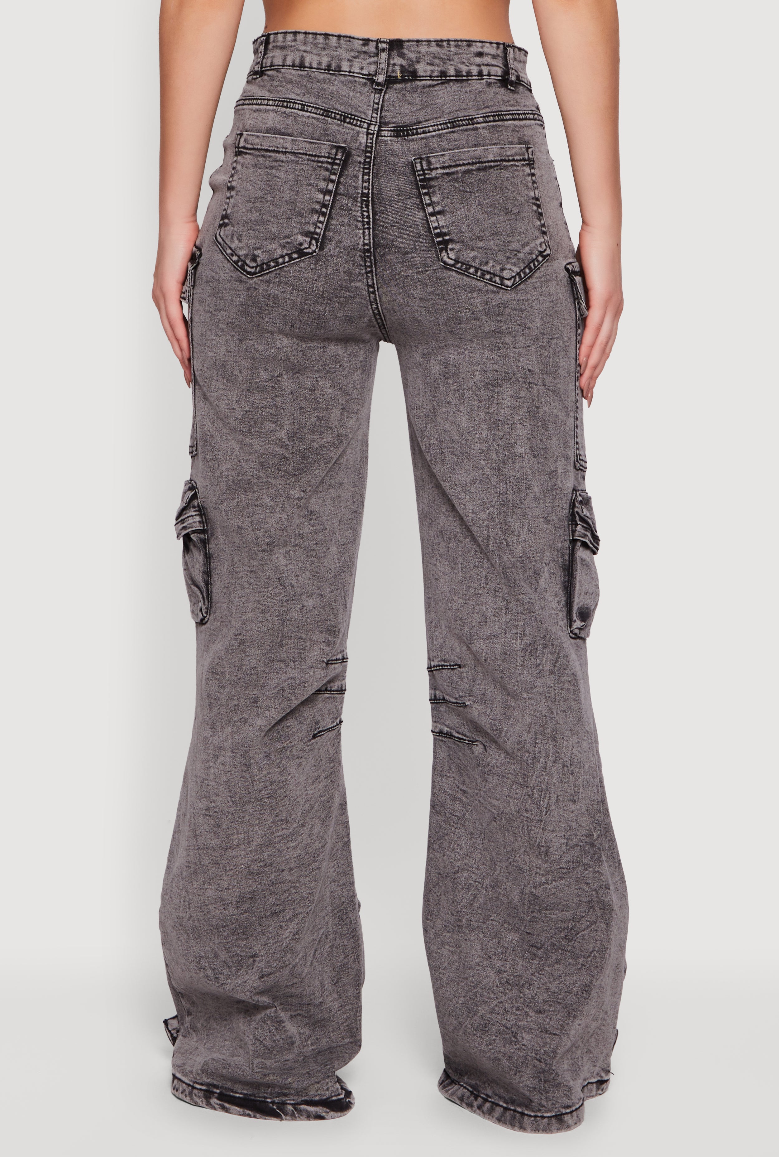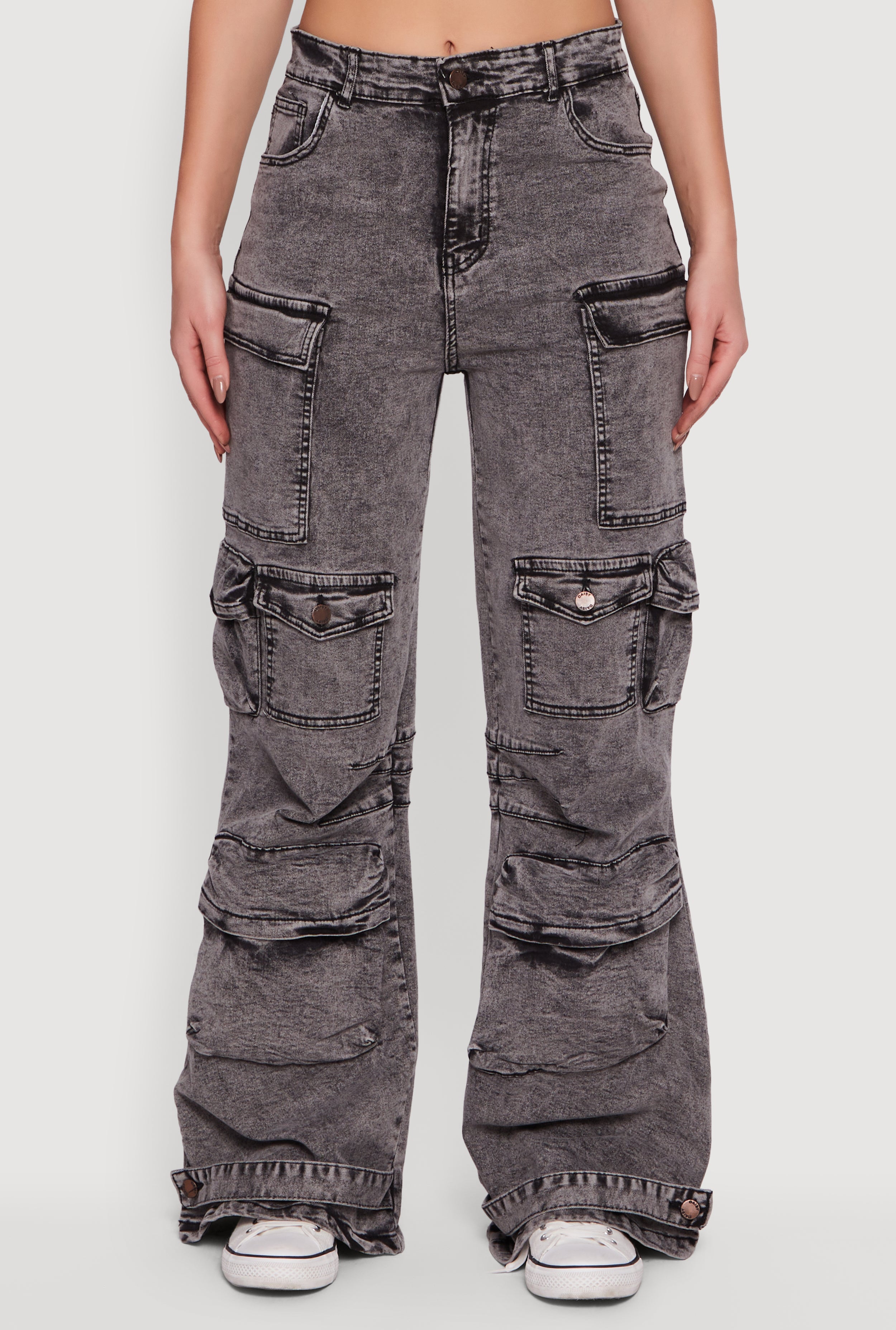 Step up your denim game with these Acid Wash Flare Leg Utility Jeans from Daisy. Designed for effortless cool, these mid-rise jeans feature a classic fit and a flattering flare leg that adds a retro vibe to your everyday look. The acid wash finish gives them a unique, lived-in feel while the cargo pockets bring a practical edge perfect for your on-the-go lifestyle. Whether you're running errands or meeting friends, these jeans combine comfort and style for a casual, laid-back outfit that turns heads.