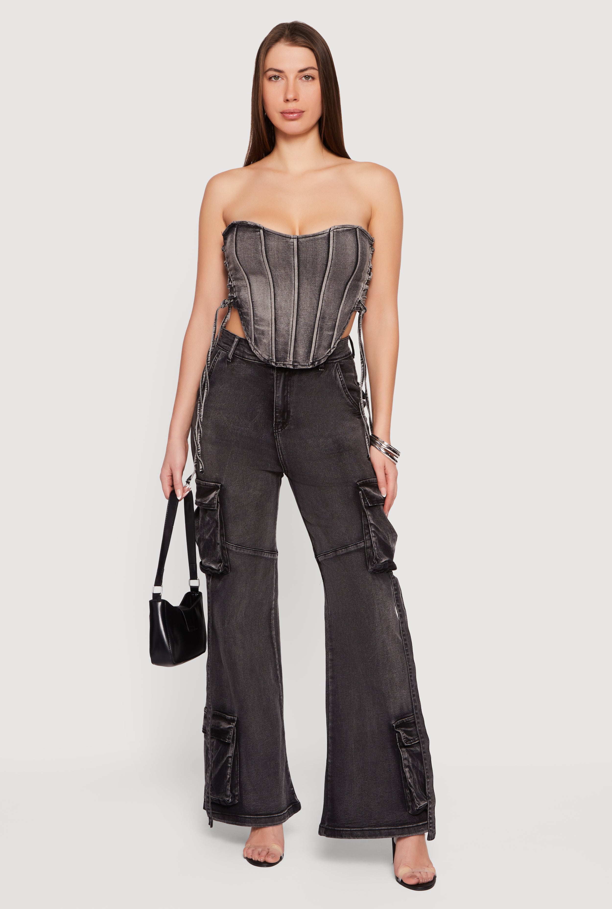 Lace up your style game with this Denim Corset Top that’s made for turning heads. Featuring a strapless neckline and classic fit, this acid wash beauty combines streetwear edge with casual vibes. The boning adds structure while the side string closure lets you customize your perfect fit. Pair it with your fave high-waisted jeans or a flirty skirt for an effortlessly cool look that’s totally on trend.