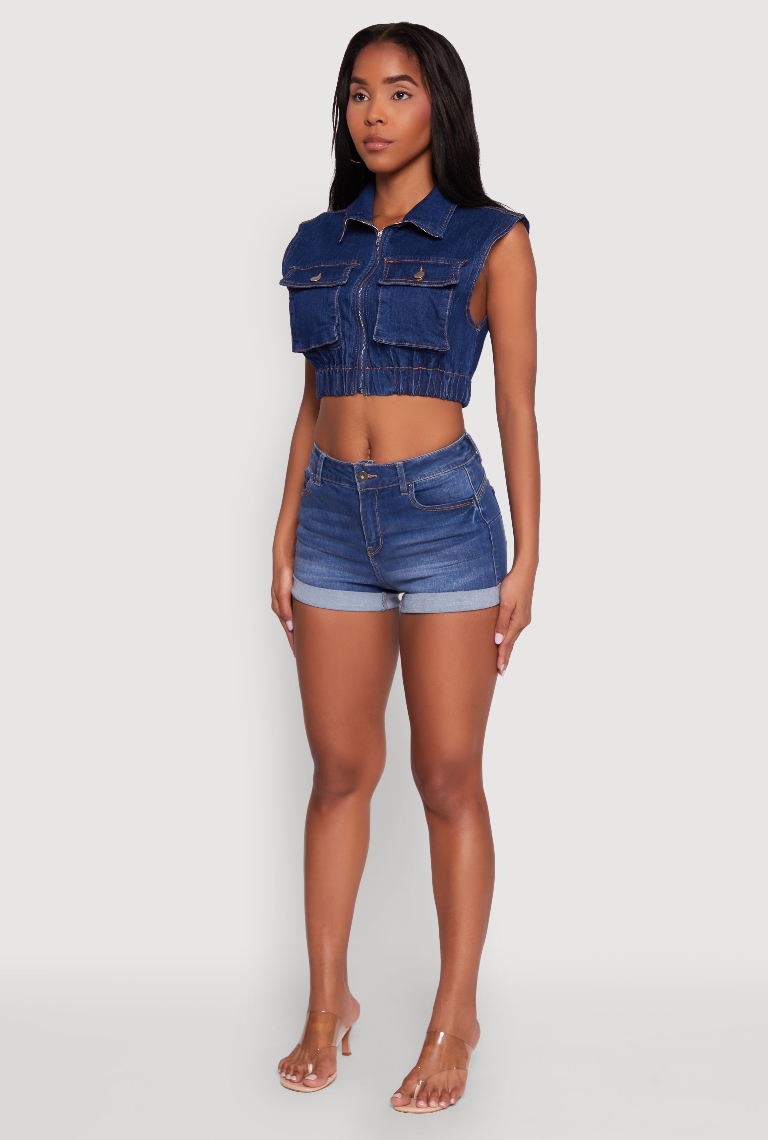 Meet your new go-to layer: the Daisy Sleeveless Cropped Denim Jacket. This classic-fit vest brings timeless cool with a fresh twist—sleeveless for easy layering and a cropped hem that pairs perfectly with high-waisted jeans or your favorite summer dress. The collared neckline and zipper closure add a touch of edge, while cargo pockets give you that effortless street style vibe. Whether you’re running errands or hanging out with friends, this jacket keeps your look on point without trying too hard.