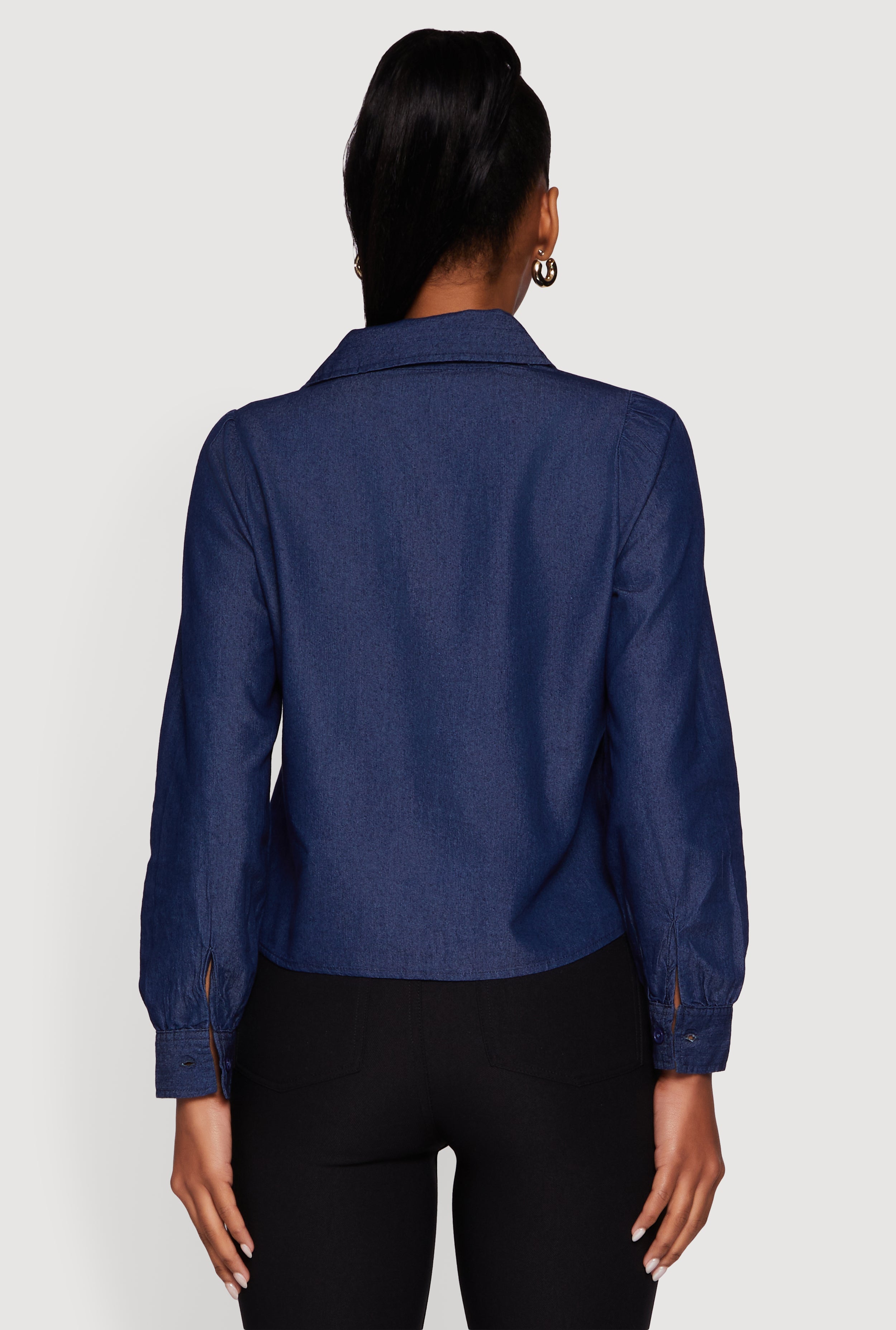 Denim Patch Pocket Long Sleeve Button Front Shirt