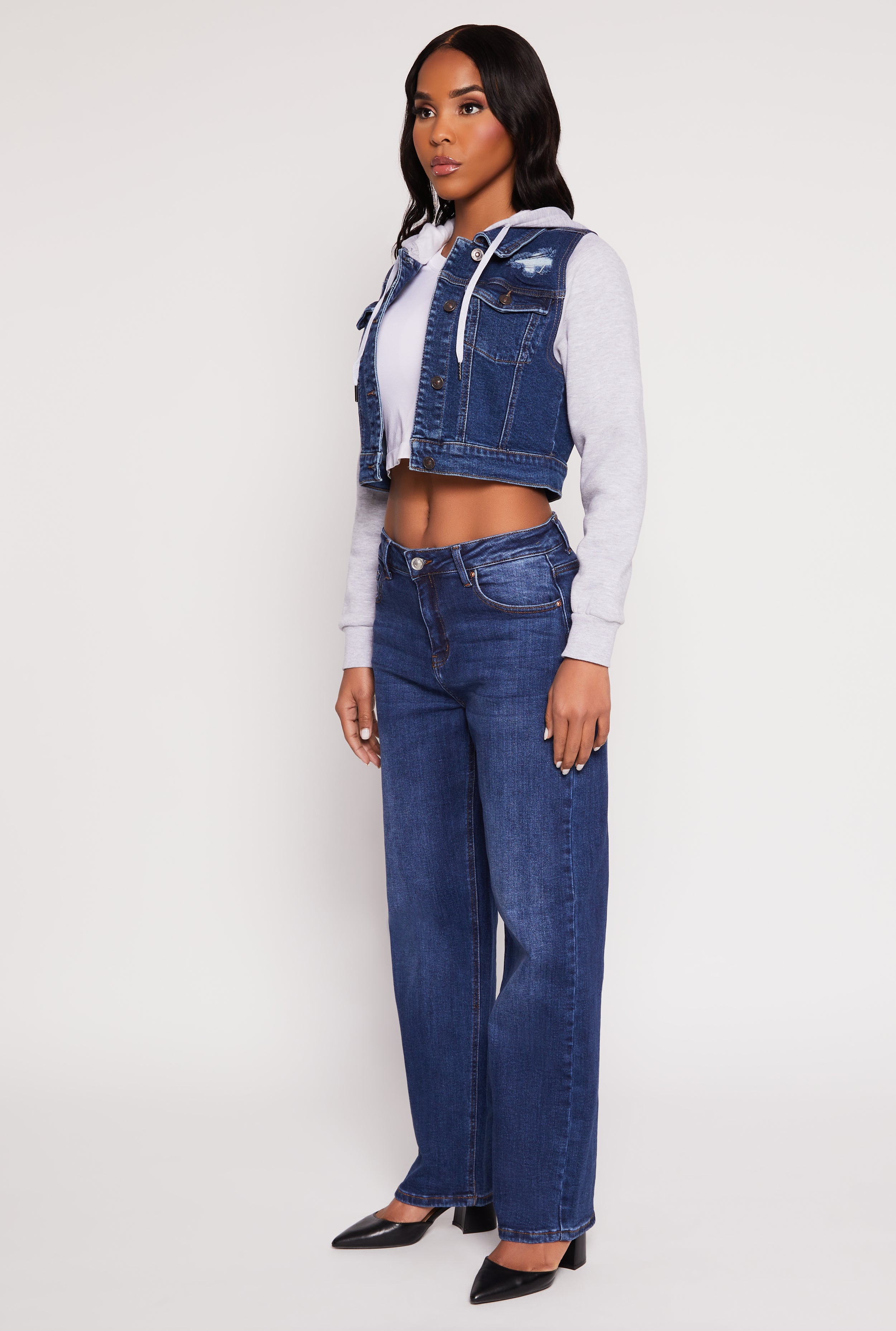 Upgrade your casual wardrobe with the WAX Distressed Hooded Jean Jacket, the perfect blend of edgy style and cozy comfort. Crafted from durable denim lined with soft fleece, this jacket is your go-to for effortless coolness. The cropped hem adds a trendy touch, while the distressed details give it that perfectly worn-in vibe. Whether you're layering it over your favorite tee or pairing it with your go-to jeans, this jacket keeps you looking stylish and feeling comfy all day long.