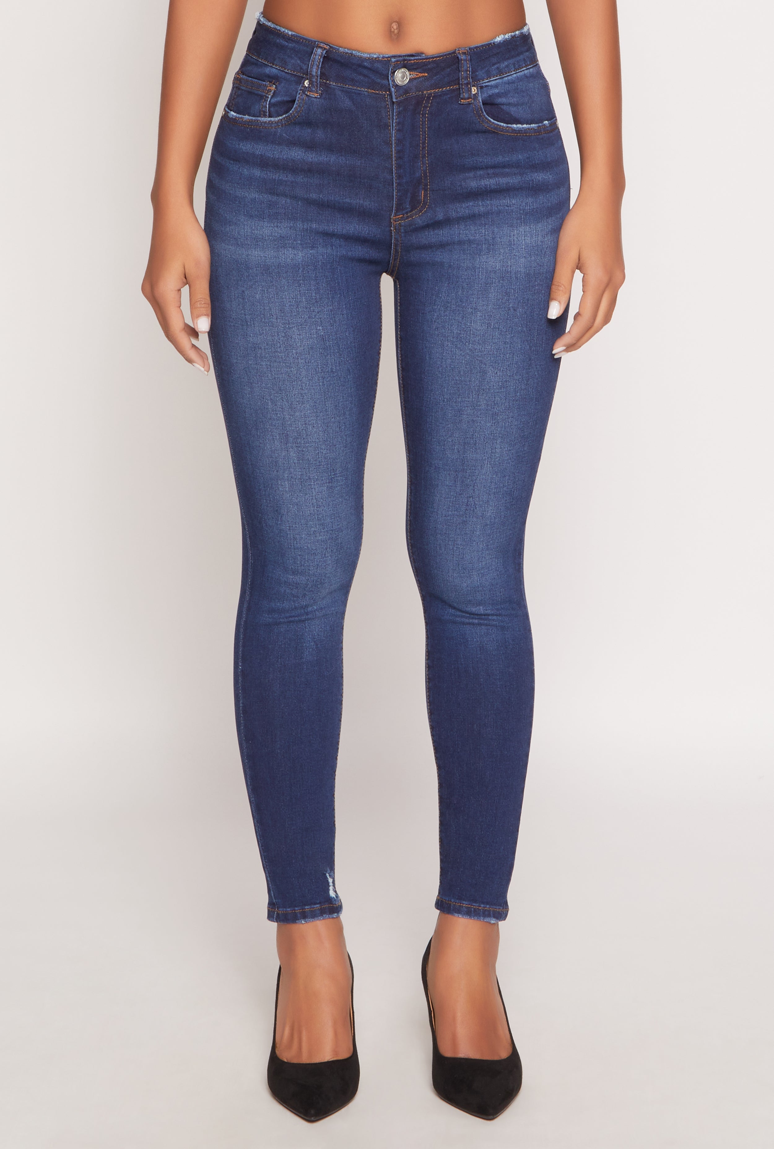 Upgrade your wardrobe with the WAX Frayed Detail Skinny Jeans, the perfect blend of edgy style and everyday comfort. These high-waisted denim beauties feature distressed and frayed accents that add just the right amount of attitude. Designed for a sleek skinny fit, they hug your curves and keep you looking effortlessly cool. Whether you're heading out with friends or just want to feel confident in your own skin, these jeans are your new go-to. Get ready to turn heads and feel fabulous all day long.