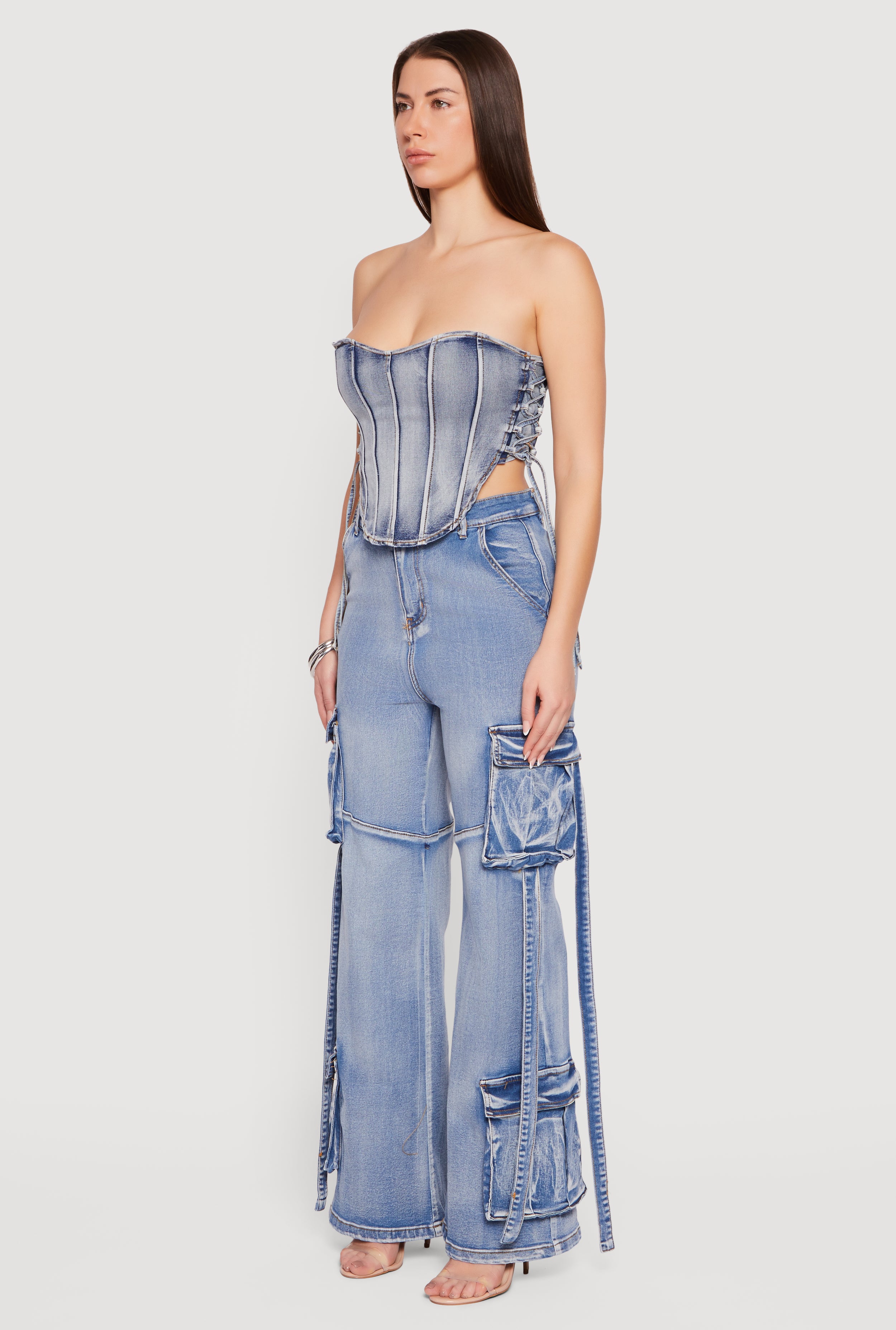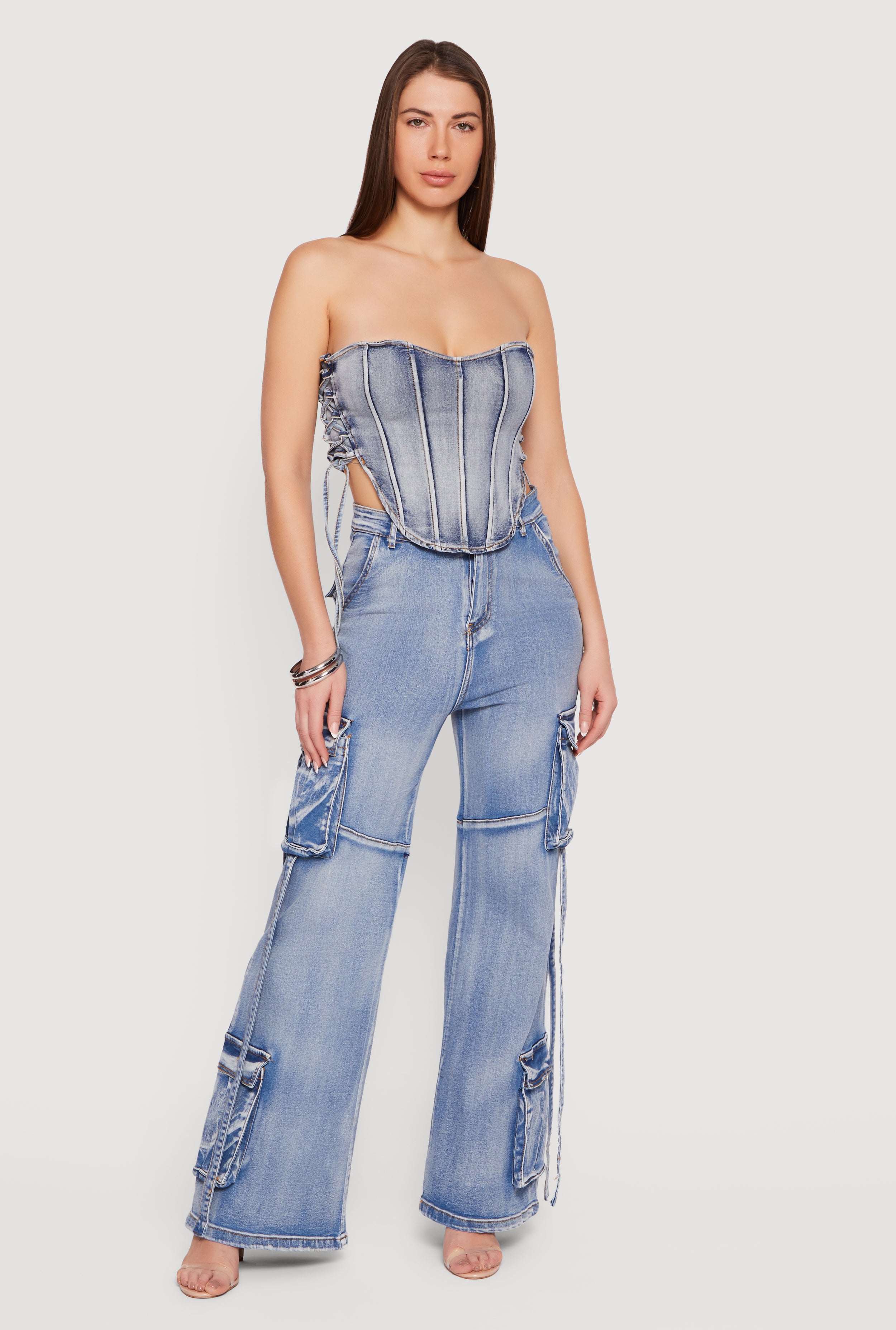 Lace up your style game with this Denim Corset Top that’s made for turning heads. Featuring a strapless neckline and classic fit, this acid wash beauty combines streetwear edge with casual vibes. The boning adds structure while the side string closure lets you customize your perfect fit. Pair it with your fave high-waisted jeans or a flirty skirt for an effortlessly cool look that’s totally on trend.