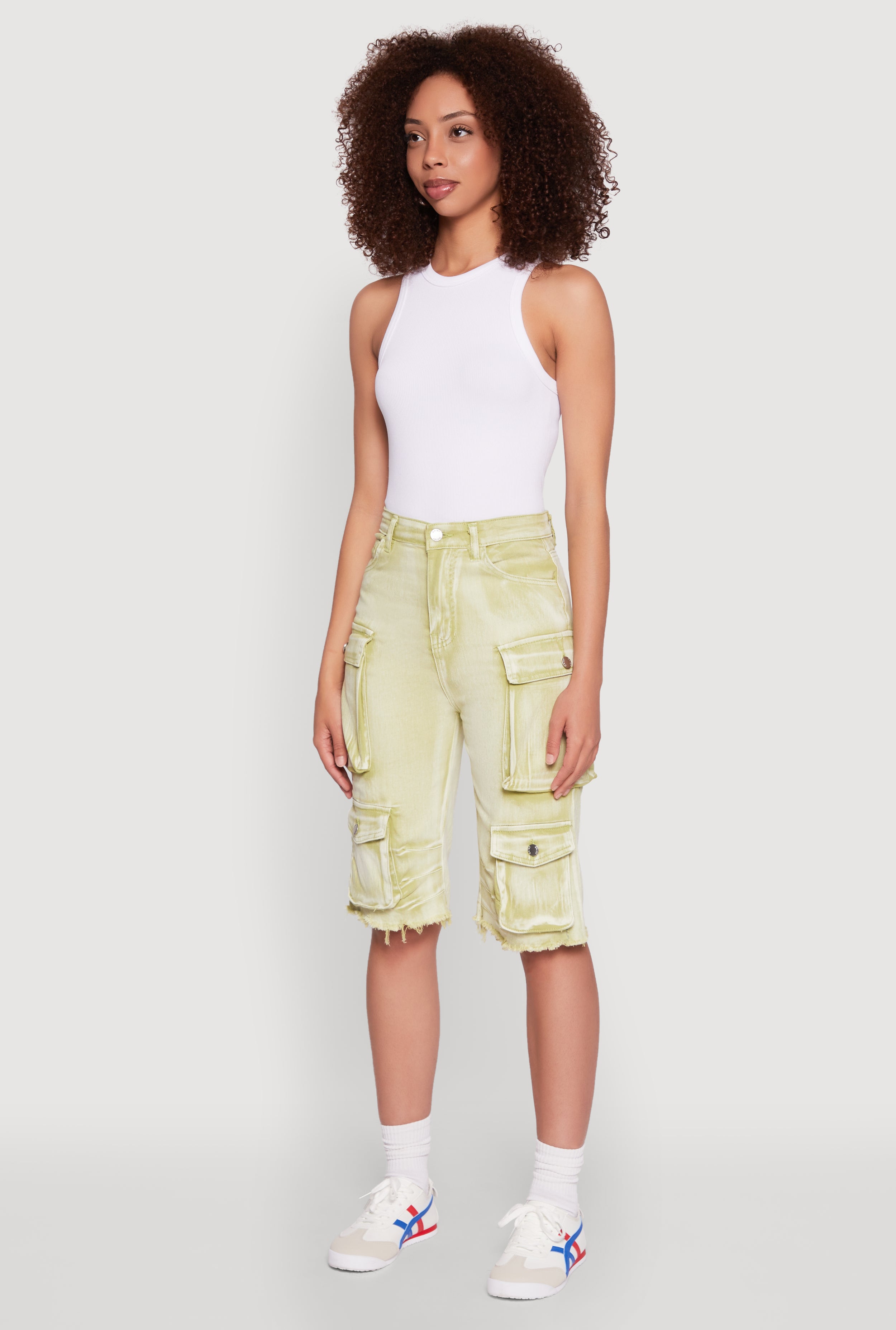Step up your casual game with the Daisy Acid Wash Raw Hem Utility Bermuda Shorts. These shorts are perfect for adding a touch of edgy style to your everyday look. With their distressed details, frayed raw hems, and cargo pockets, they effortlessly blend comfort and cool. Whether you're hanging out with friends or running errands, these denim Bermuda shorts are your new go-to for laid-back, trendy vibes that won’t break the bank.