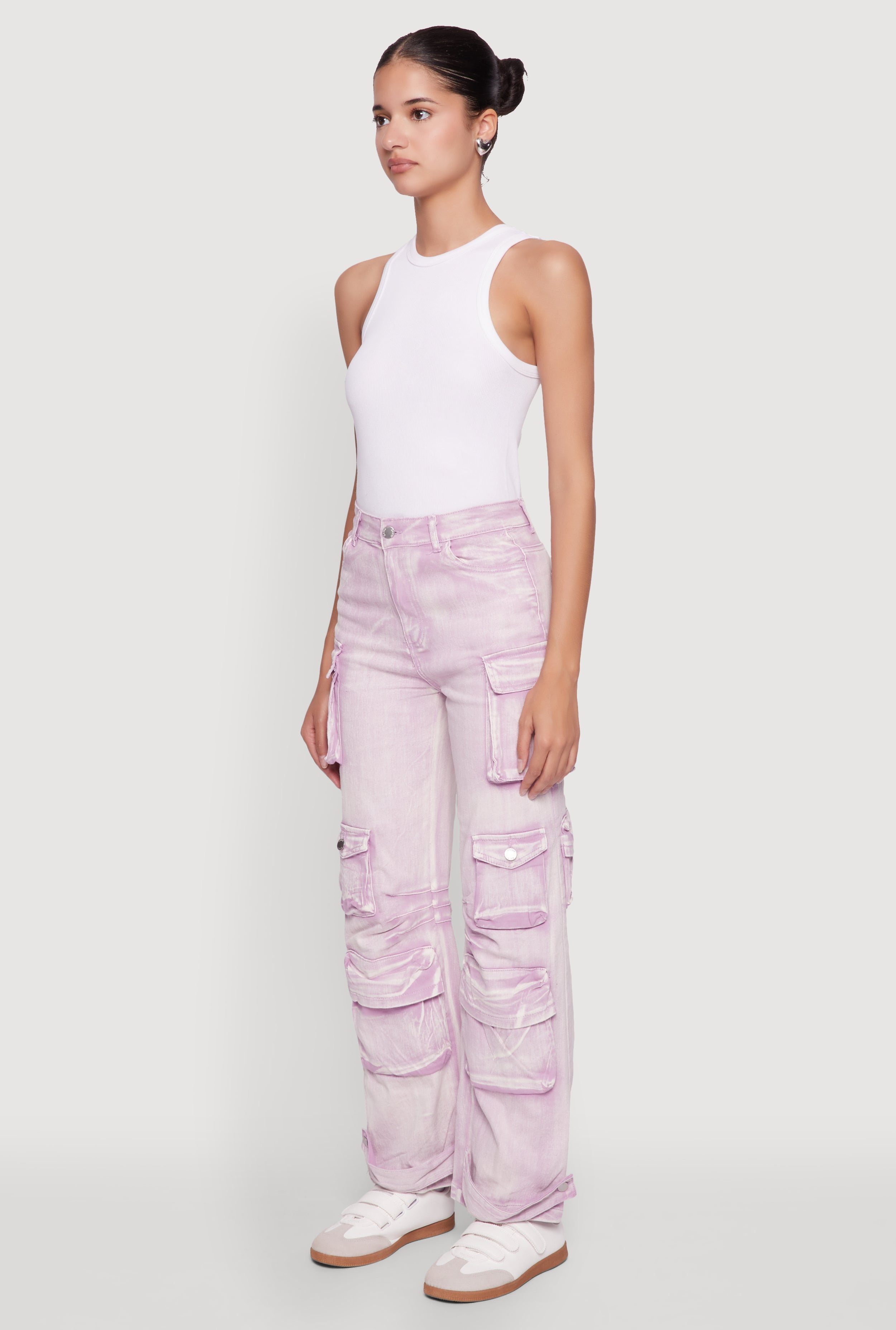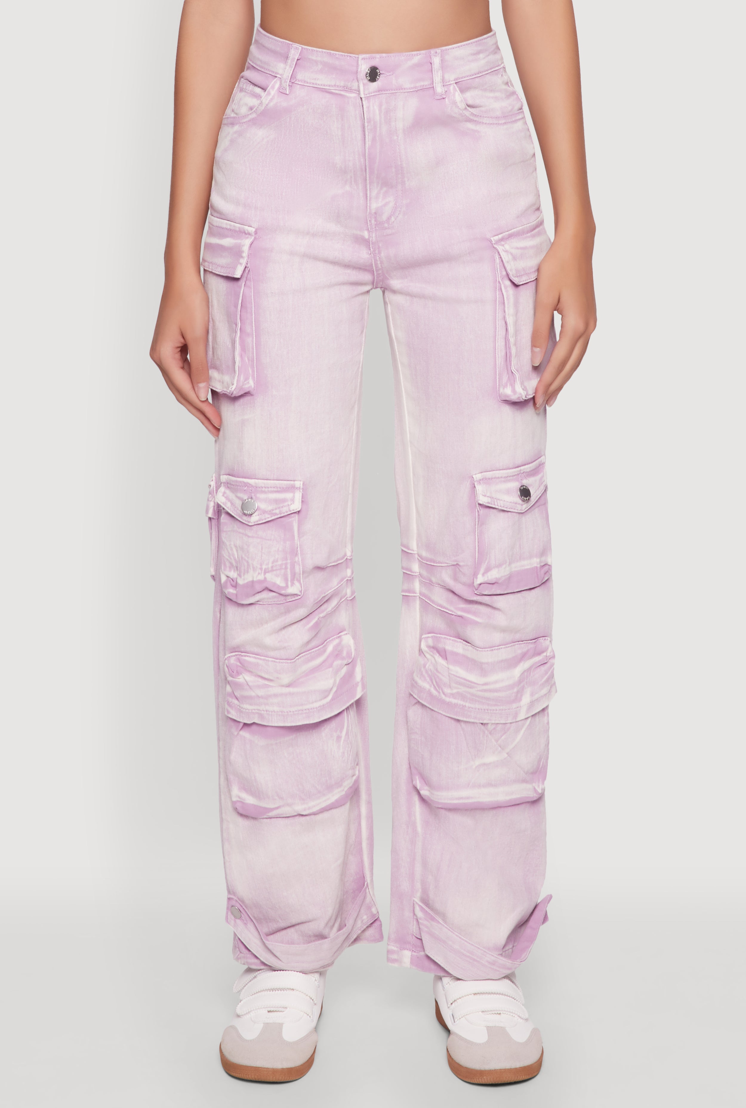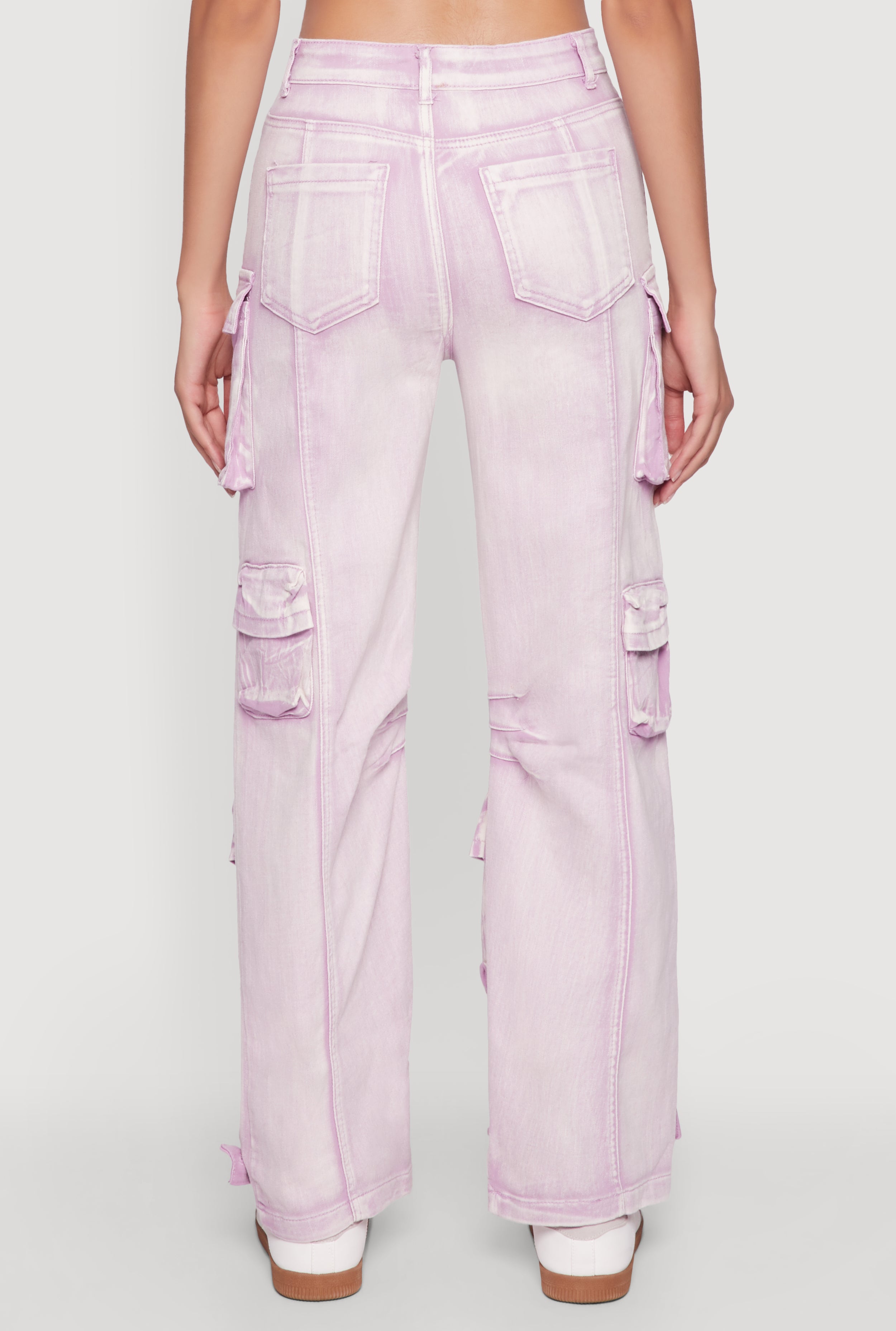 Daisy Acid Wash High Waisted Wide Leg Cargo Jeans