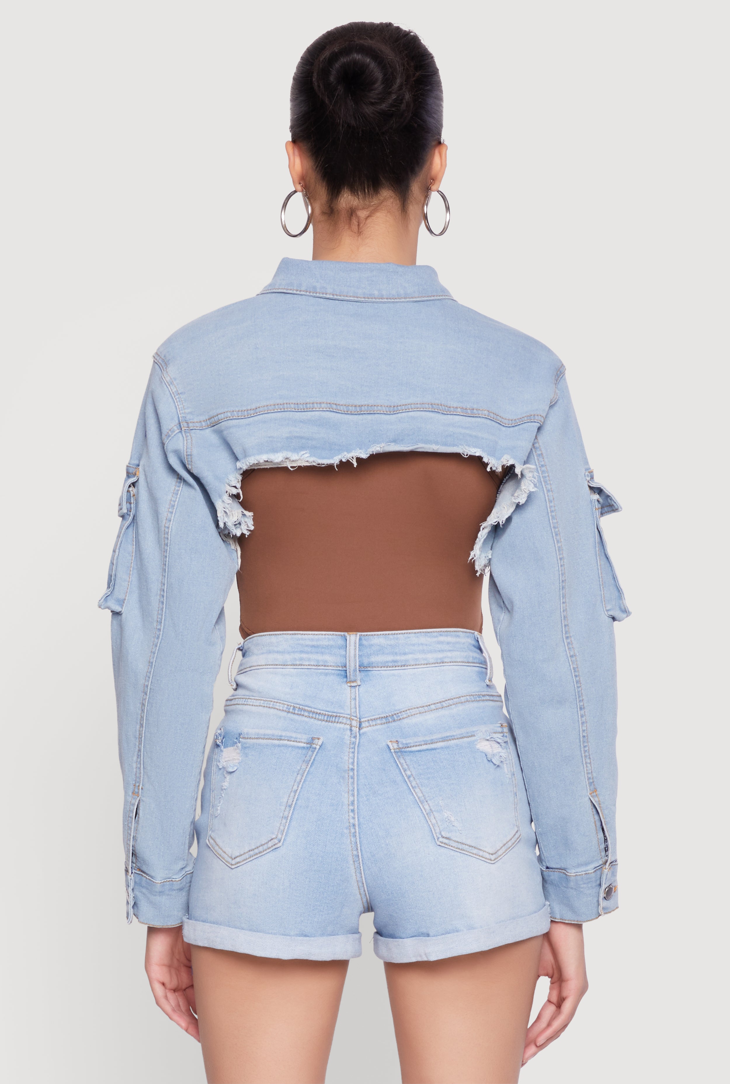 Upgrade your casual wardrobe with the Daisy Cargo Pocket Sleeve Bolero Jean Jacket. Perfect for adding a touch of cool to any outfit, this cropped denim jacket combines effortless style with practical details. Featuring long sleeves, a classic collar, and trendy cargo pockets, it's your new go-to for days when you want to look cute and stay comfortable. The distressed and frayed accents give it a laid-back vibe, making it ideal for weekends, outings, or just elevating your everyday look. Whether layered over a dress or paired with jeans, this jacket is all about making a statement without trying too hard.