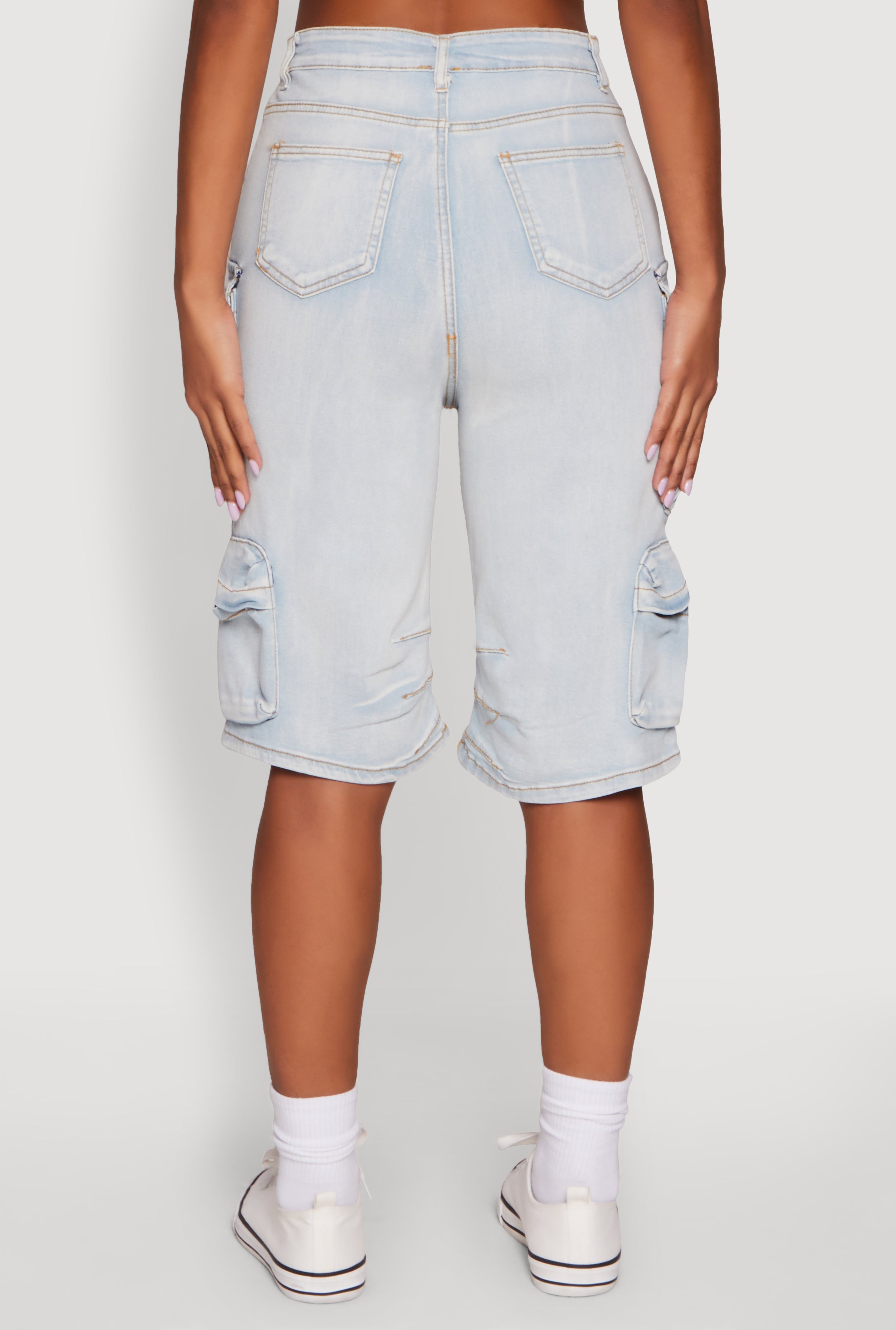 Daisy High Waisted Acid Wash Denim Cargo Shorts