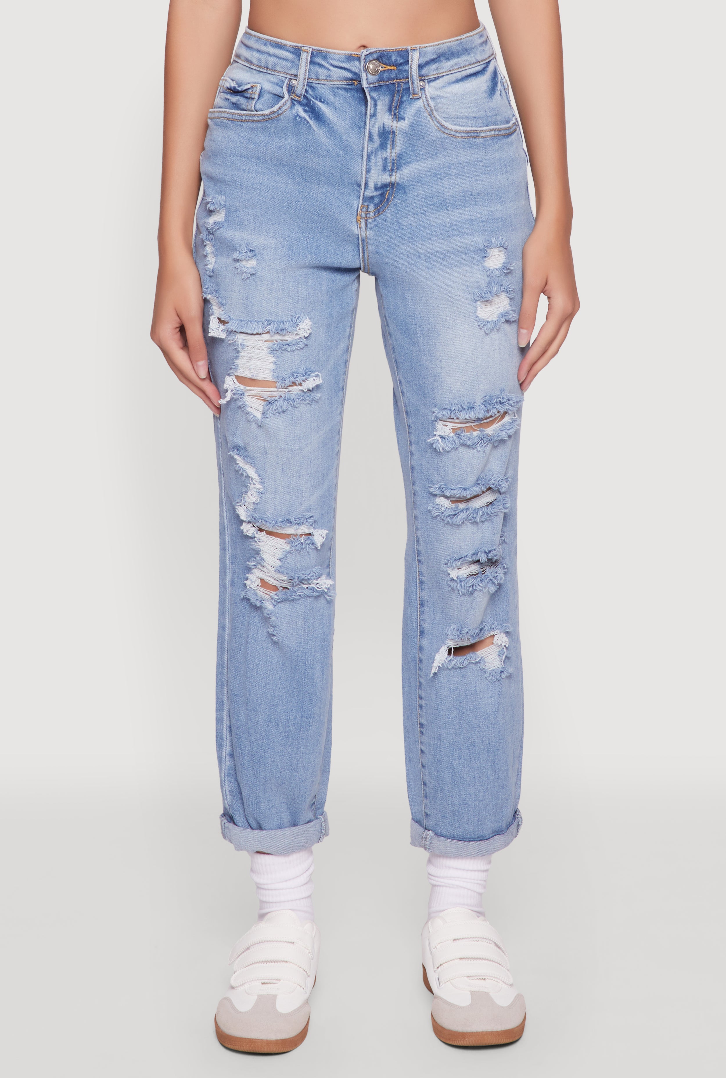 Step up your casual game with the WAX Distressed Boyfriend Jeans. Designed for comfort and style, these jeans give you that effortlessly cool vibe with just the right amount of edge. Perfect for dressing up or down, they are a must-have for your wardrobe. Whether you're hanging out with friends or running errands, these jeans will keep you looking fresh and feeling comfy all day long.