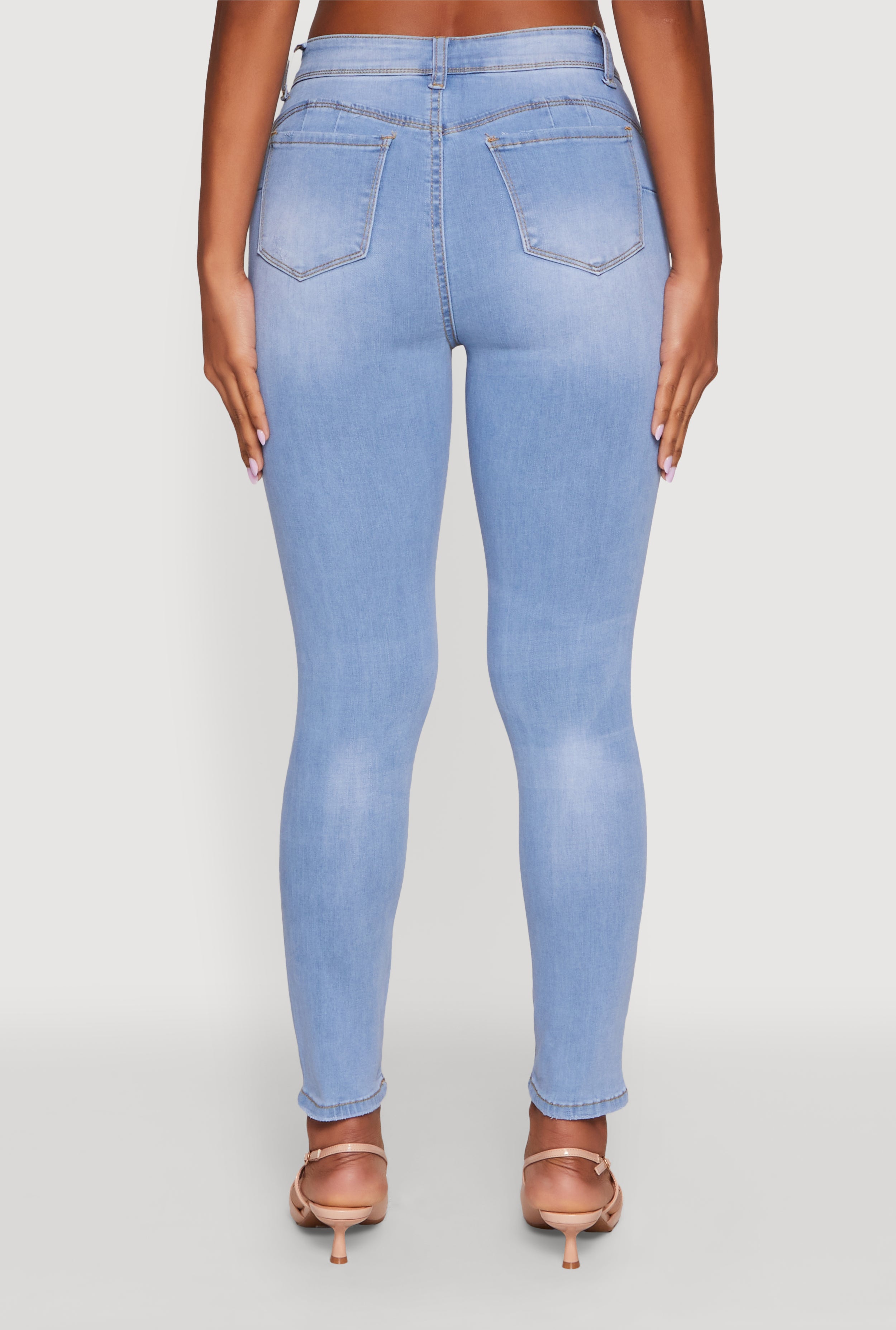 Get ready to elevate your casual look with the WAX Mid Rise Distressed Jeans. Perfectly blending edgy style with everyday comfort, these jeans are a must-have for anyone who wants to stand out effortlessly. With their trendy distressed details and cropped hem, you'll be turning heads wherever you go. Whether you're out with friends or just running errands, these skinny leg denim jeans are your new go-to.
