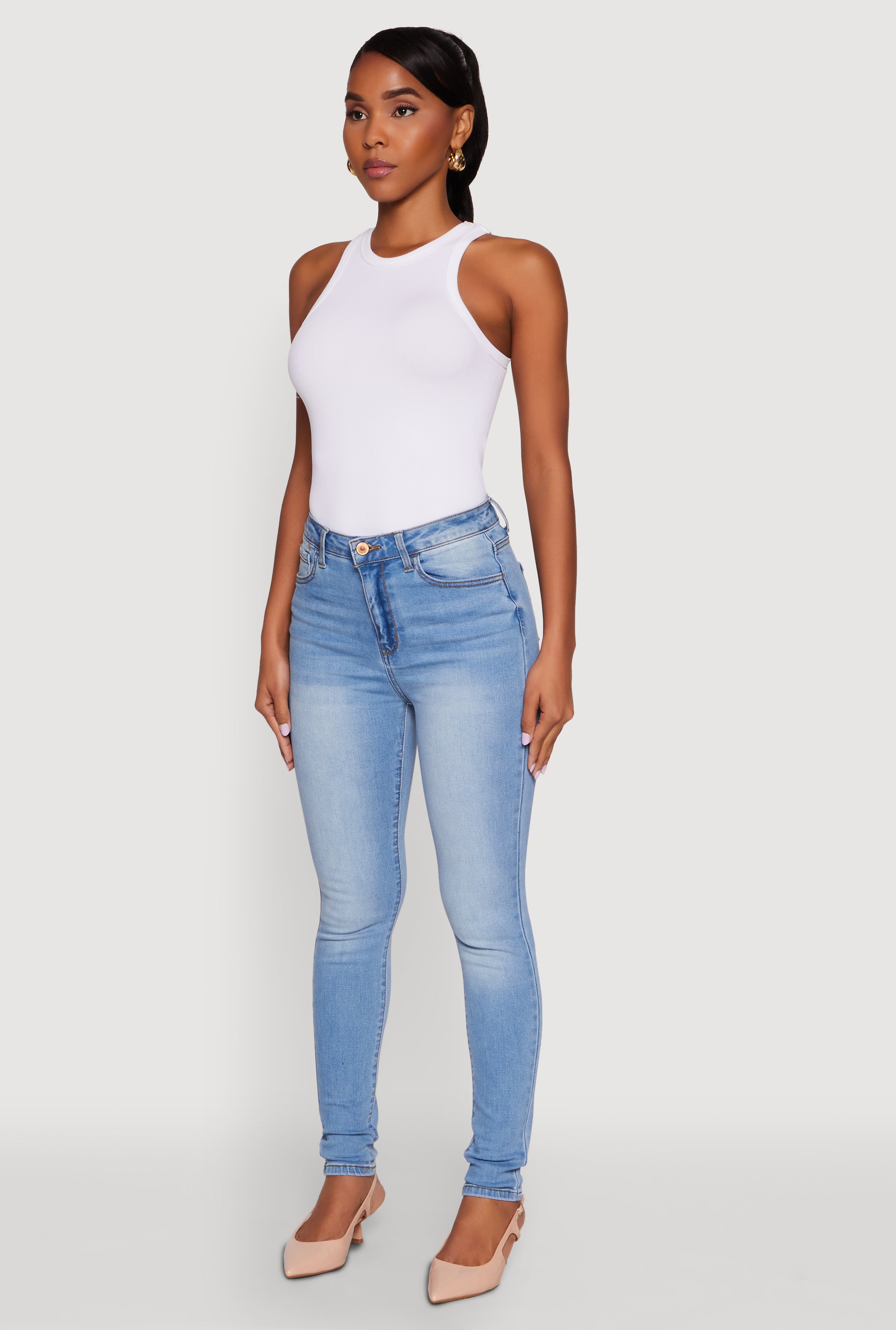 • Classic skinny-leg silhouette for a flattering fit
