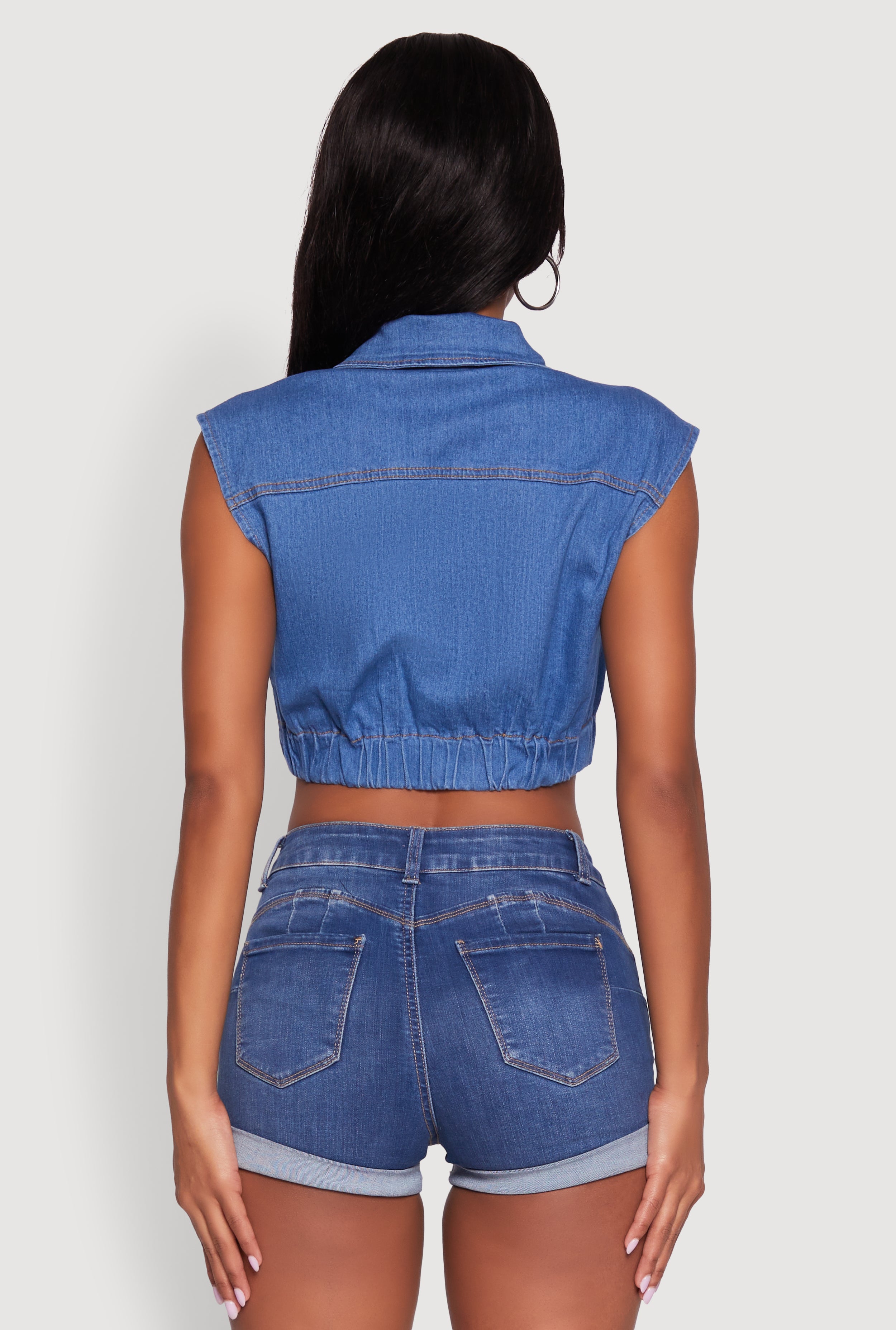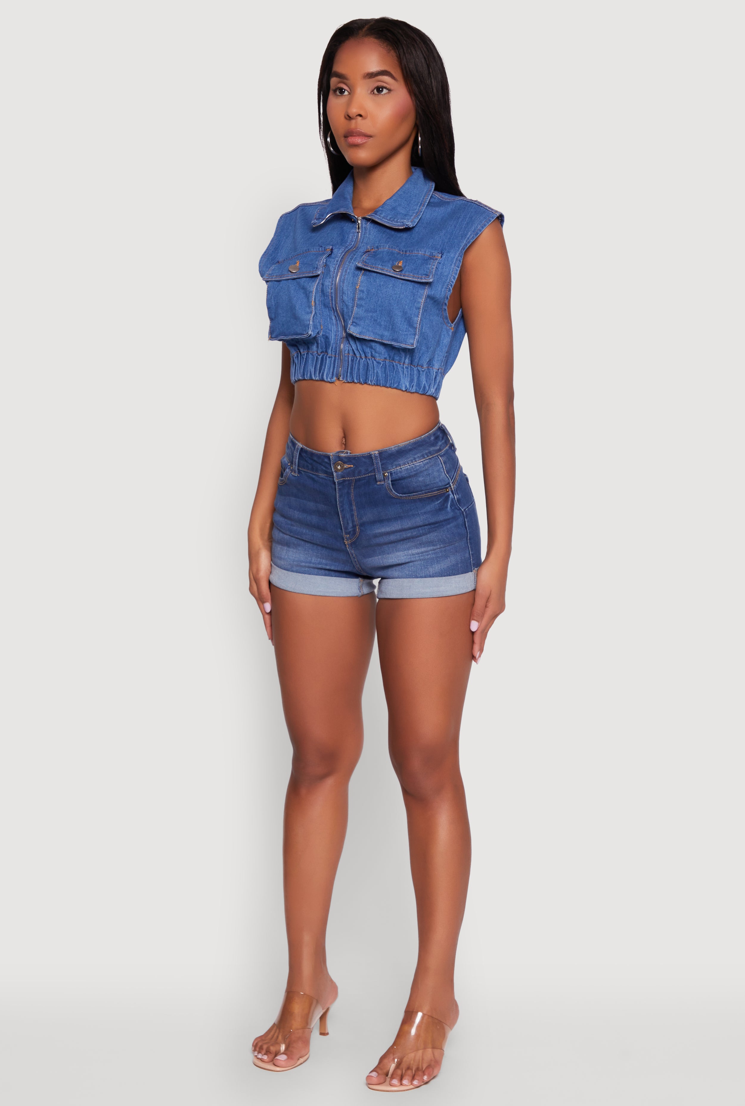 Meet your new go-to layer: the Daisy Sleeveless Cropped Denim Jacket. This classic-fit vest brings timeless cool with a fresh twist—sleeveless for easy layering and a cropped hem that pairs perfectly with high-waisted jeans or your favorite summer dress. The collared neckline and zipper closure add a touch of edge, while cargo pockets give you that effortless street style vibe. Whether you’re running errands or hanging out with friends, this jacket keeps your look on point without trying too hard.