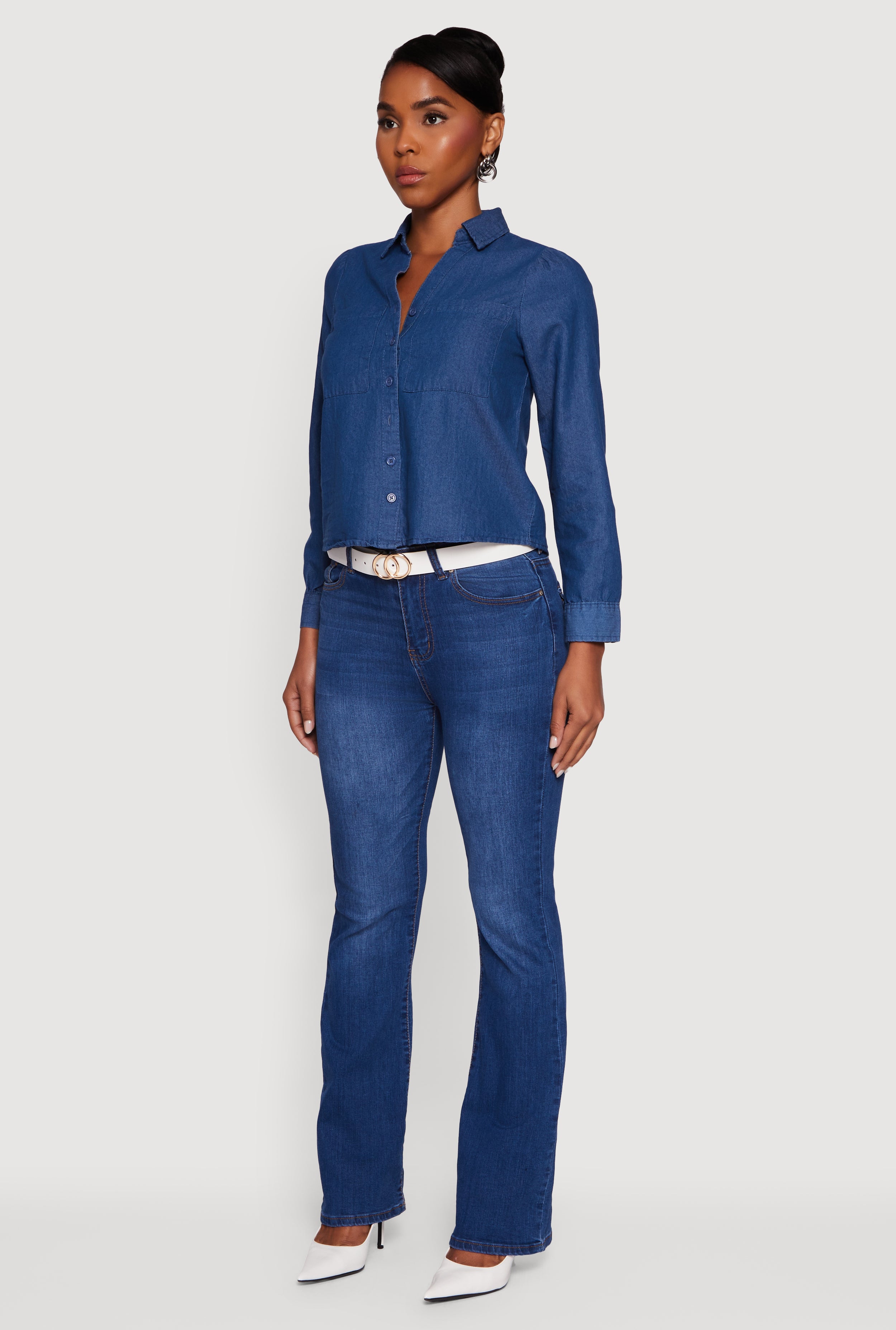 Meet your new go-to for effortless cool: the Denim Patch Pocket Long Sleeve Button Front Shirt. This classic fit, long sleeve denim shirt brings timeless vibes with a modern twist. Perfect for layering or rocking solo, its button front and patch pockets add just the right touch of laid-back style. Whether you're out with friends or just chilling, this shirt makes casual look seriously chic.