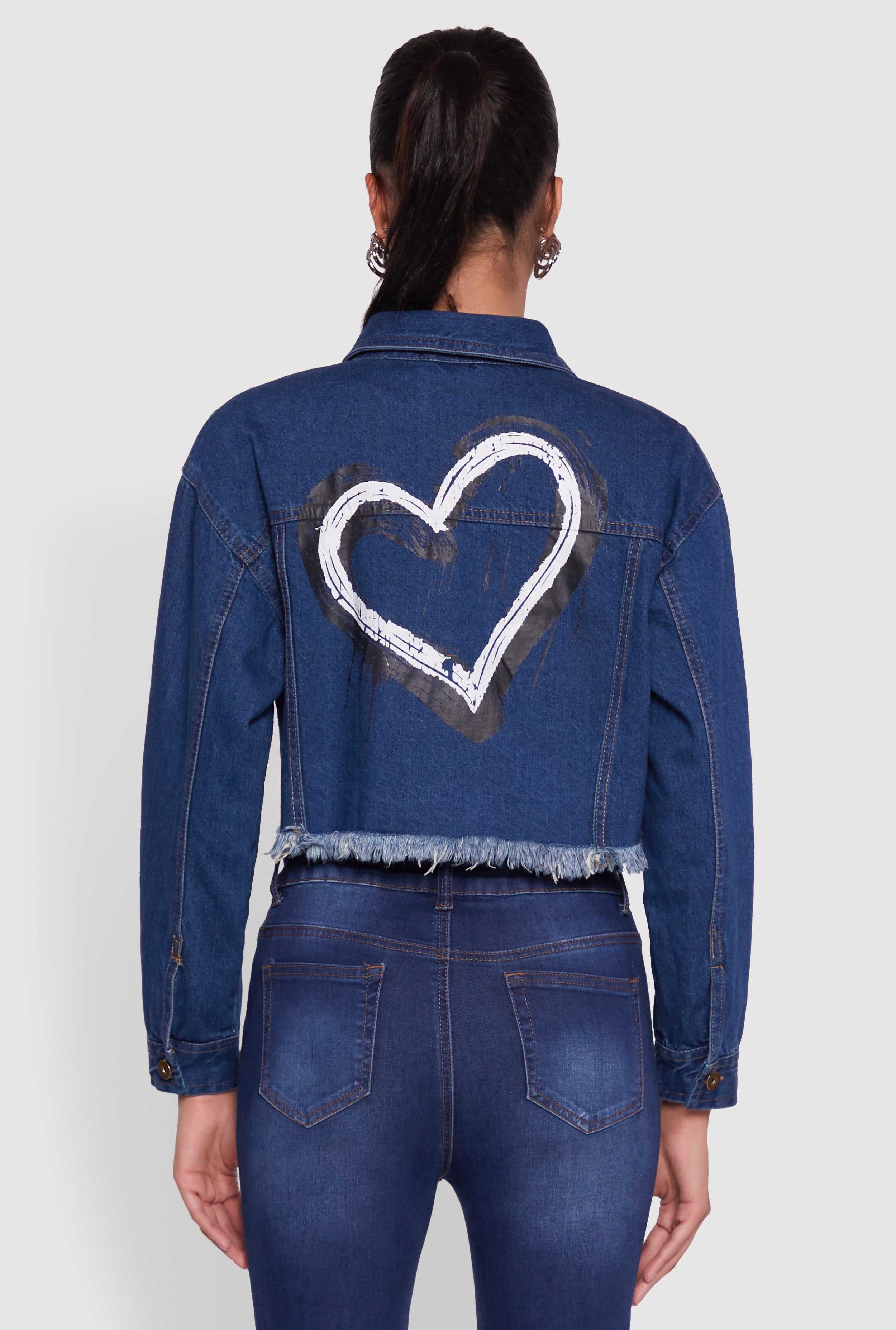 Make a statement without saying a word in the Heart Graffiti Graphic Frayed Jean Jacket. This cropped denim jacket brings all the cool vibes with its edgy heart and graffiti print, perfect for adding a pop of personality to any casual outfit. The classic button front and frayed edges give it that effortlessly worn-in look you will reach for again and again. Whether you are layering over your favorite tee or dressing up a simple dress, this jacket is your new go-to for instant style that feels as good as it looks.