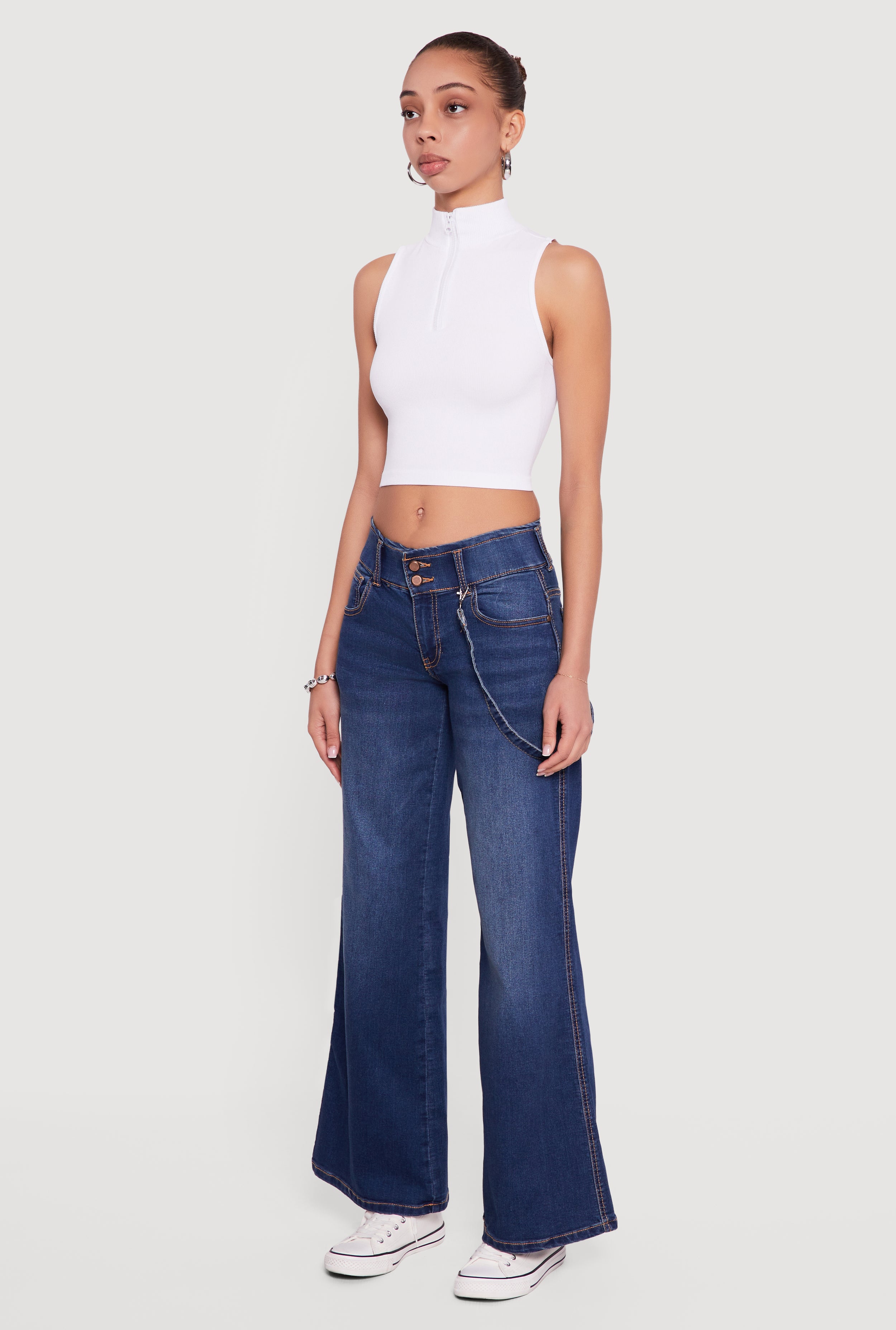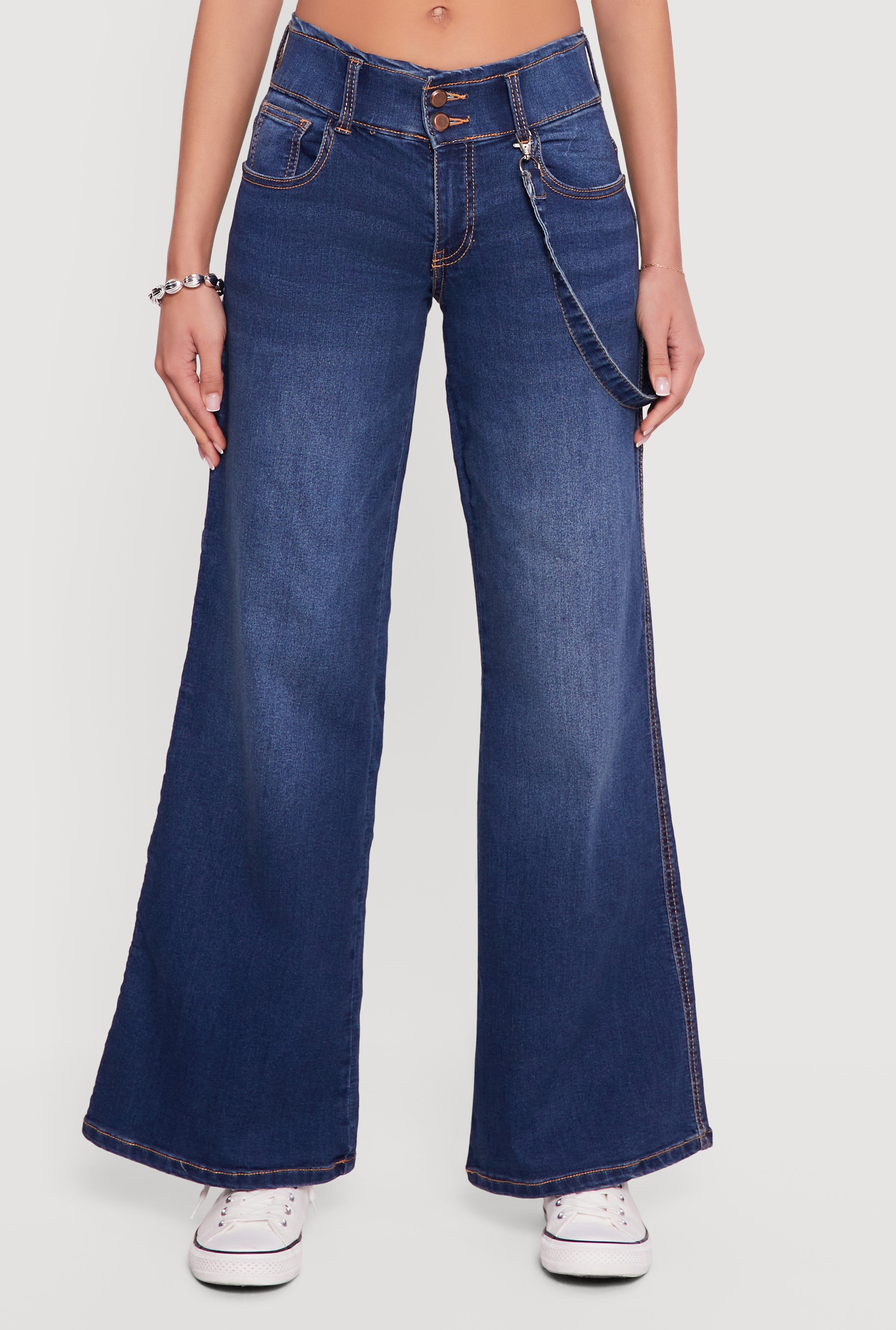Step out in style with these Strap Detail Flare Leg Jeans designed to elevate your casual wardrobe. Crafted from classic denim, they feature a trendy flare leg silhouette that adds a cool, retro vibe to any outfit. The mid-rise fit offers comfort and a flattering shape, while the unique strap detail brings an edgy twist that sets these jeans apart. Plus, a handy cell phone pocket keeps your essentials close without sacrificing style.