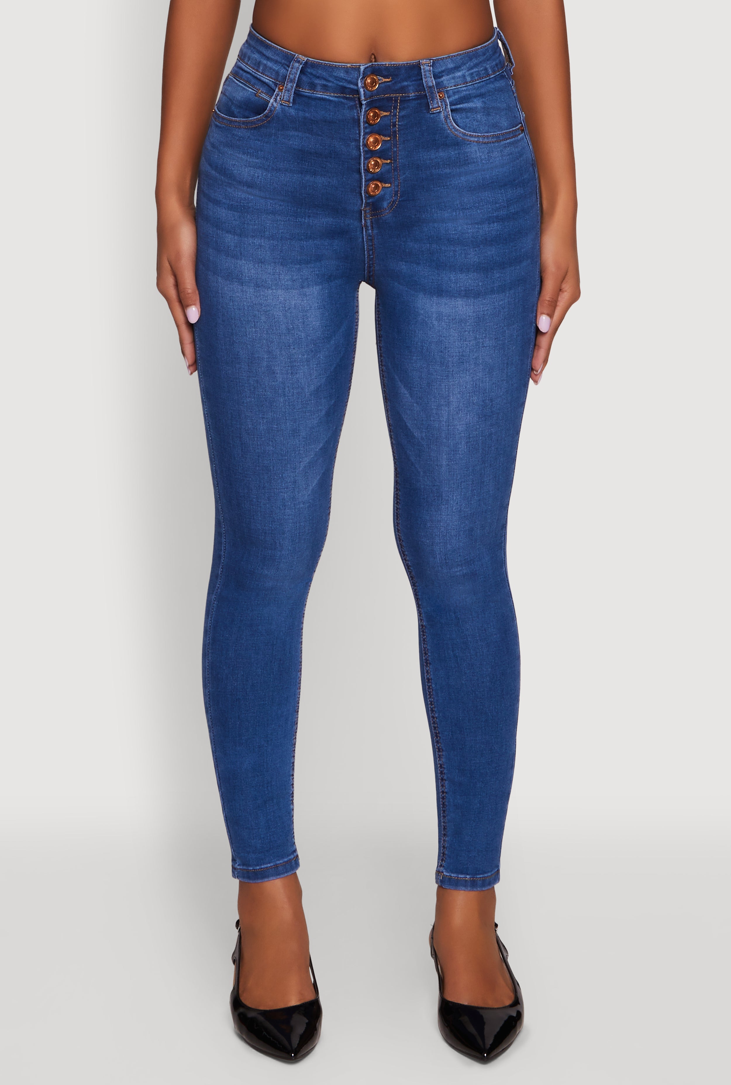 Step up your style game with the WAX Button Fly Skinny Jeans, designed to give you that perfect mix of comfort and edgy flair. Made from durable denim, these high-waisted, skinny leg jeans are your new go-to for everyday wear or a night out. The cropped hem adds a trendy touch, making them easy to pair with sneakers or boots. Elevate your wardrobe effortlessly and feel confident in every step you take.