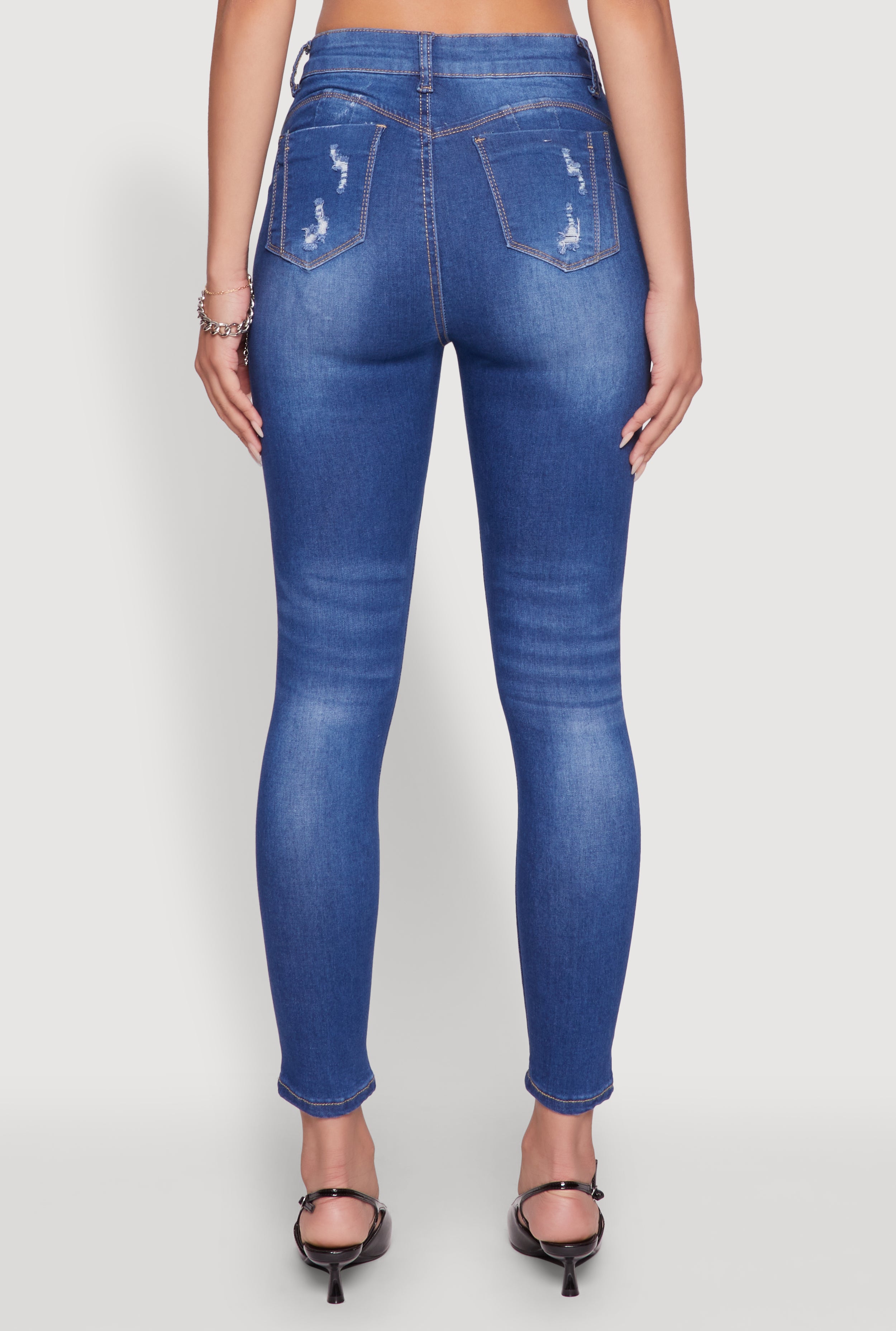 Get ready to turn heads with the WAX Distressed Frayed Skinny Jeans. These jeans are the perfect blend of edgy and chic, featuring a trendy distressed look with frayed details that scream cool. Designed for comfort and style, they hug your curves with a skinny fit that moves with you. Whether you're heading out with friends or just want to elevate your everyday style, these jeans are your new go-to. Plus, the cropped hem adds a fun, flirty touch that’s perfect for showing off your favorite shoes.